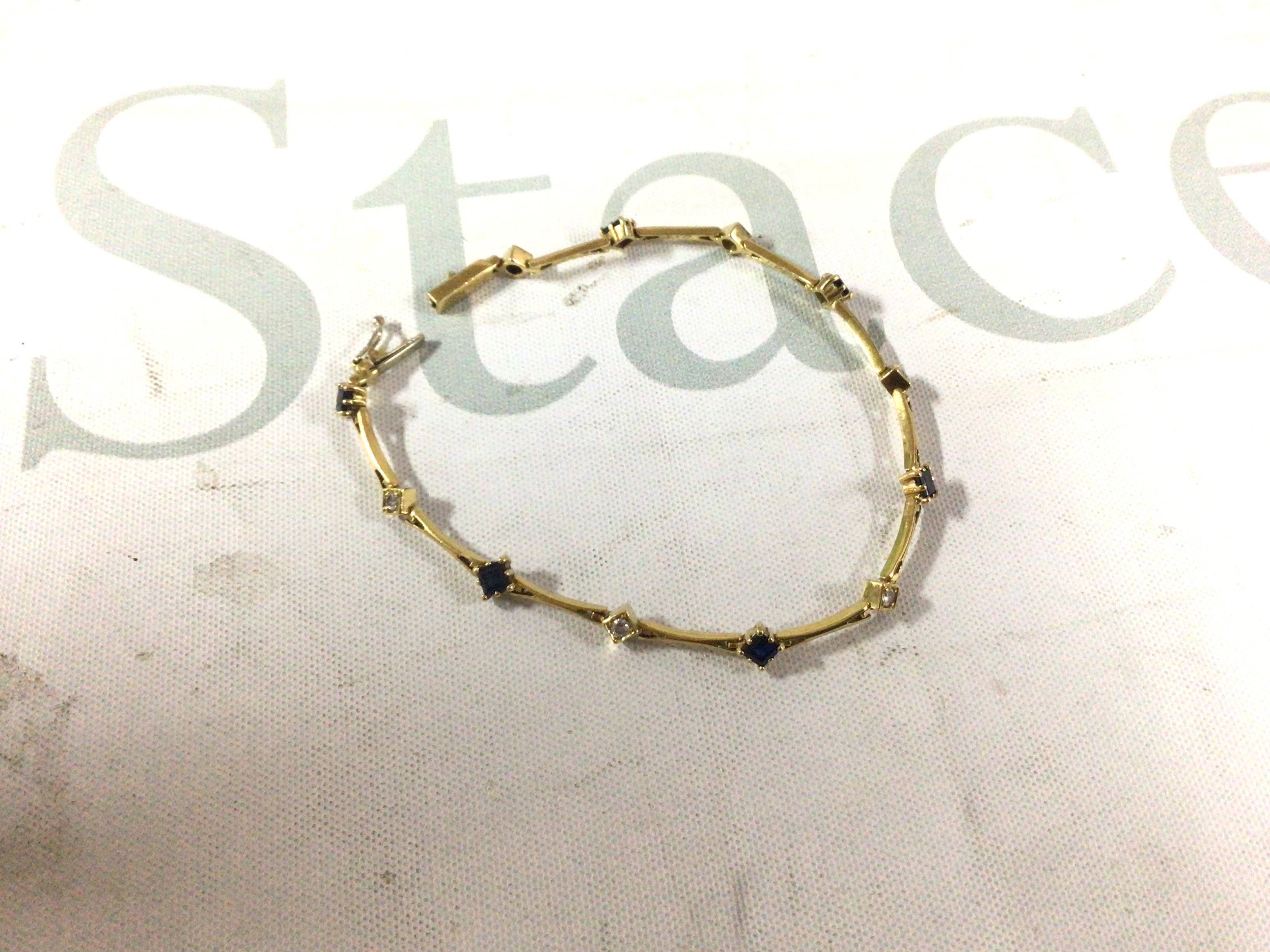 A 750 stamped diamond and sapphire bracelet. Approx weight 7.5 grams.