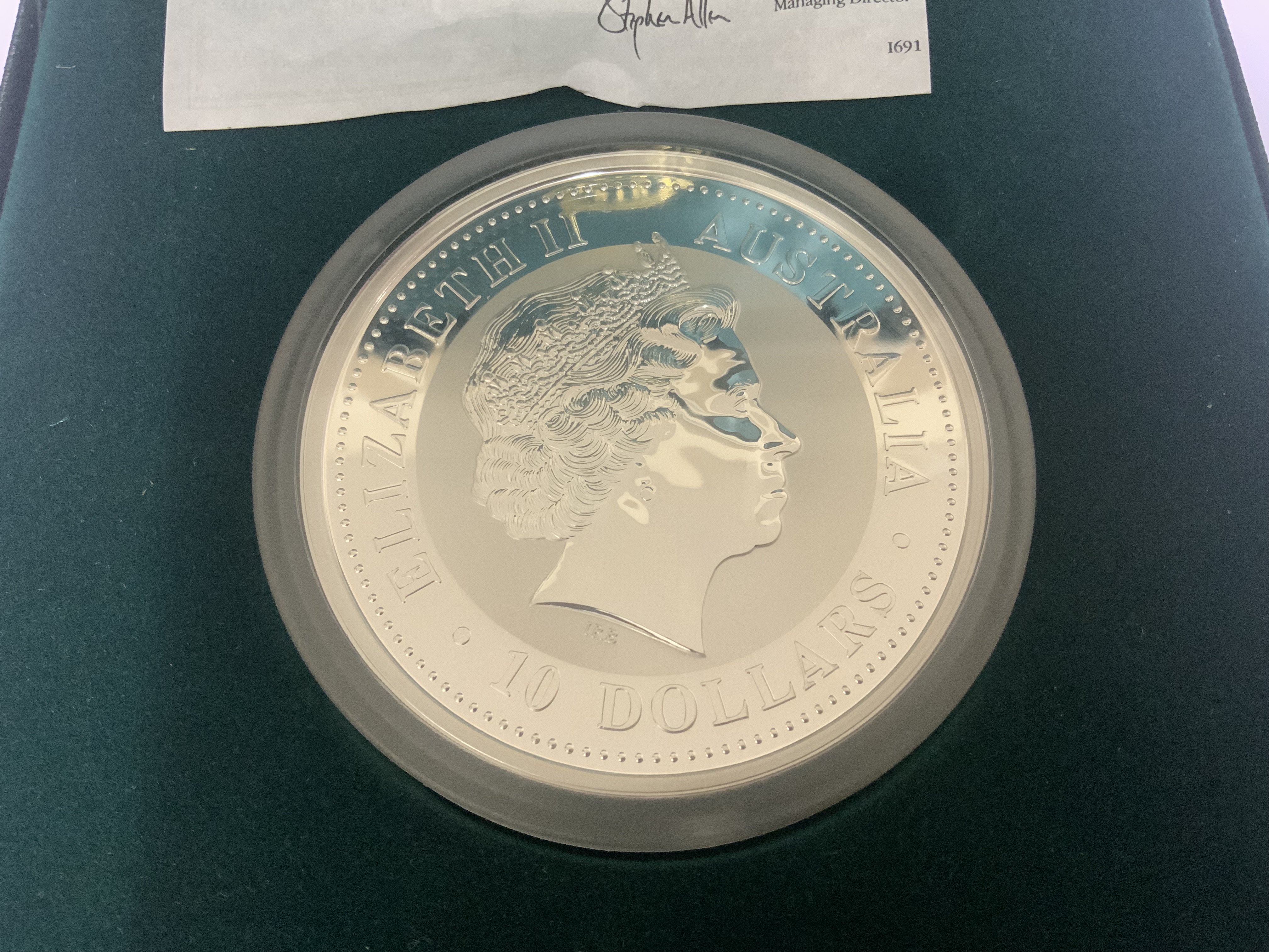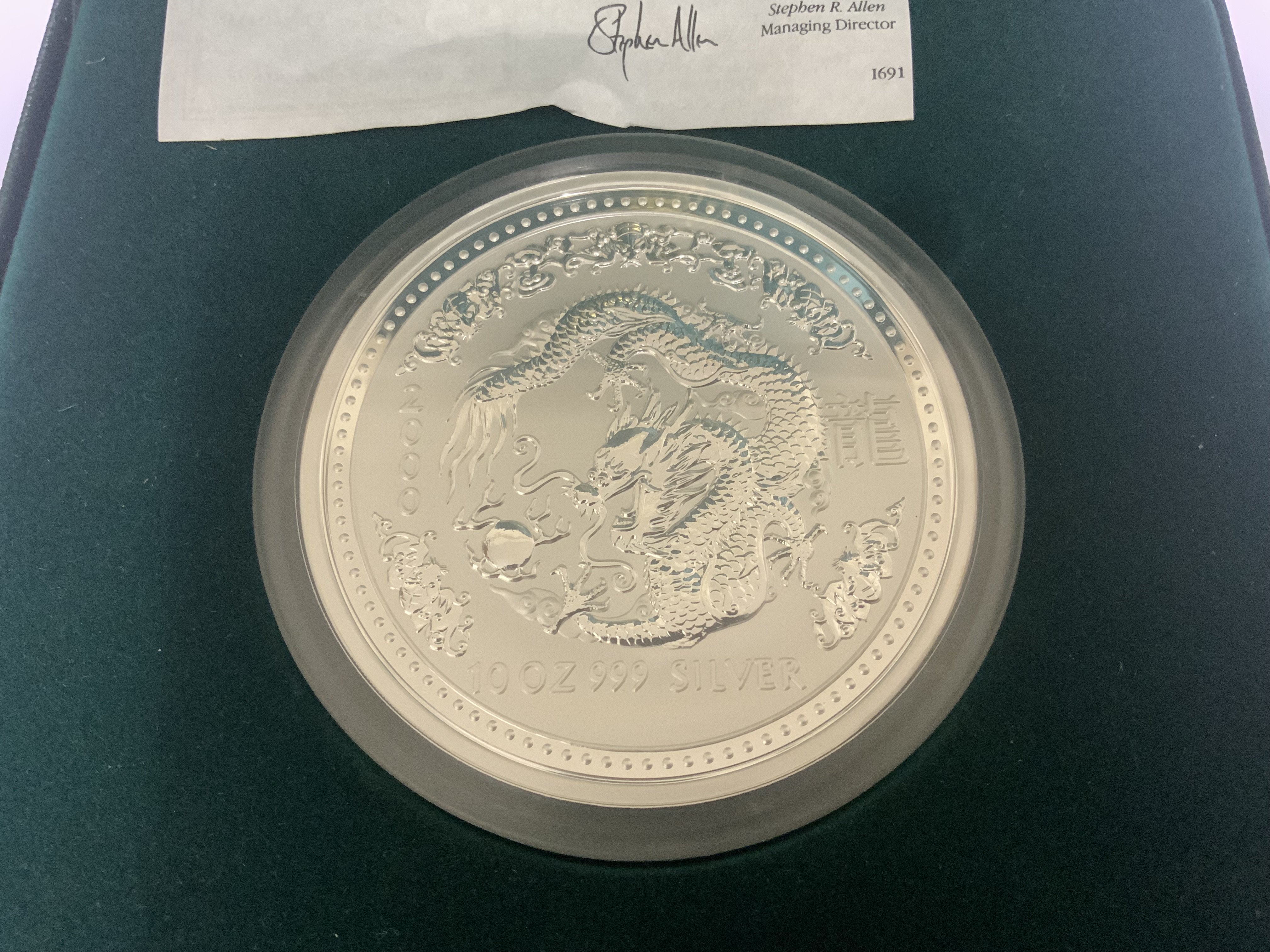 Perth Mint Australian 2000 Year of the Dragon 10 ounce fine silver coin. ($10)