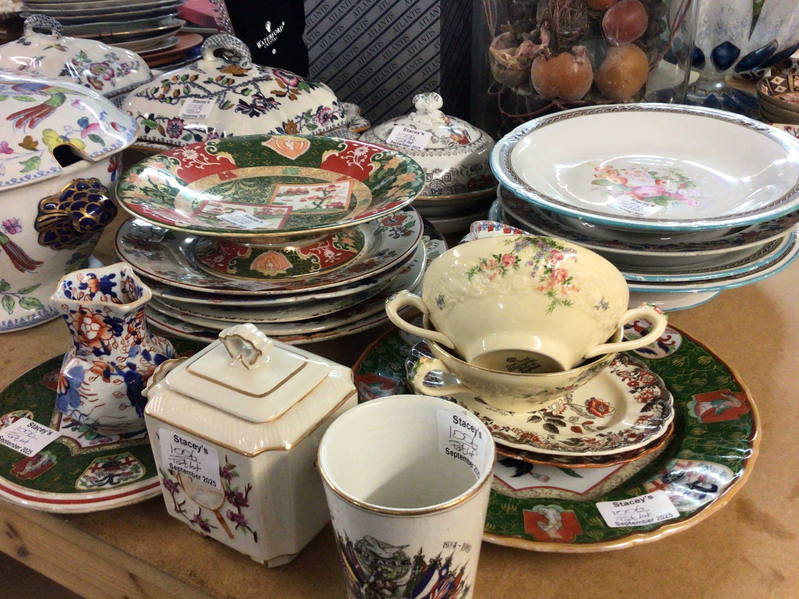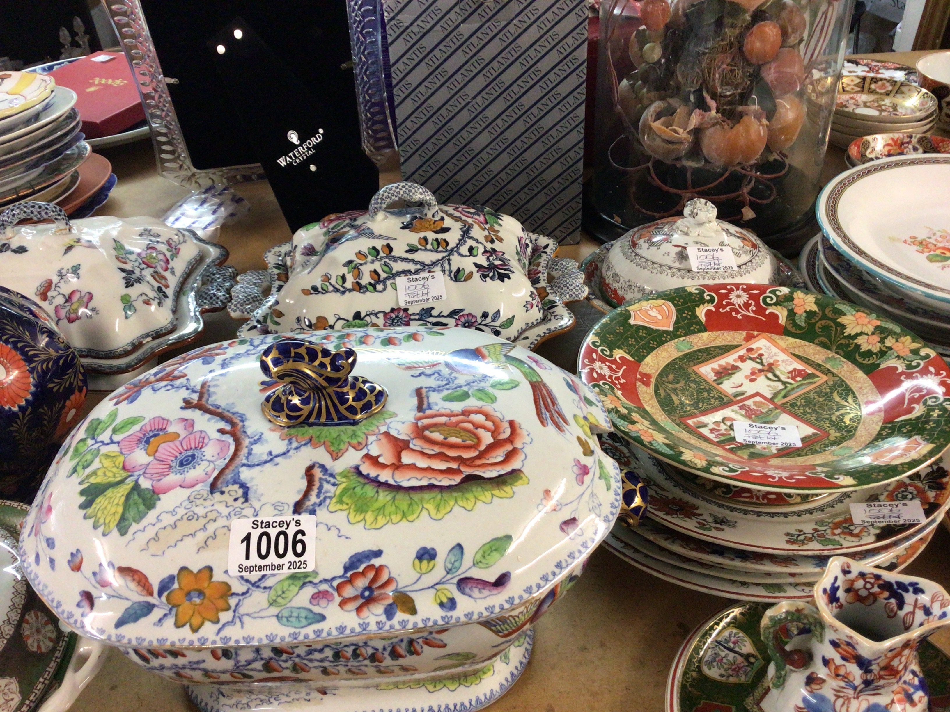 A Collection of Victorian and later Ironstone china including a large vase and cover with sudo Chinese marks large tureens. Comports and other dishes. No Reserve.