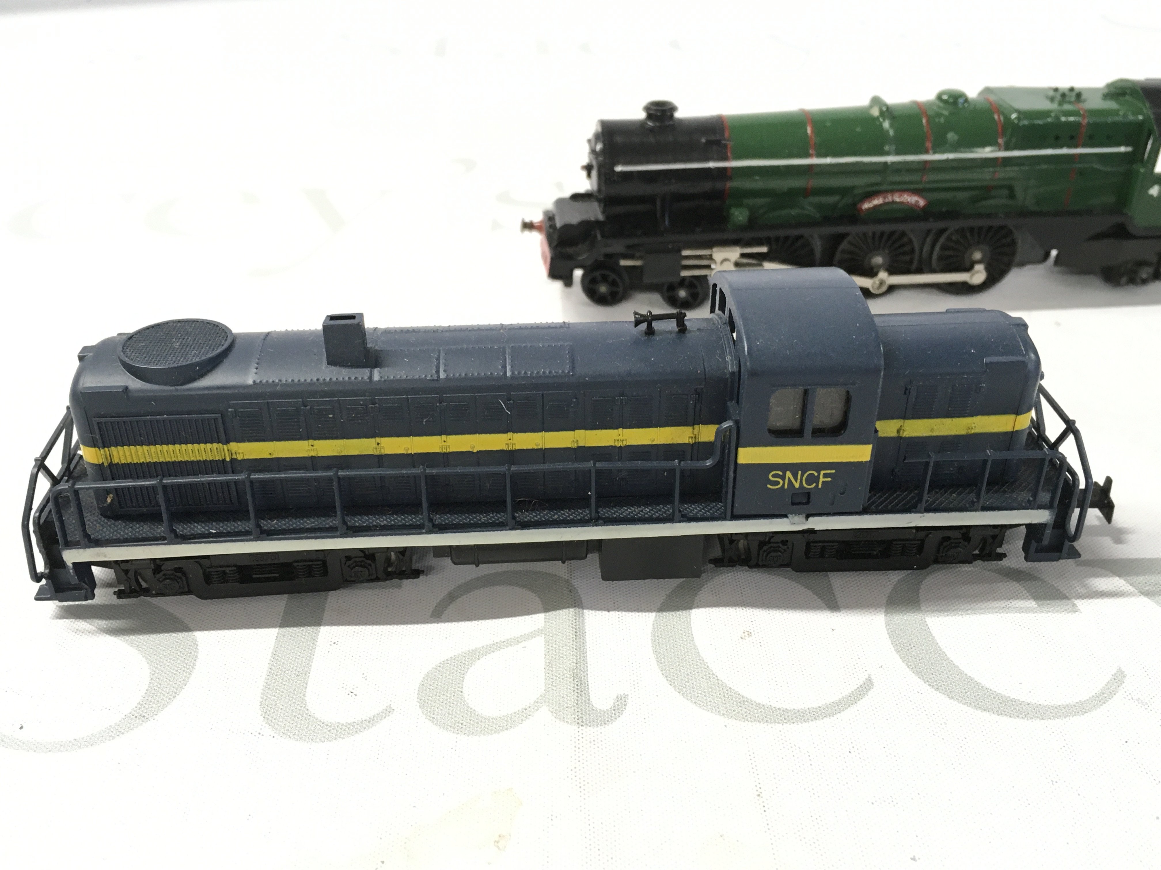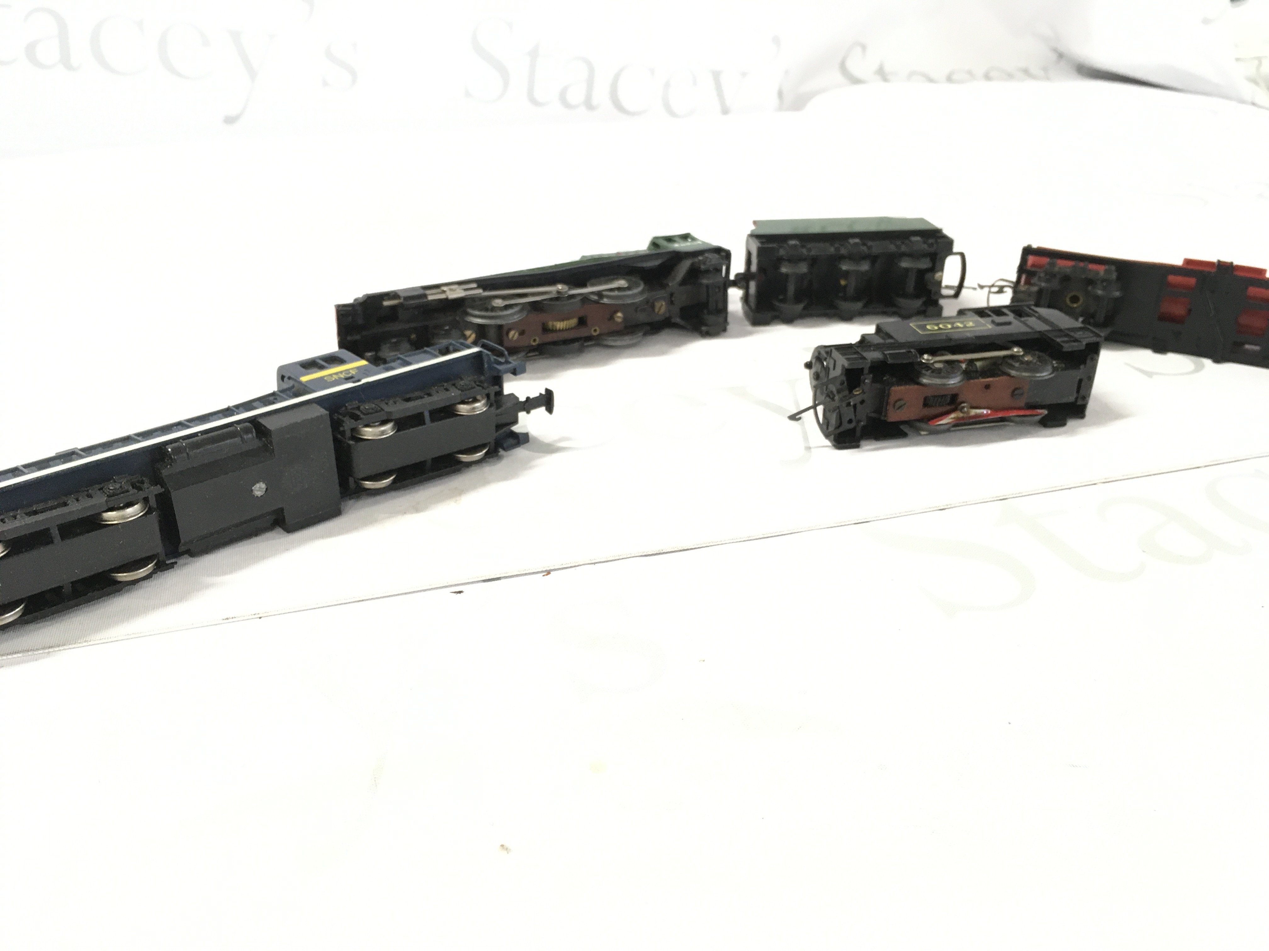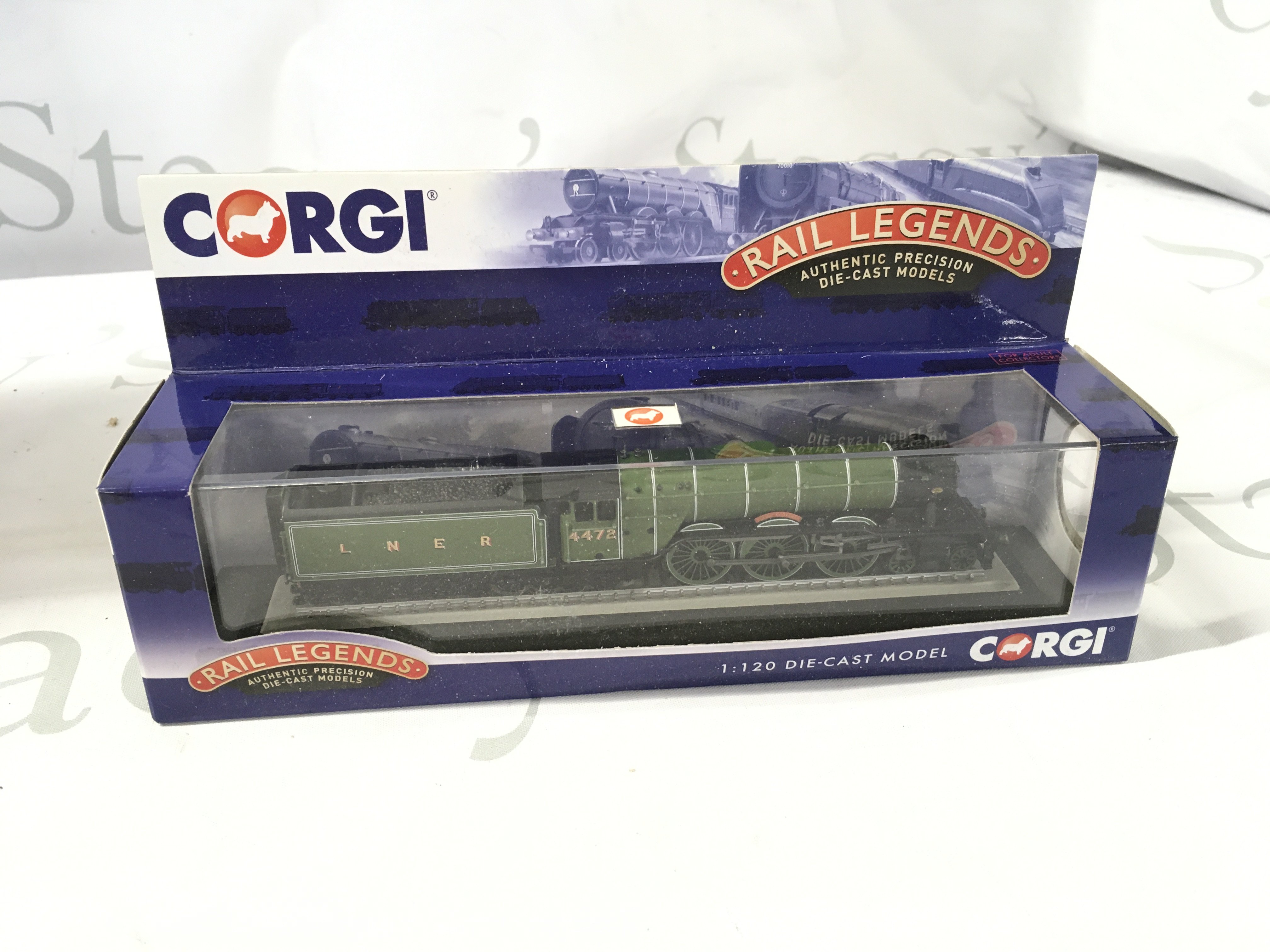 A small collection of 3 model locomotives a tender and a petrol tanker all 00 gauge. Plus a Corgi diecast model locomotive.No reserve