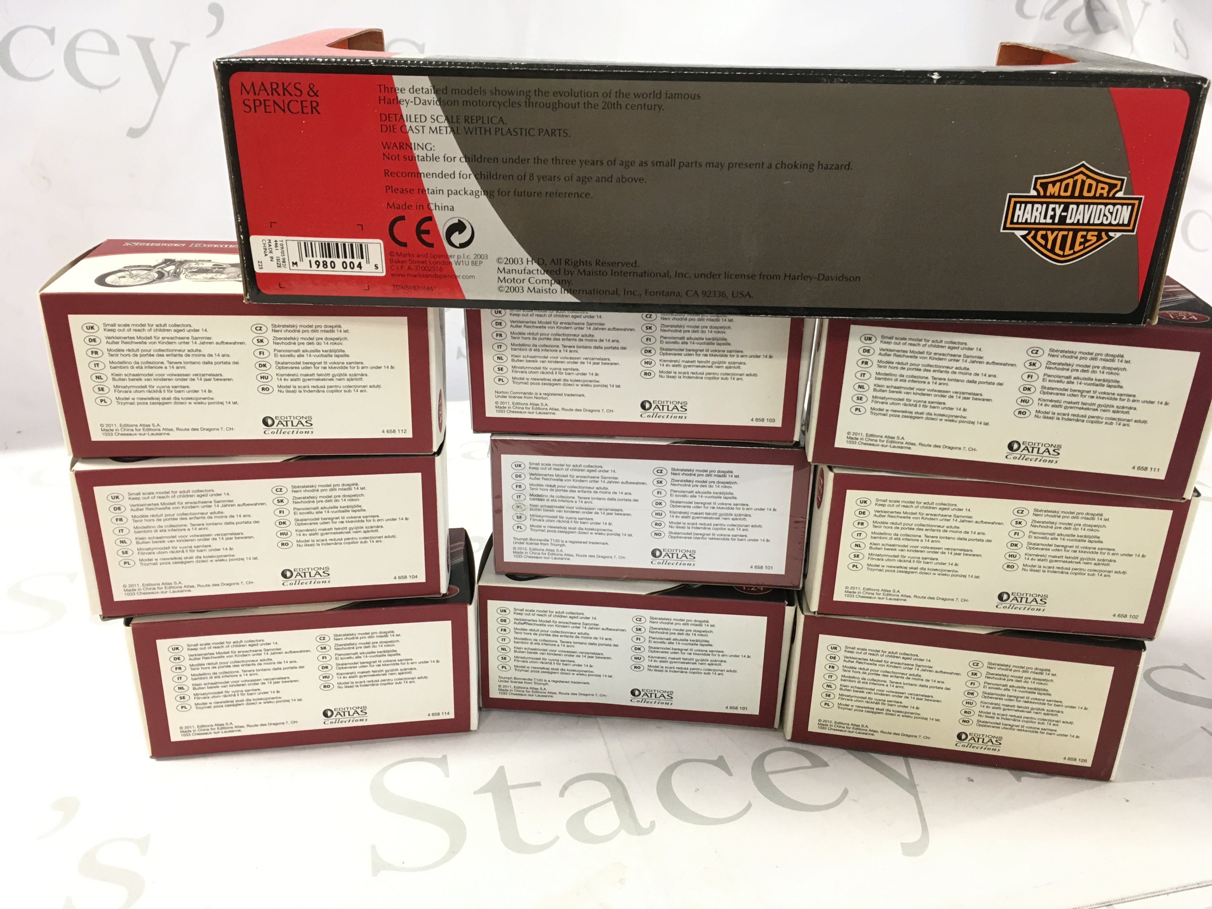 A collection of 9 boxed model motorcycles by Atlas in the Classic Motorbikes series. Als includes a boxed set of 3 Harley Davidson motorbikes. No reserve
