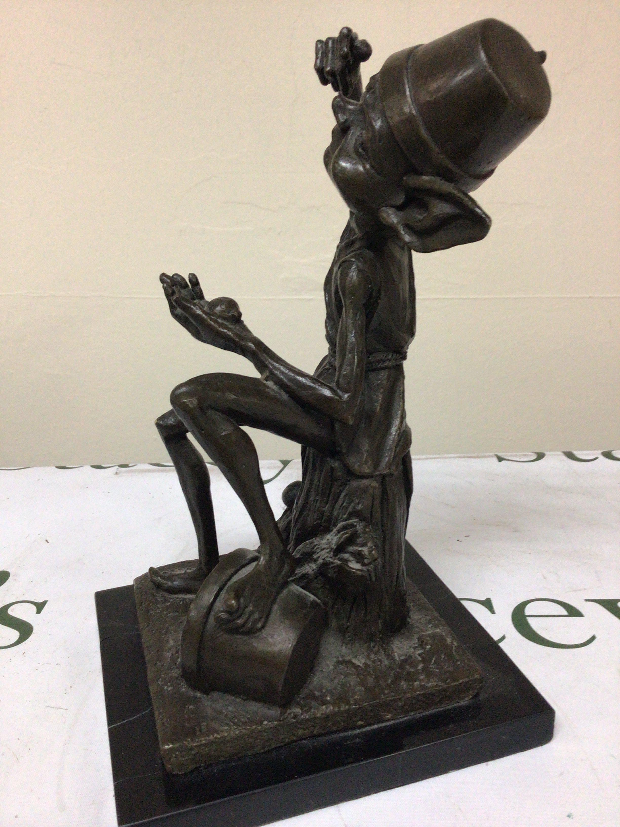 A 20th Century bronze figure of a Hoblin seated on a tree trunk with a marble base attributed to Julian Jeffery (b1973) Height 26cm.