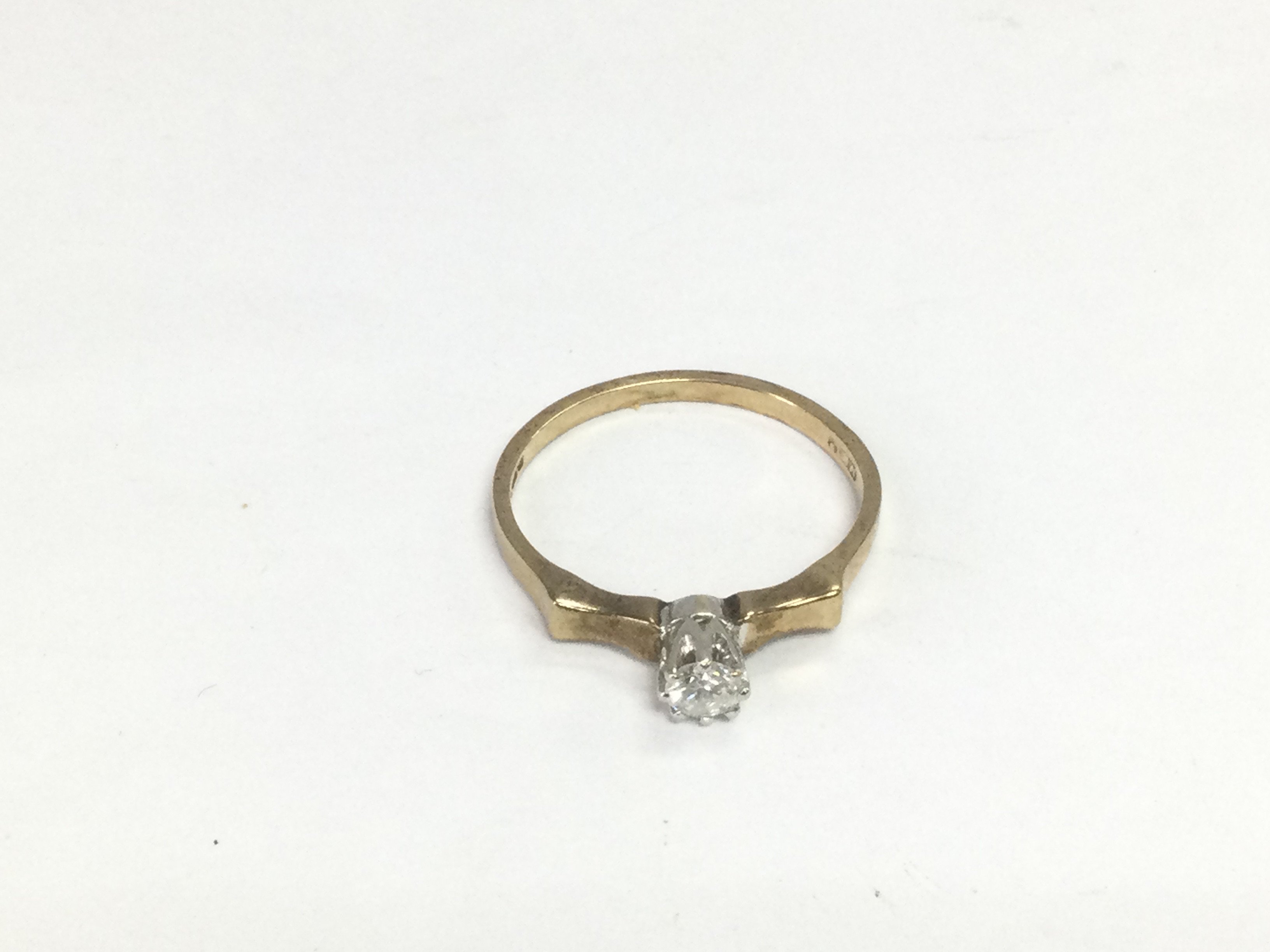 A 9ct gold solitaire diamond ring, approx .2ct, approx 2.2g and approx size P-Q. Shipping category A.