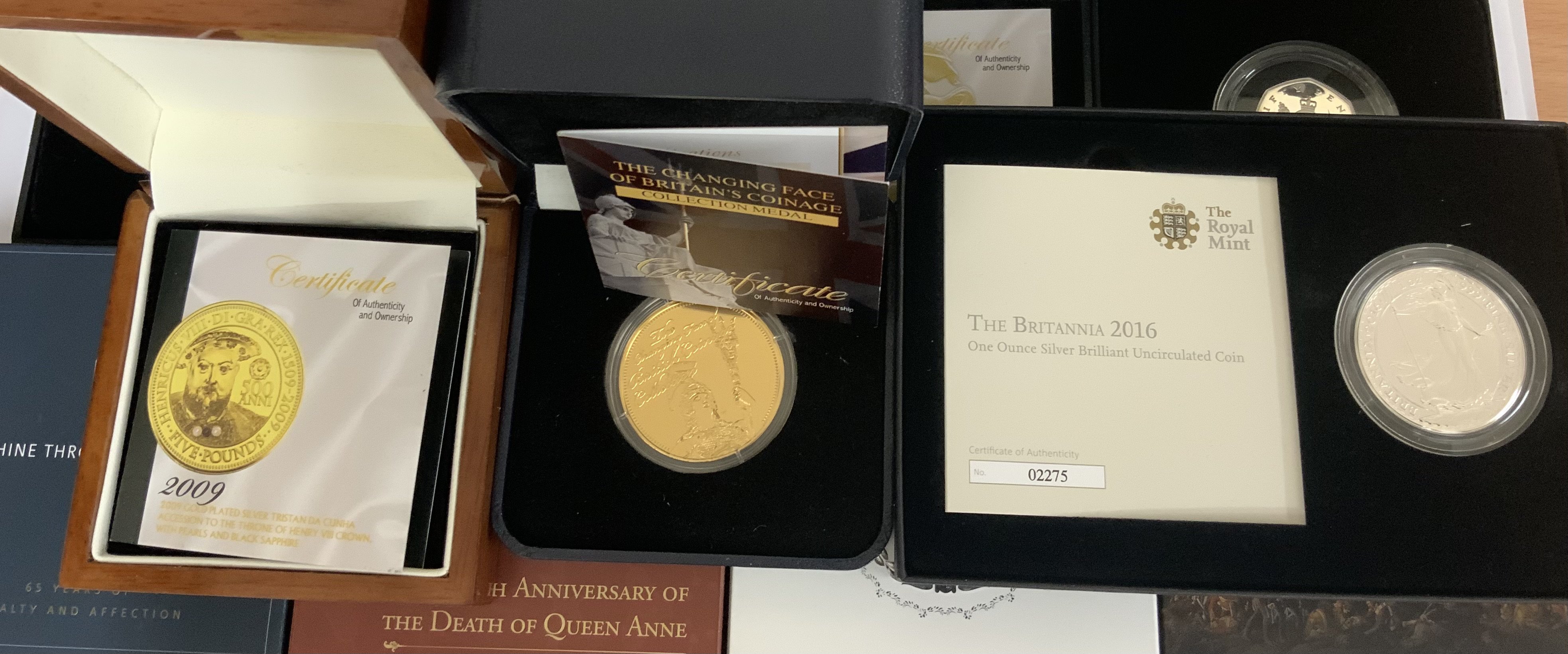 11 Silver proof presentation commemorative cased coins.