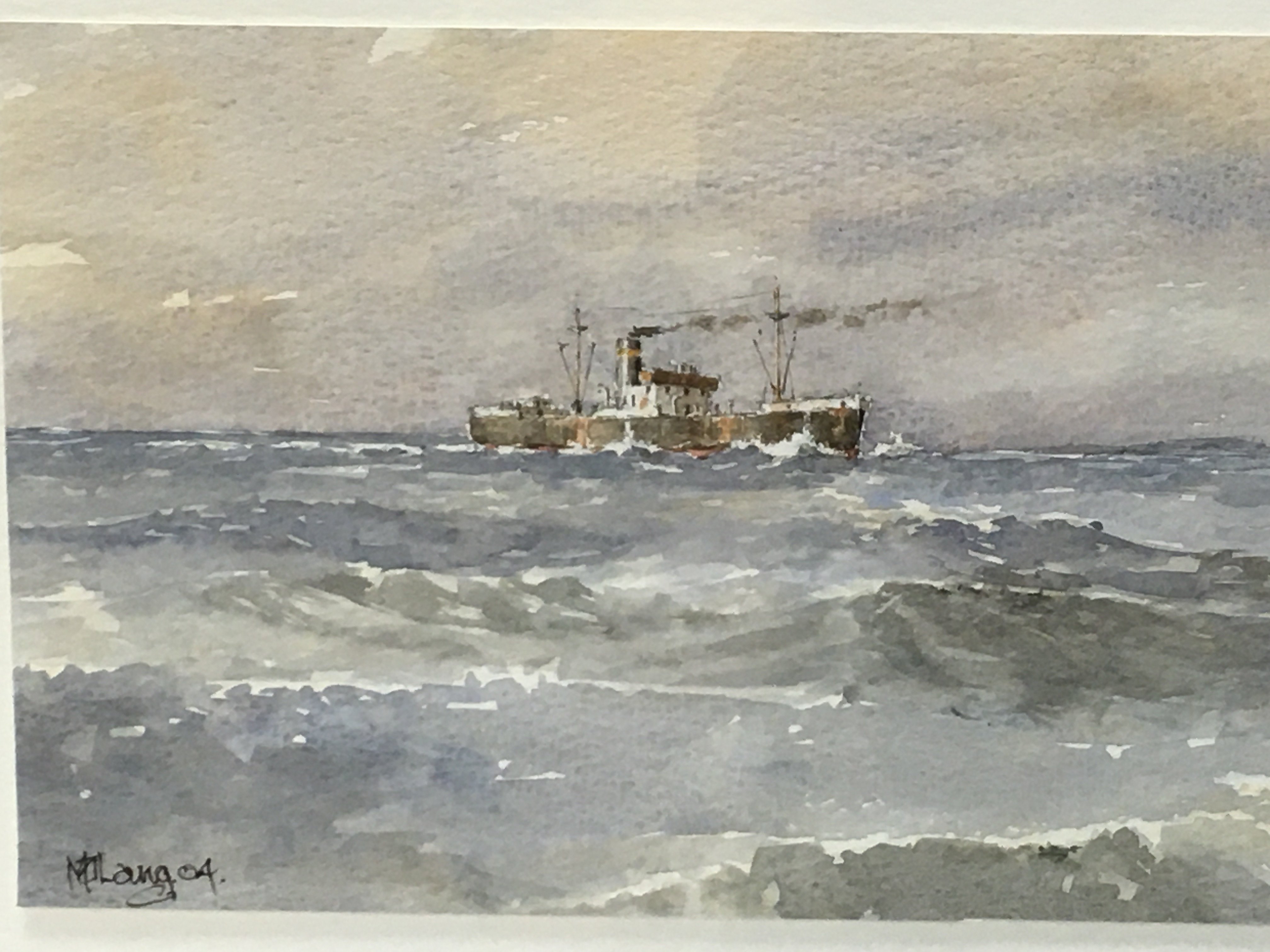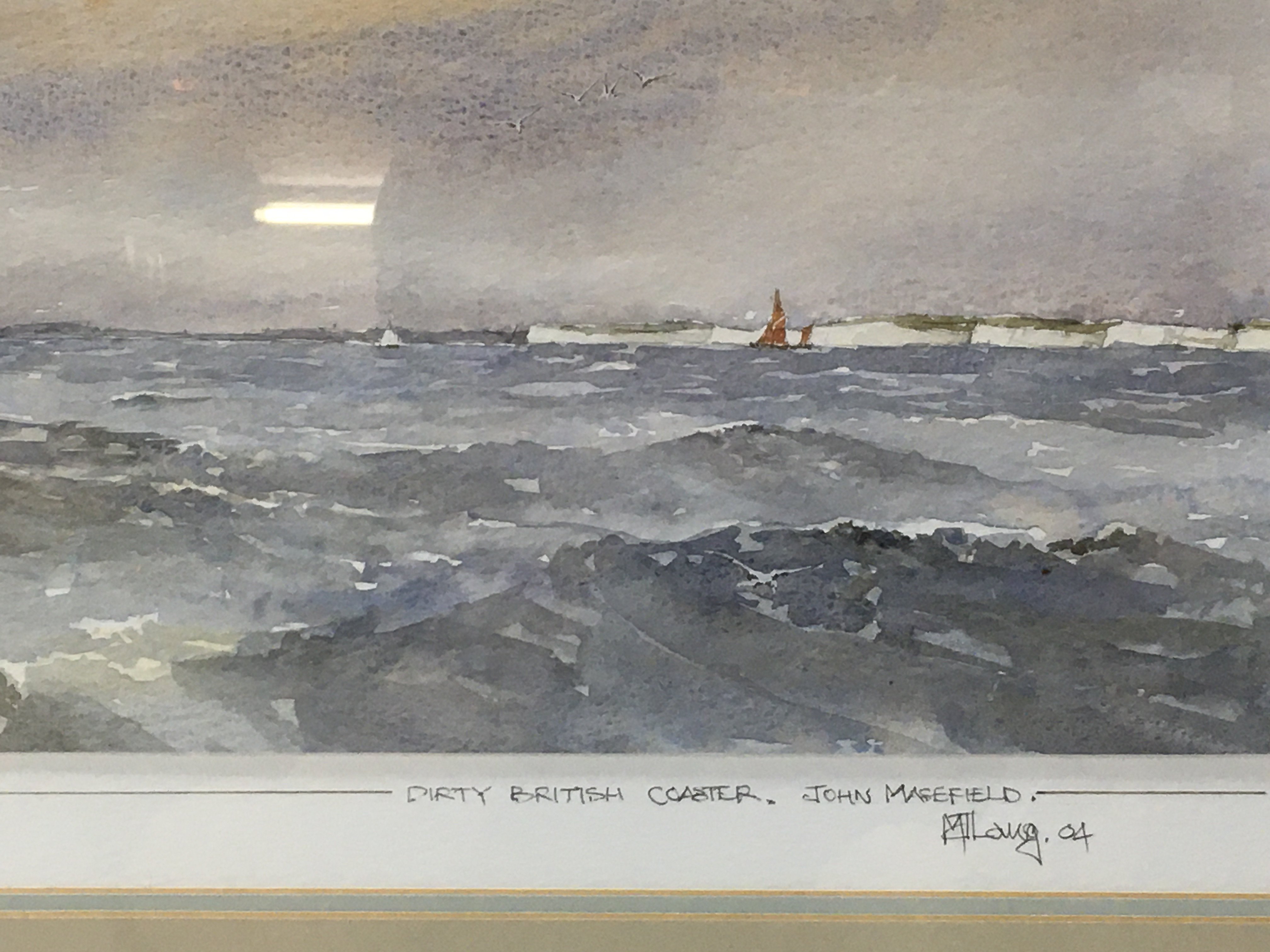 A Framed watercolour signed M Lang 04 titled Dirty British Coaster John Magefield . Dimensions 67x36cm