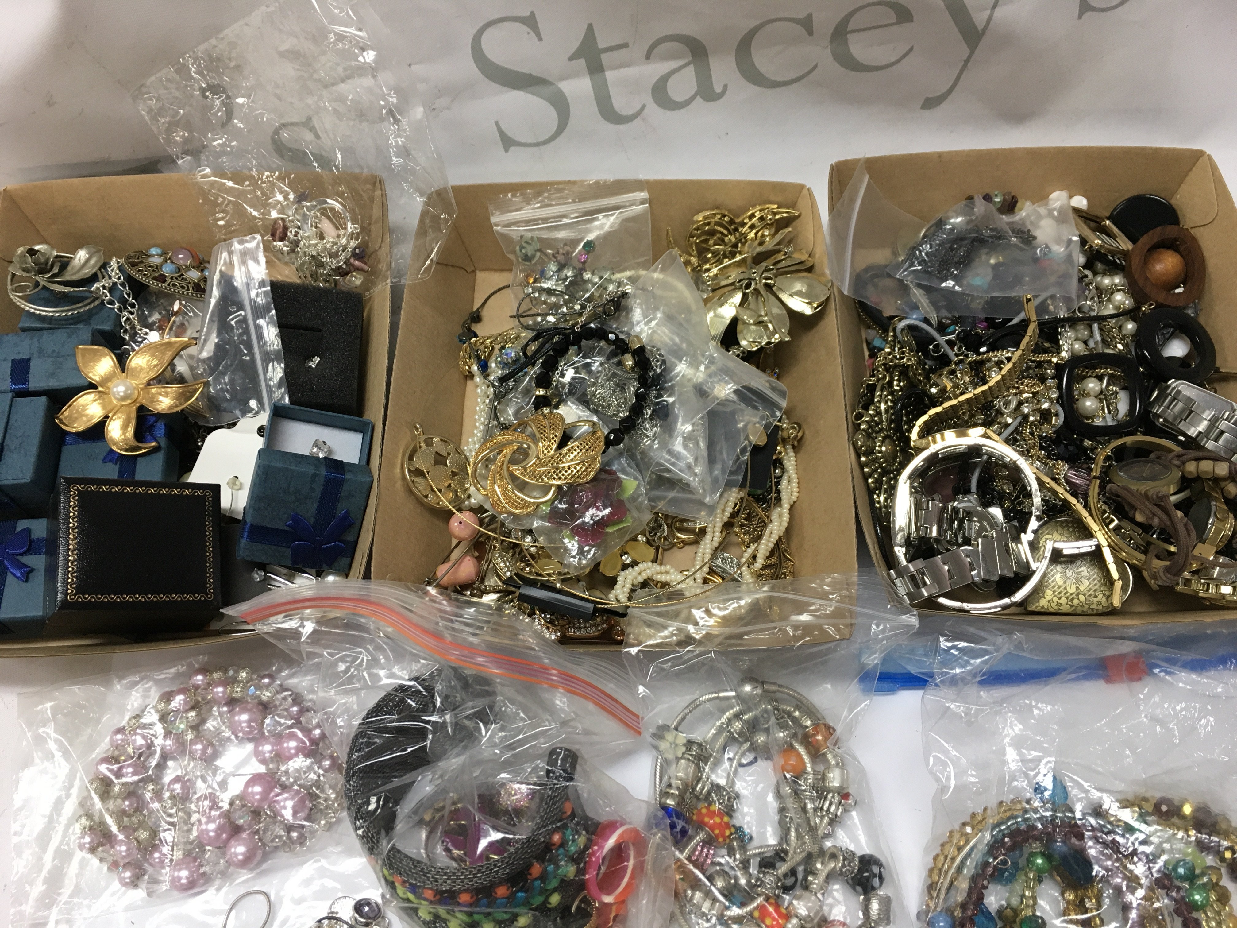 A collection of costume jewellery including watches, earrings, necklaces , bracelets etc . Postage category B