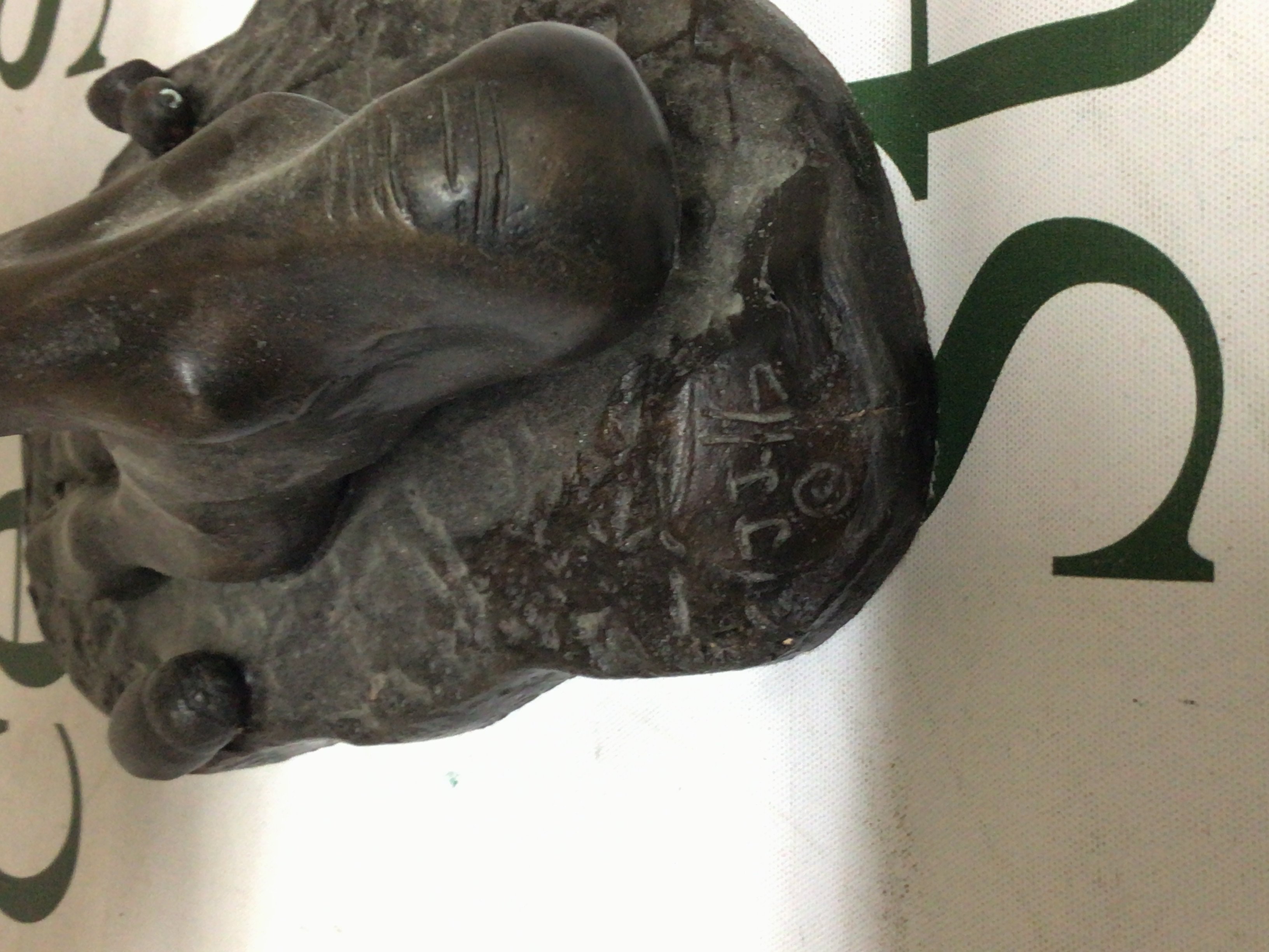 A quality 20th century bronze of a Hoblin with a catapult by Julian Jeffrey (b1973) signed base and a very well documented example of the sculptures by Julian Jeffery. Hight 55cm