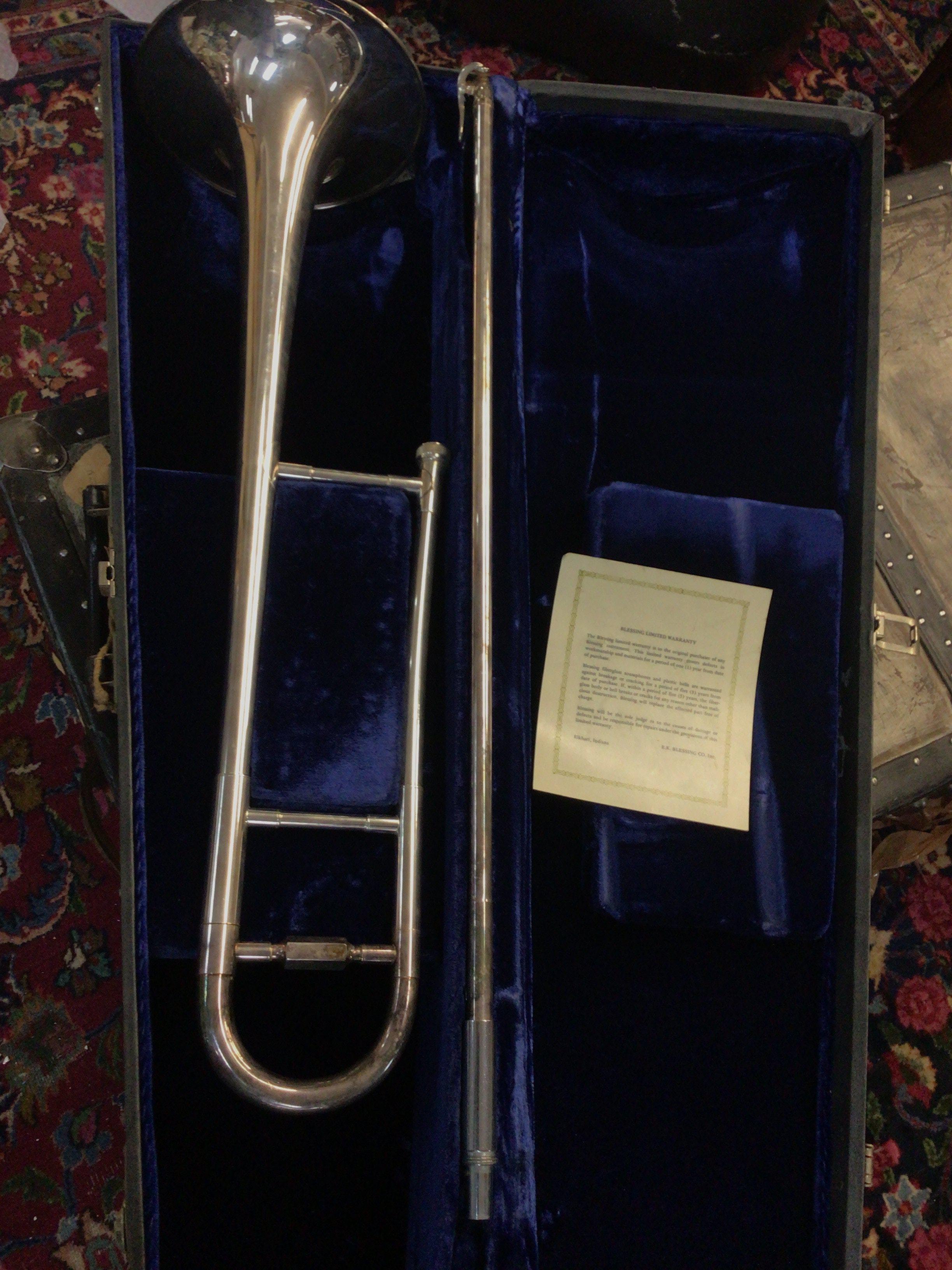 An American Chrome finished Blessing & Co trumpet in a fitted case with Warranty card.