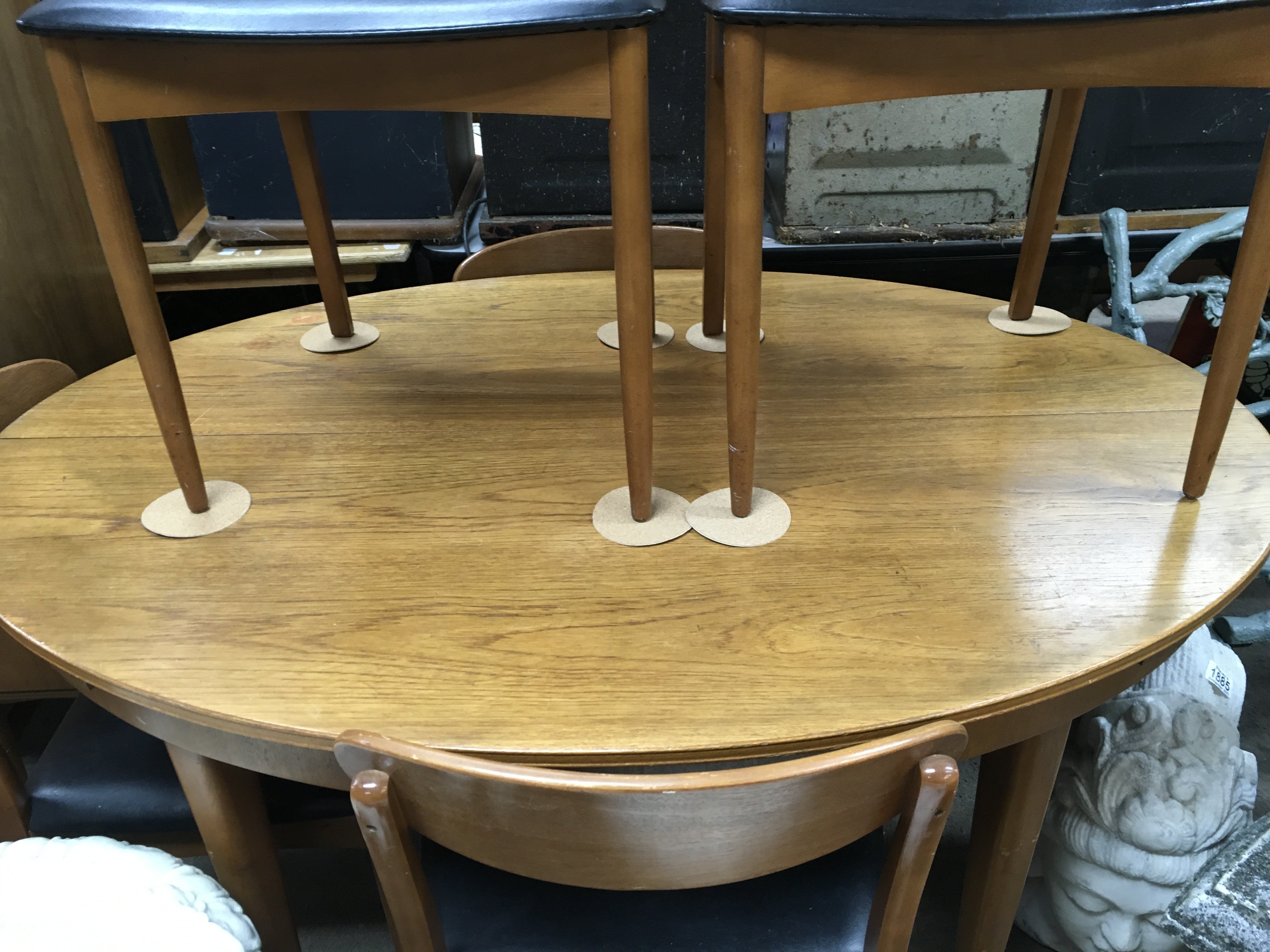 Mid 20th century design table with five curved back dining chairs , table dimensions 74cm tall 137cm wide