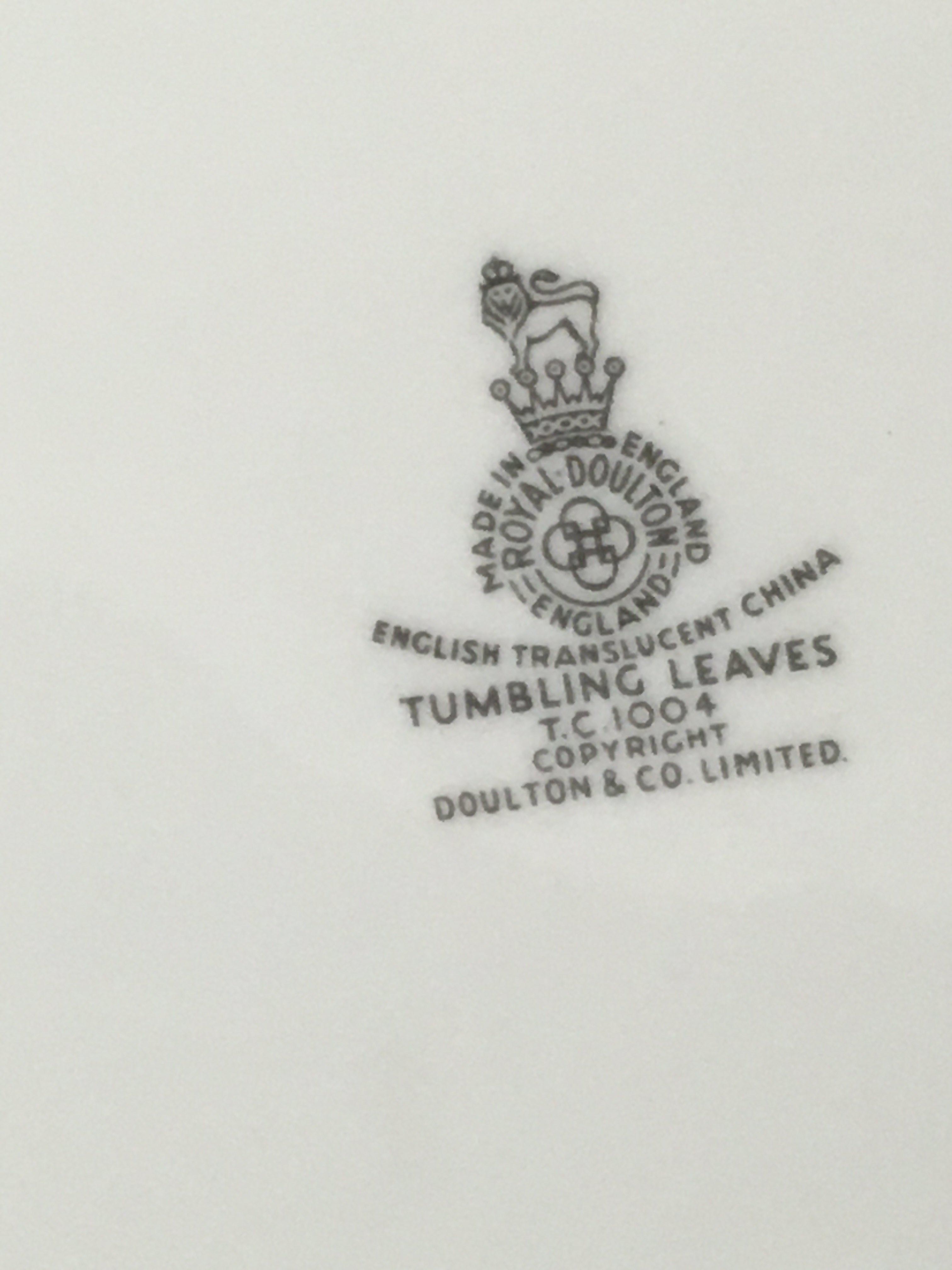 Royal Doulton Tumbling Leaves dinner set including plates, cups etc