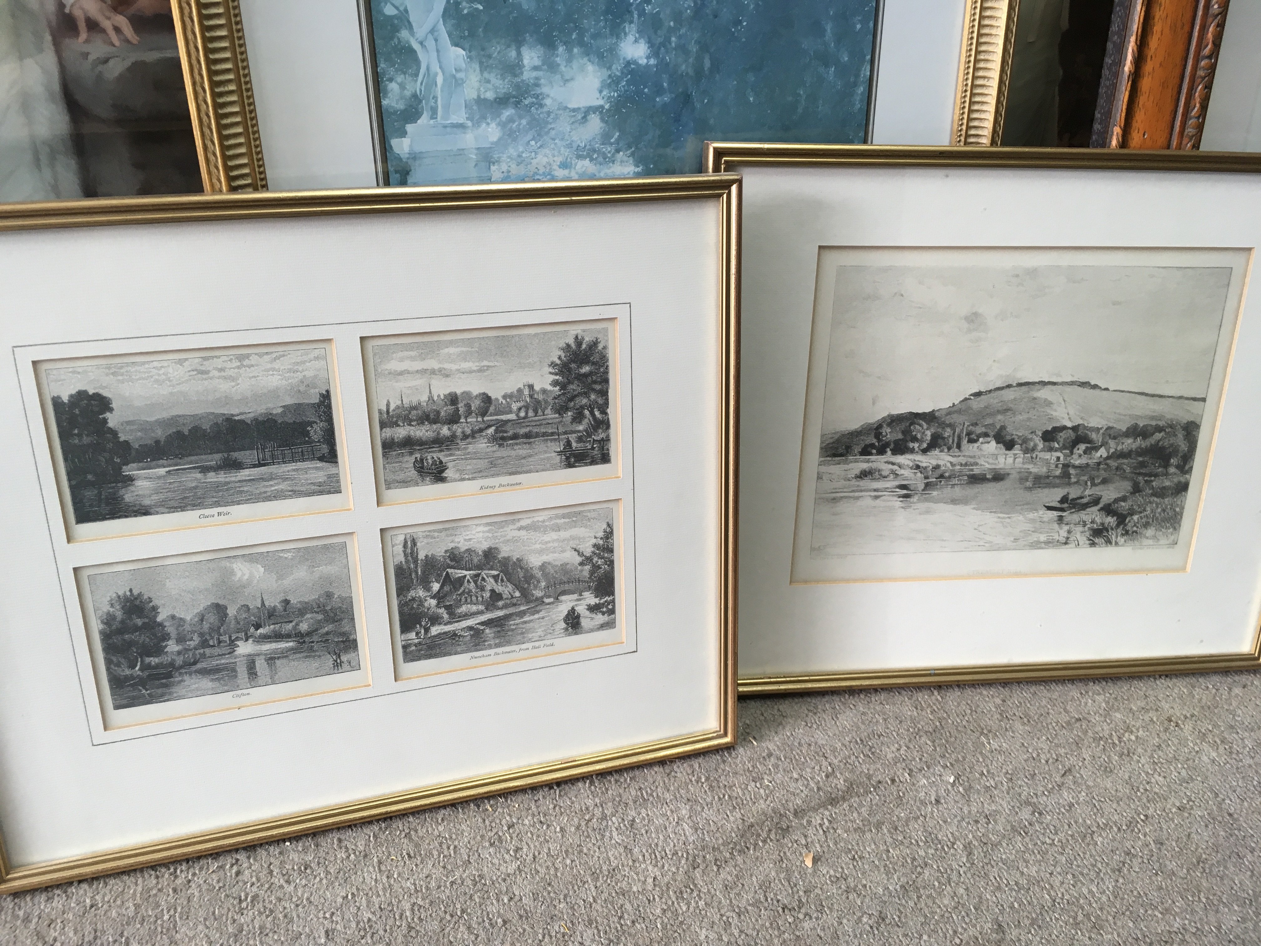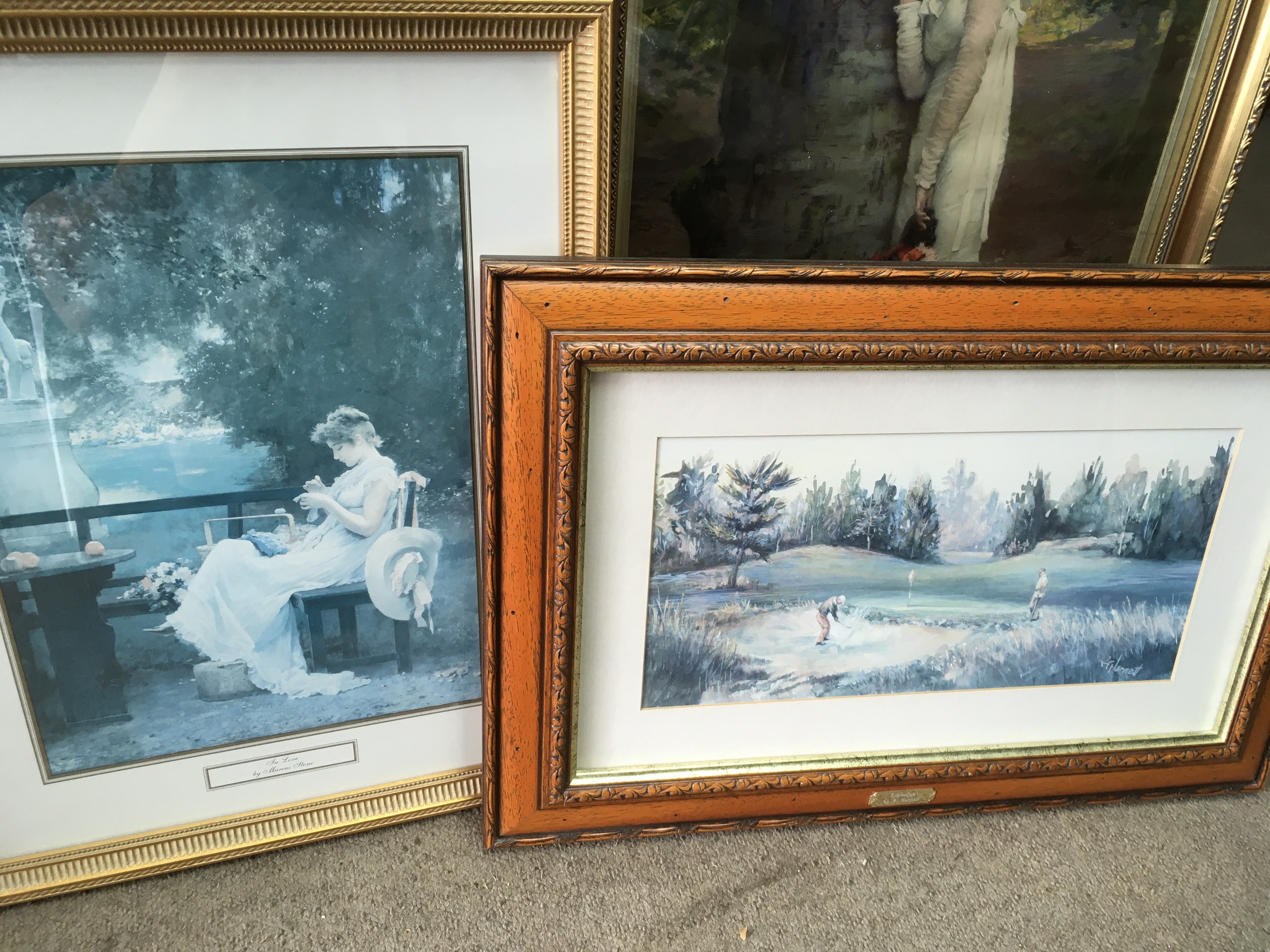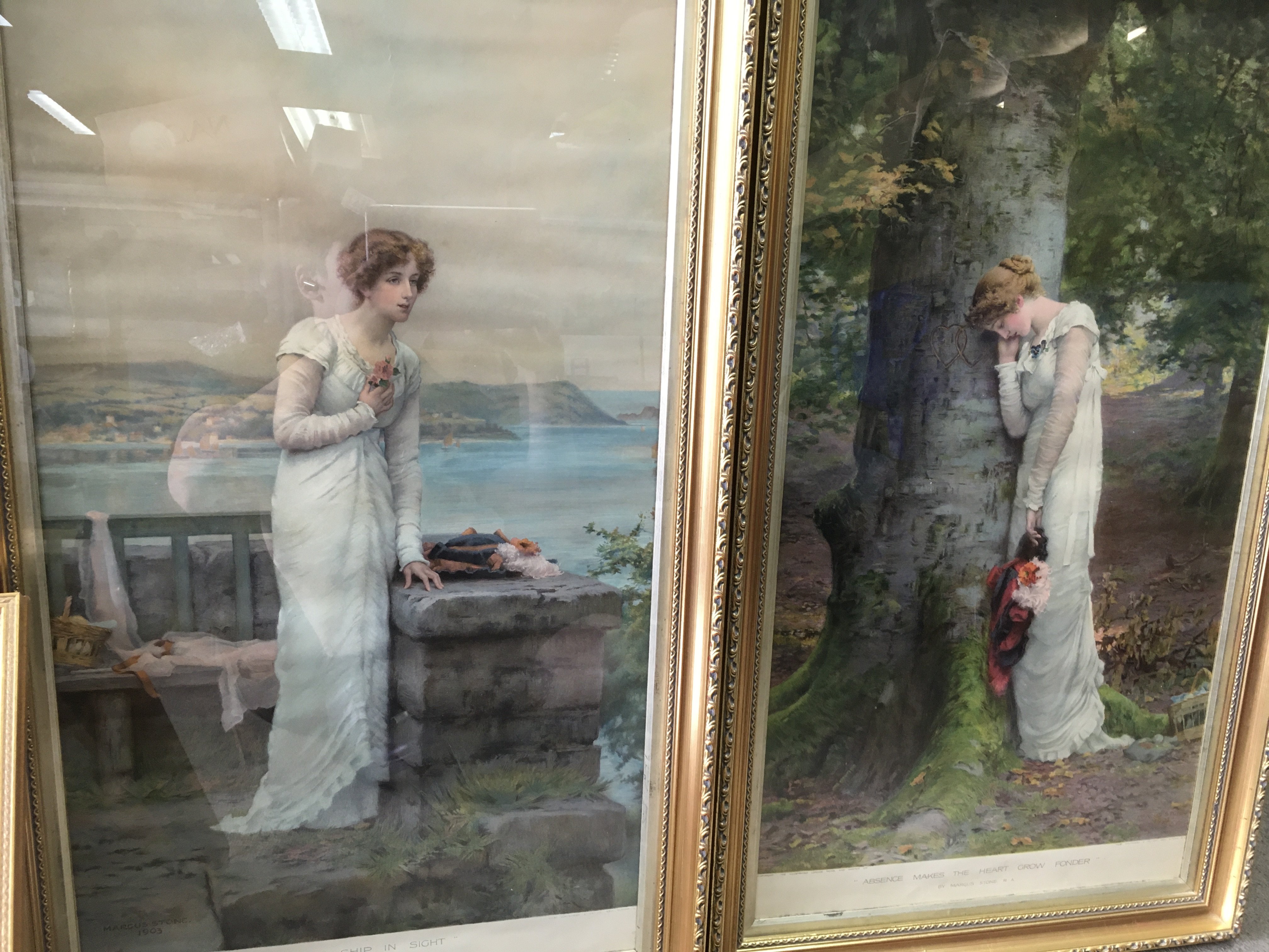 a collection of framed pictures including Marcus stone sketches . This lot cannot be posted