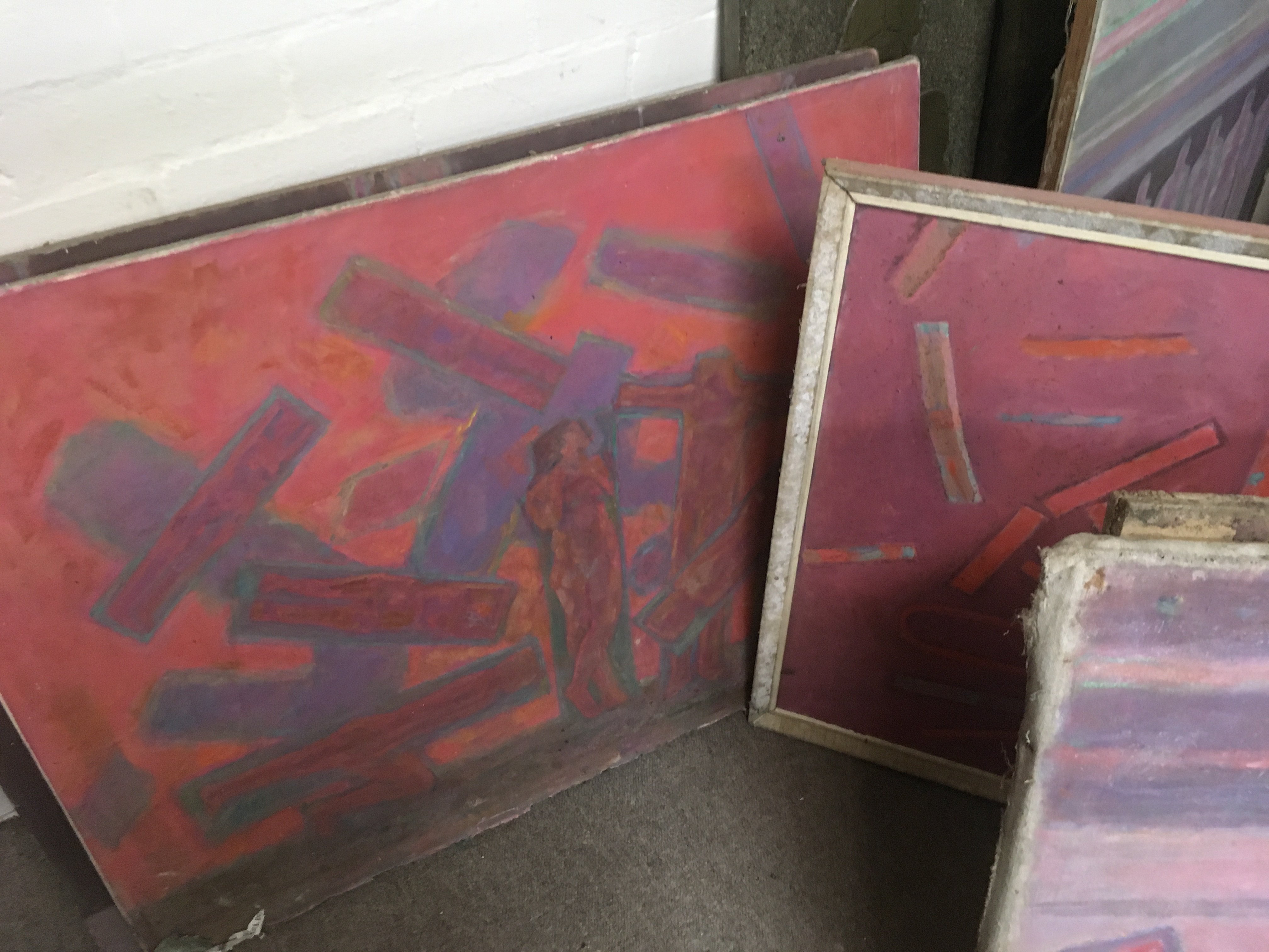 A collection of unframed Albert Harold Palmer (1911 - 1985 ) paintings including nudes, abstract etc. Artist and teacher, born in Northamptonshire, who studied art part-time, then full-time at Grimsby School of Art, 1923 - 9, worked in a London commercial art studio, 1929 - 33, then attended Royal College of Art, 1933 - 6. In 1938 he received a Travelling Scholarship from the College, also a Gold Medal. After copying House of Commons murals for the World Trade Exhibition in New York, 1938 - 9, Palmer from 1939 - 45 served in the Camouflage Corps, then spent 1947 - 9 in a tuberculosis sanatorium in Switzerland. He was on the staff of Maidstone Art School, 1950 - 4, from 1954 - 62 was lecturer in painting at Gravesend Art School, then acting principal; and was head of art and craft at Gravesend Adult Education Centre, 1962 - 77. From 1977 - 85 painted full-time at his own studio gallery in central London