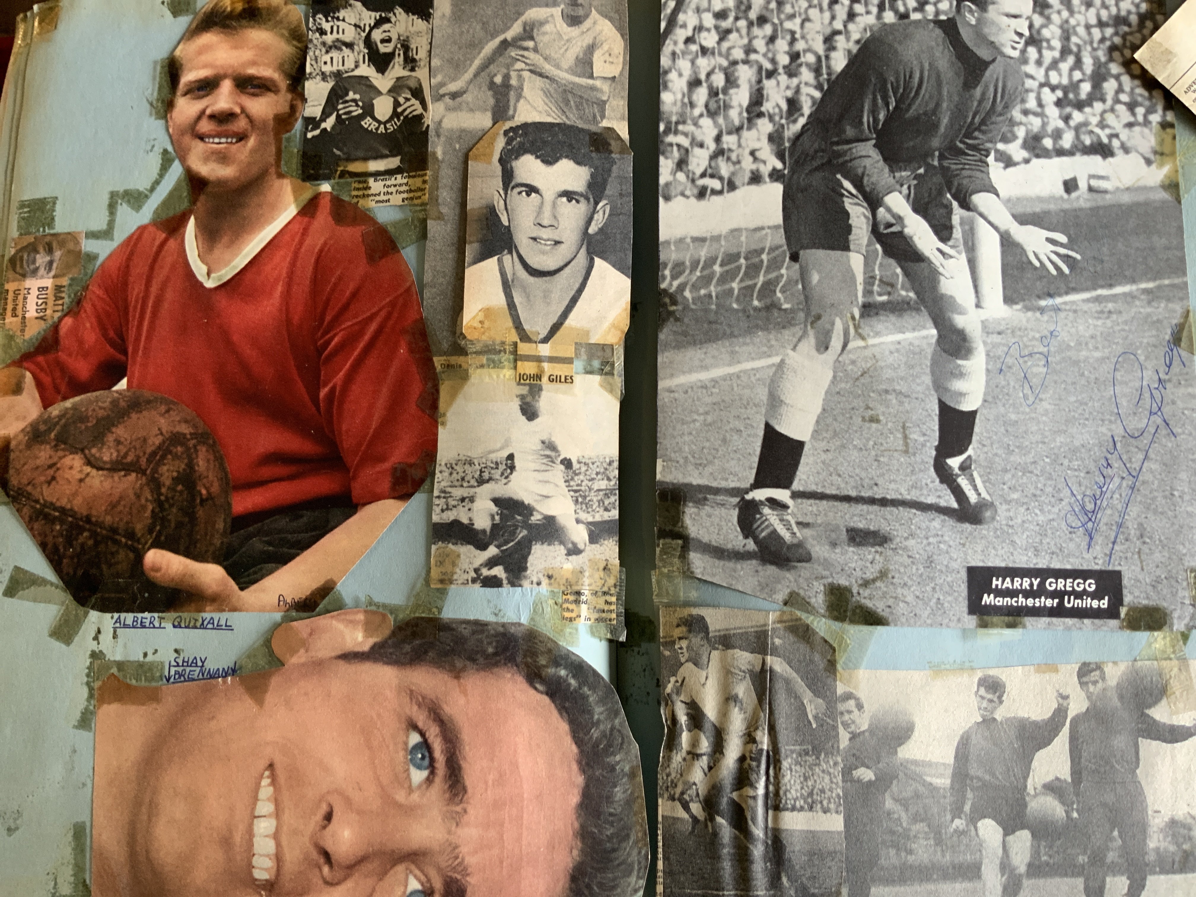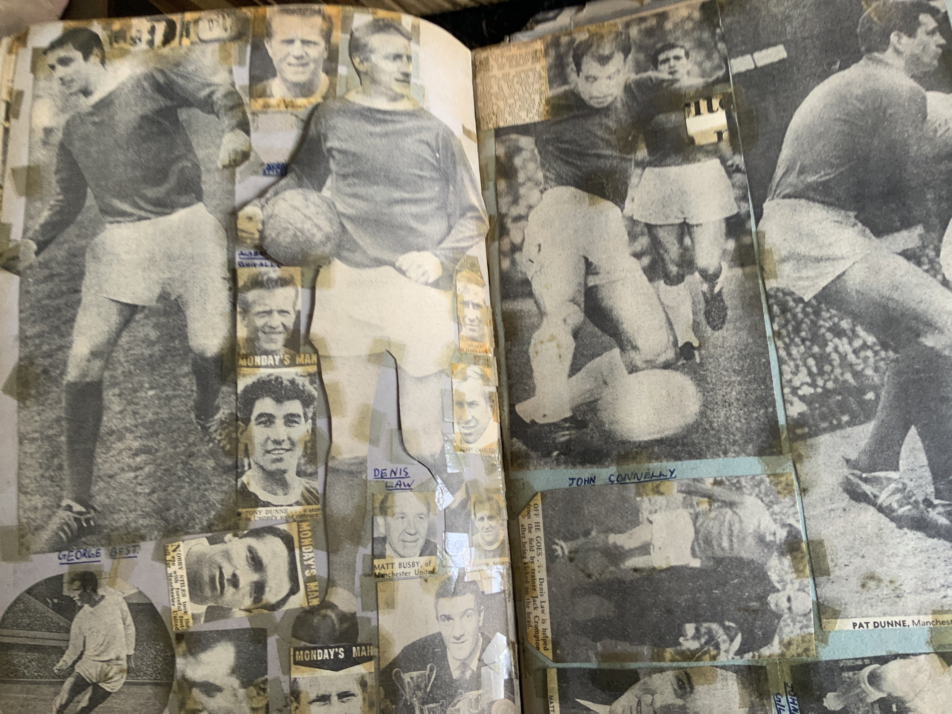 Manchester United Football Scrapbooks: Ten scrapbooks from the 60s to the 80s. Tape coming loose throughout. Few posters and autographs. (10)
