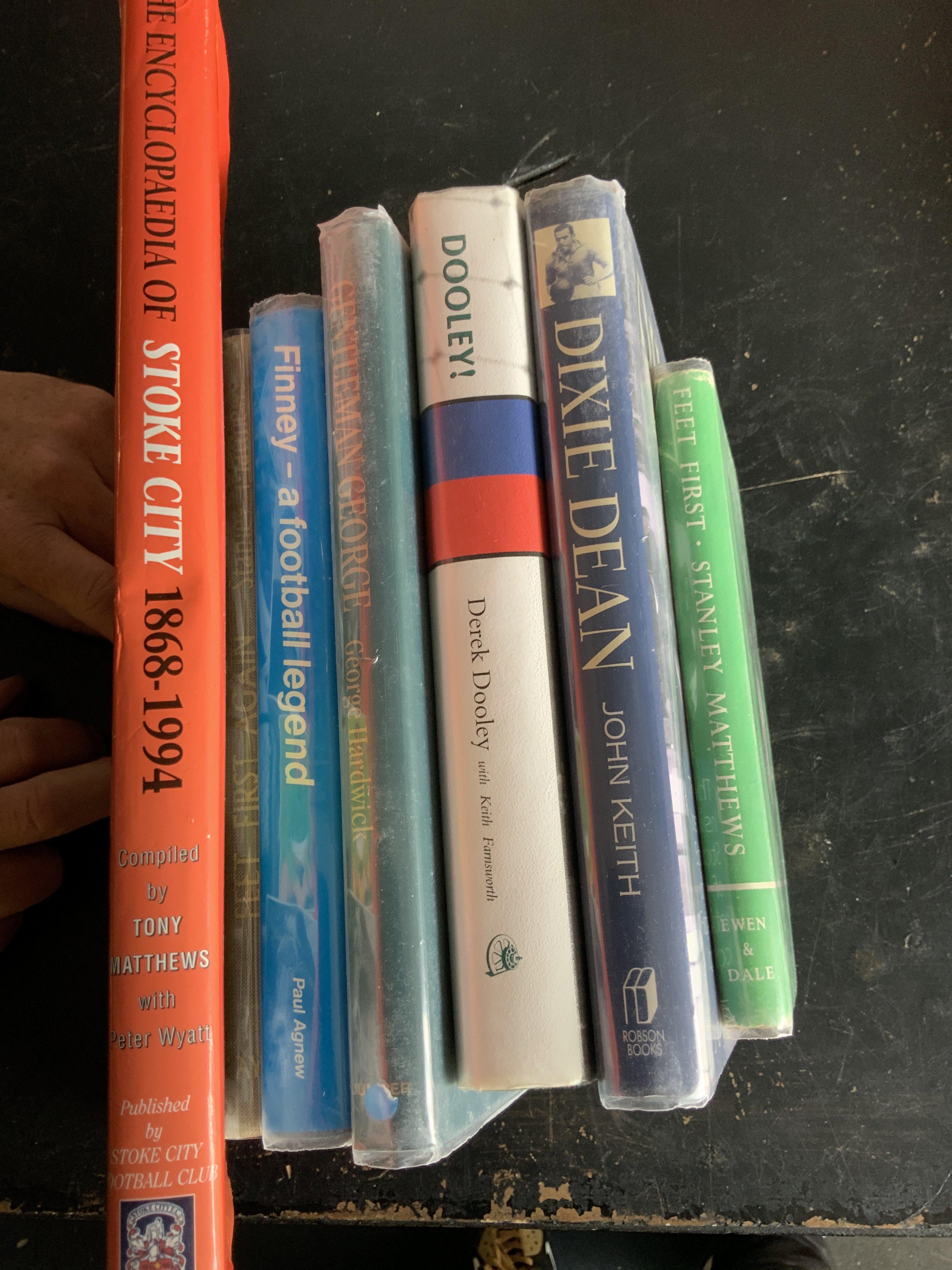 Signed Football Books: Includes Finney Matthews Hardwick all undedicated plus Dean stuck in, Dooley with white card and a further Matthews with signed postcard. (7)