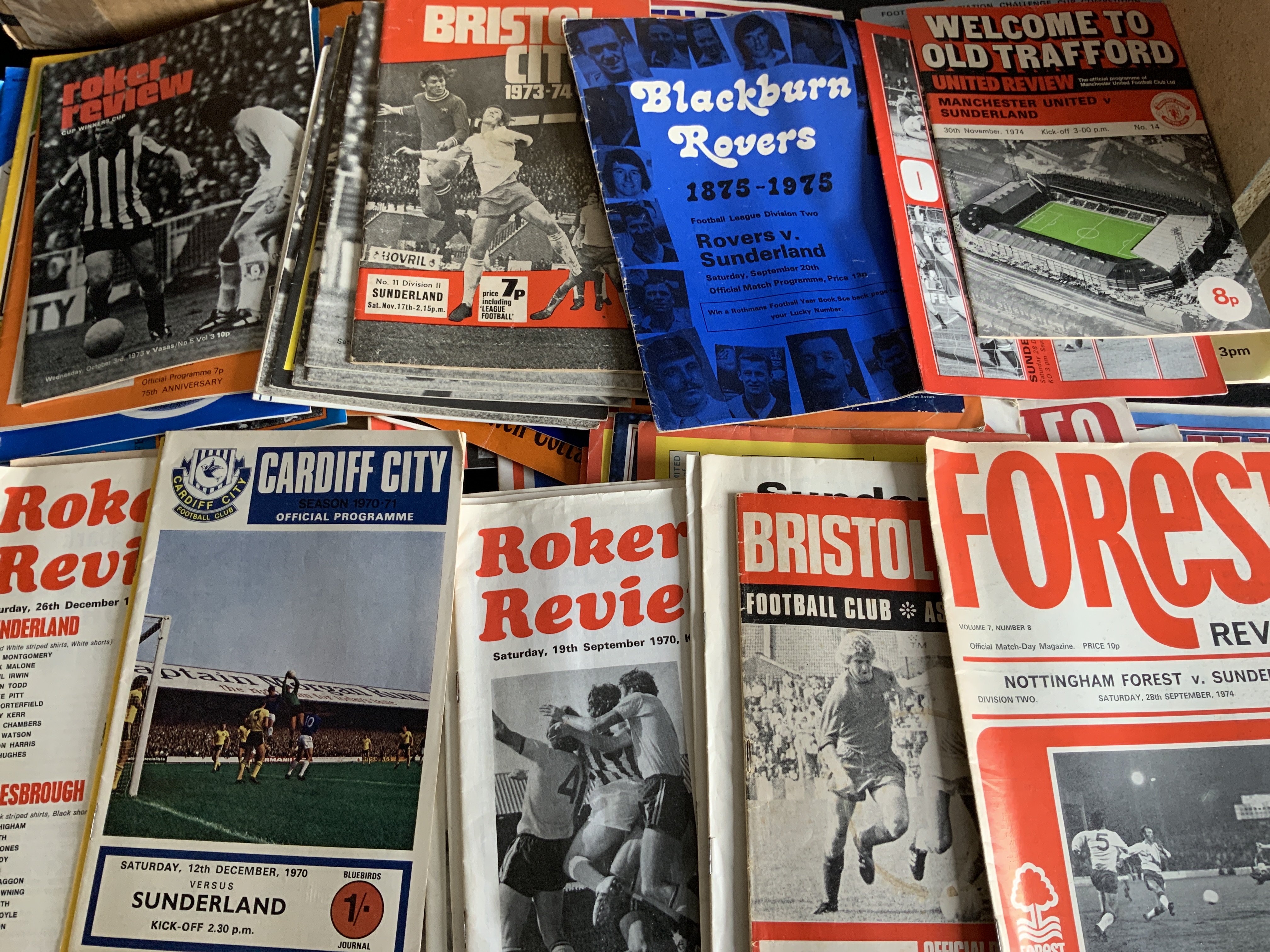 1970s Sunderland Home + Away Football Programmes: Good condition spanning the decade in good condition. (est 200)