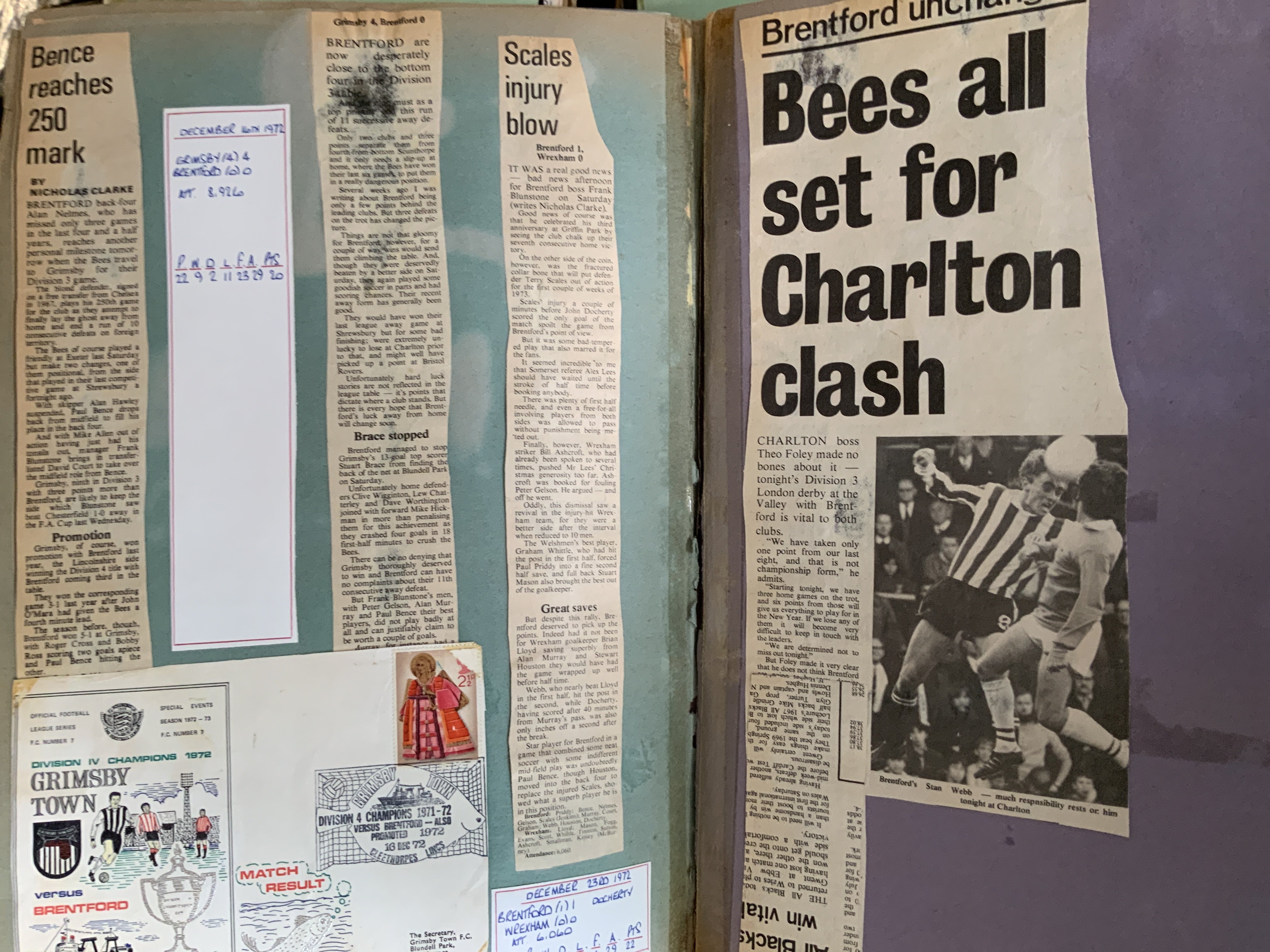 Brentford Football Scrapbooks: From 70/71 to the late 80s with mainly cuttings all dated in order. Includes some photos. (31)