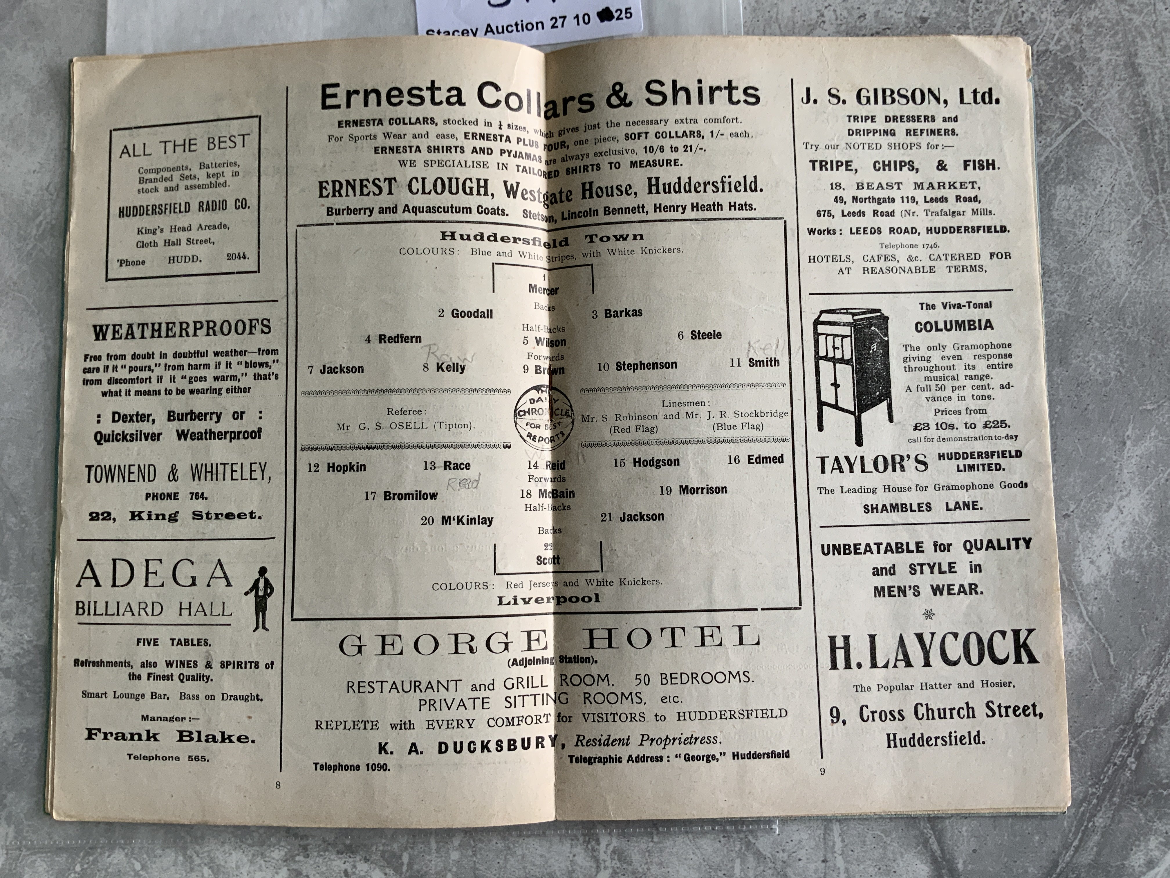 1927 - 1928 Huddersfield Town v Liverpool Football Programme: 1st Division match in excellent condition with lightly pencilled team changes. Huddersfield were runners up.