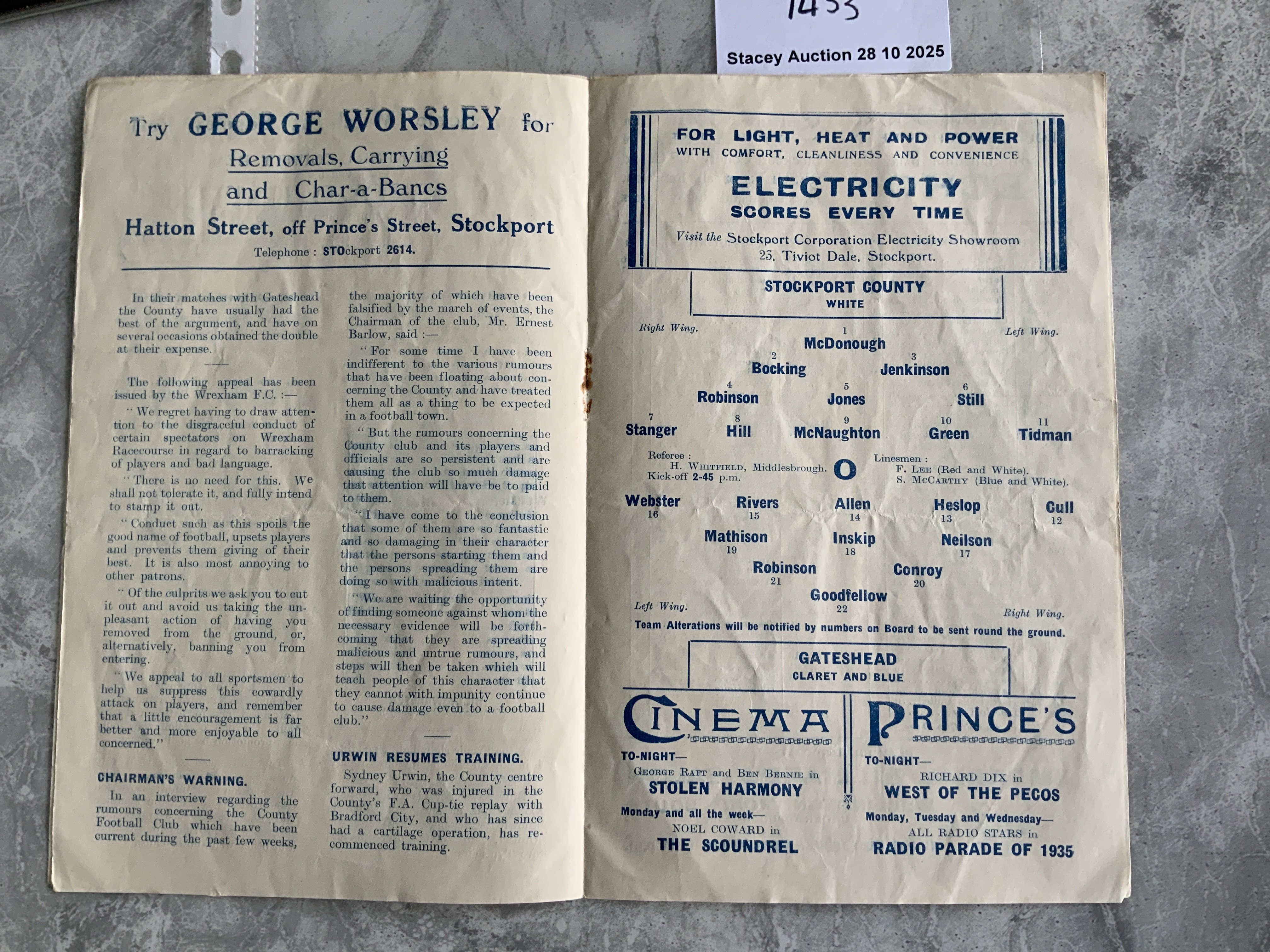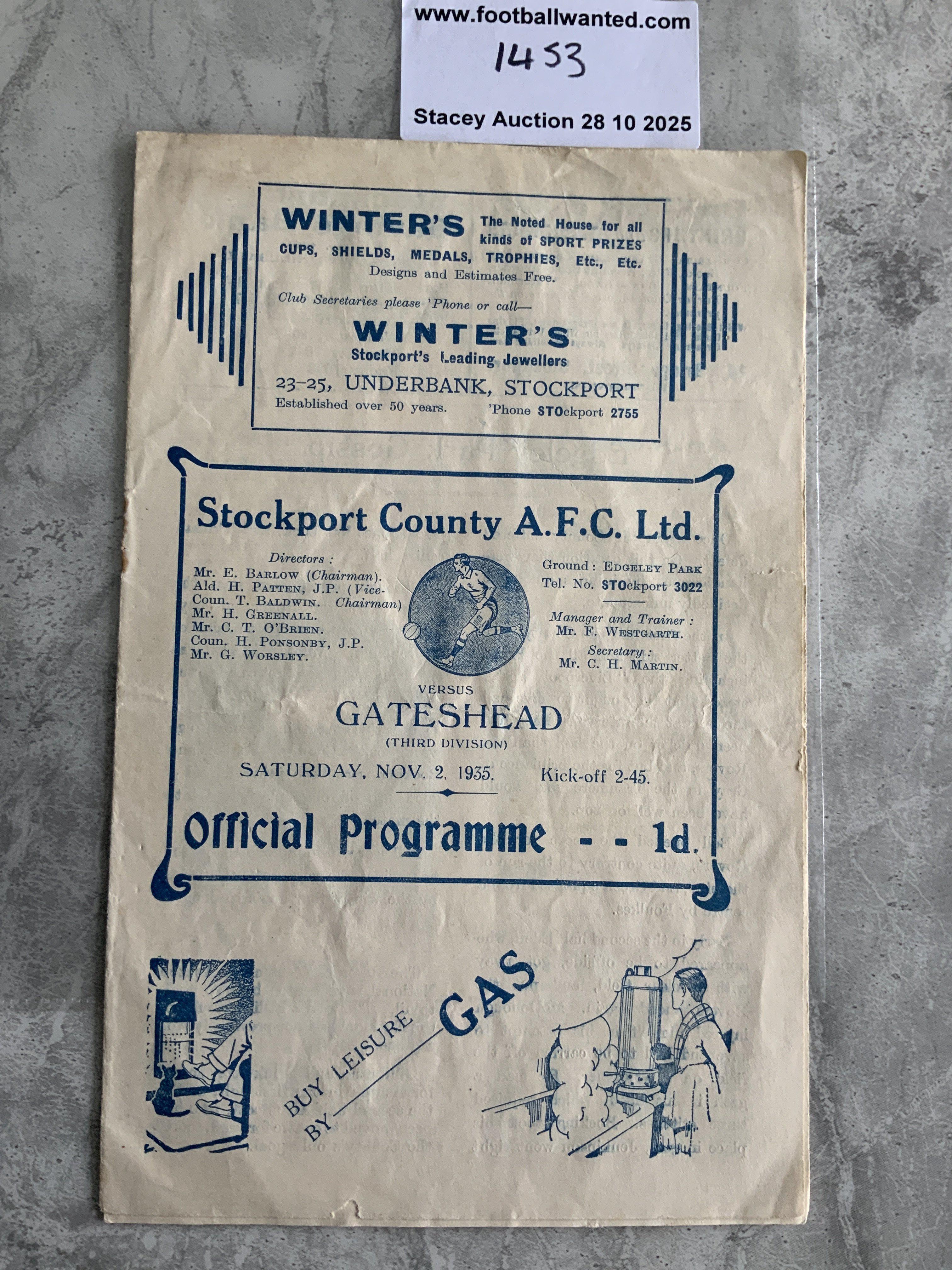 35/36 Stockport County v Gateshead Football Programme: 3rd Division North match in good condition with no team changes.