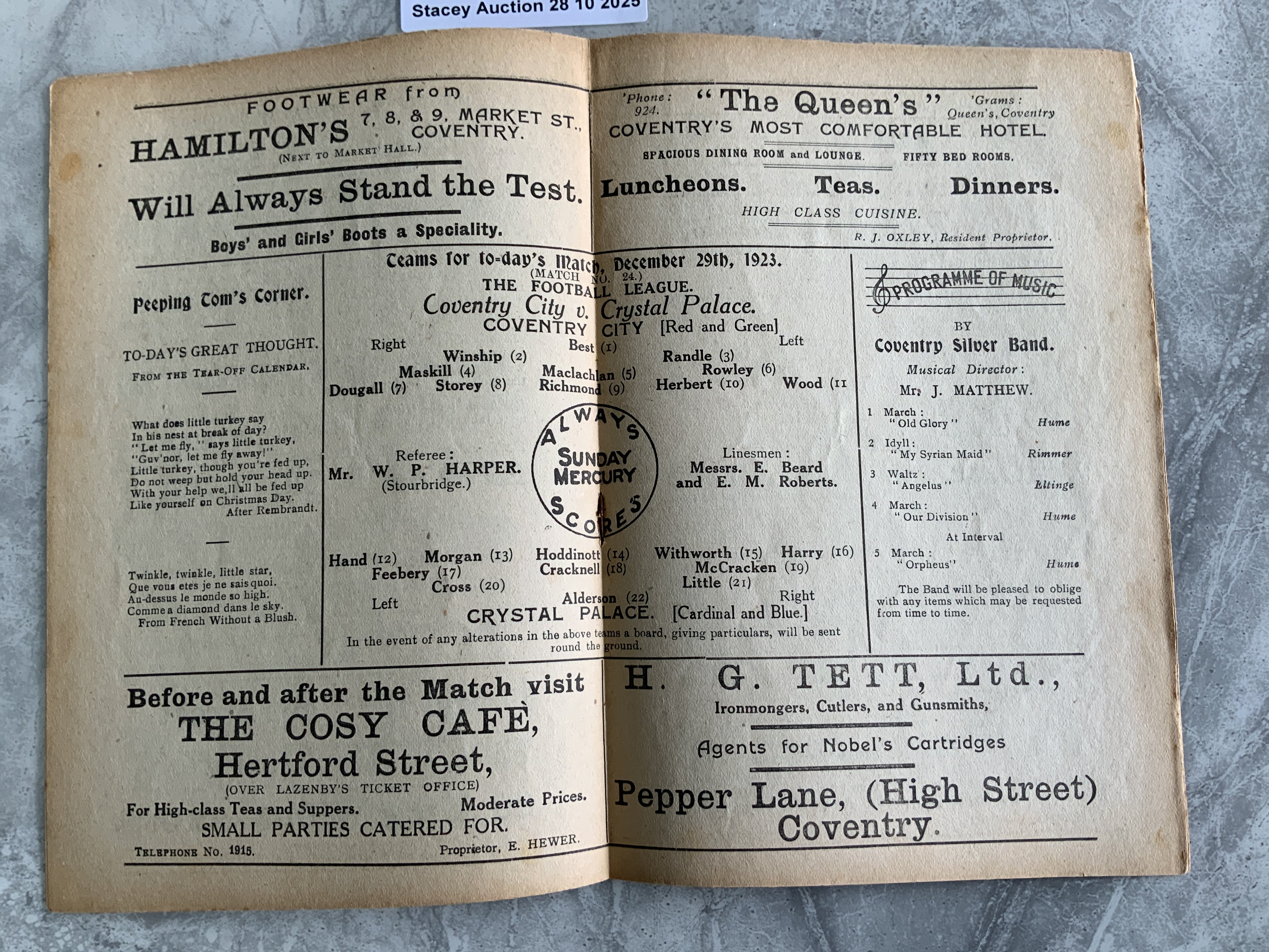 1923 - 1924 Coventry City v Crystal Palace Football Programme: 2nd Division match in very good condition with team changes.