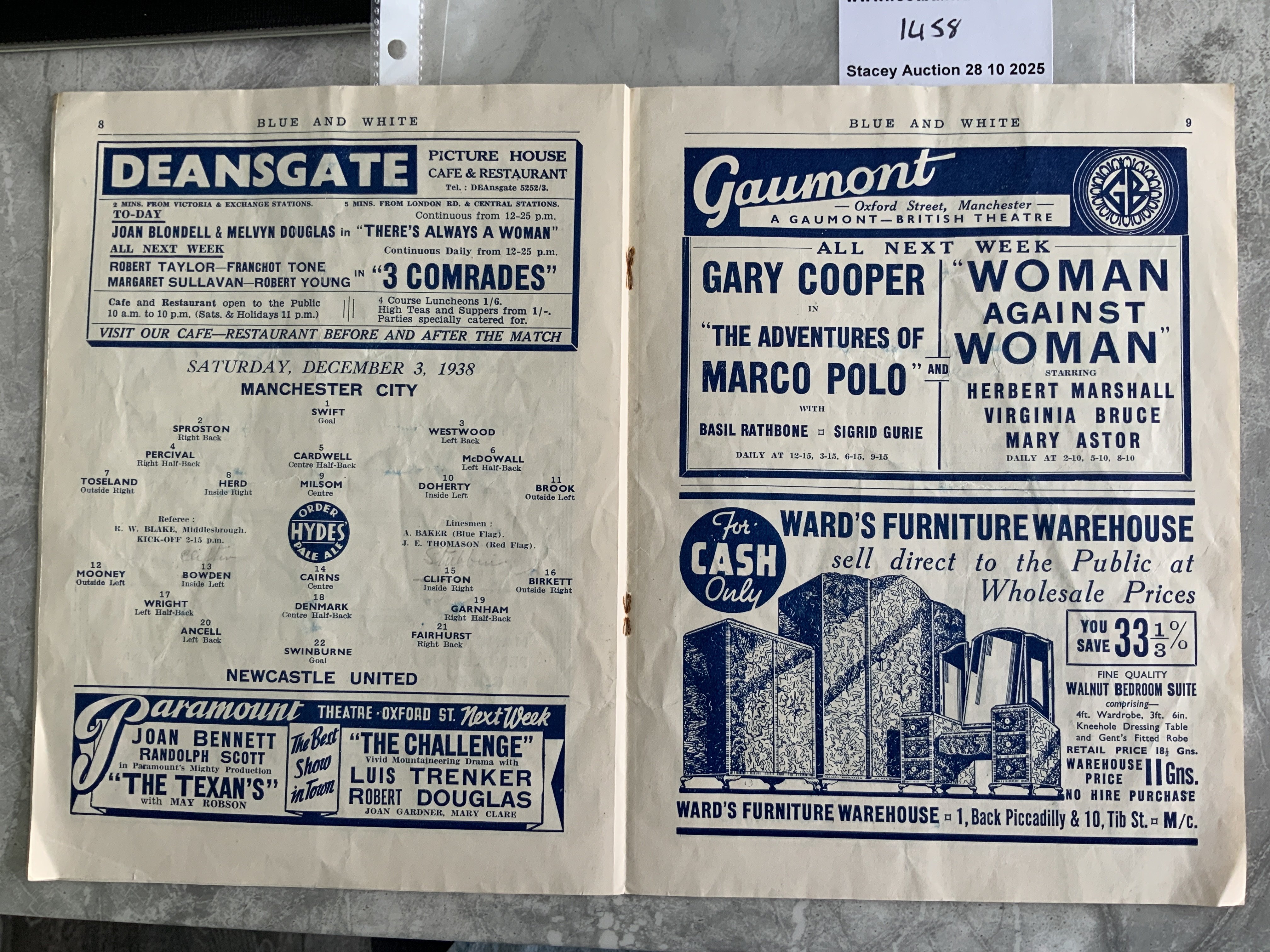 38/39 Manchester City v Newcastle United Football Programme: 2nd Division match in good condition with no team changes.