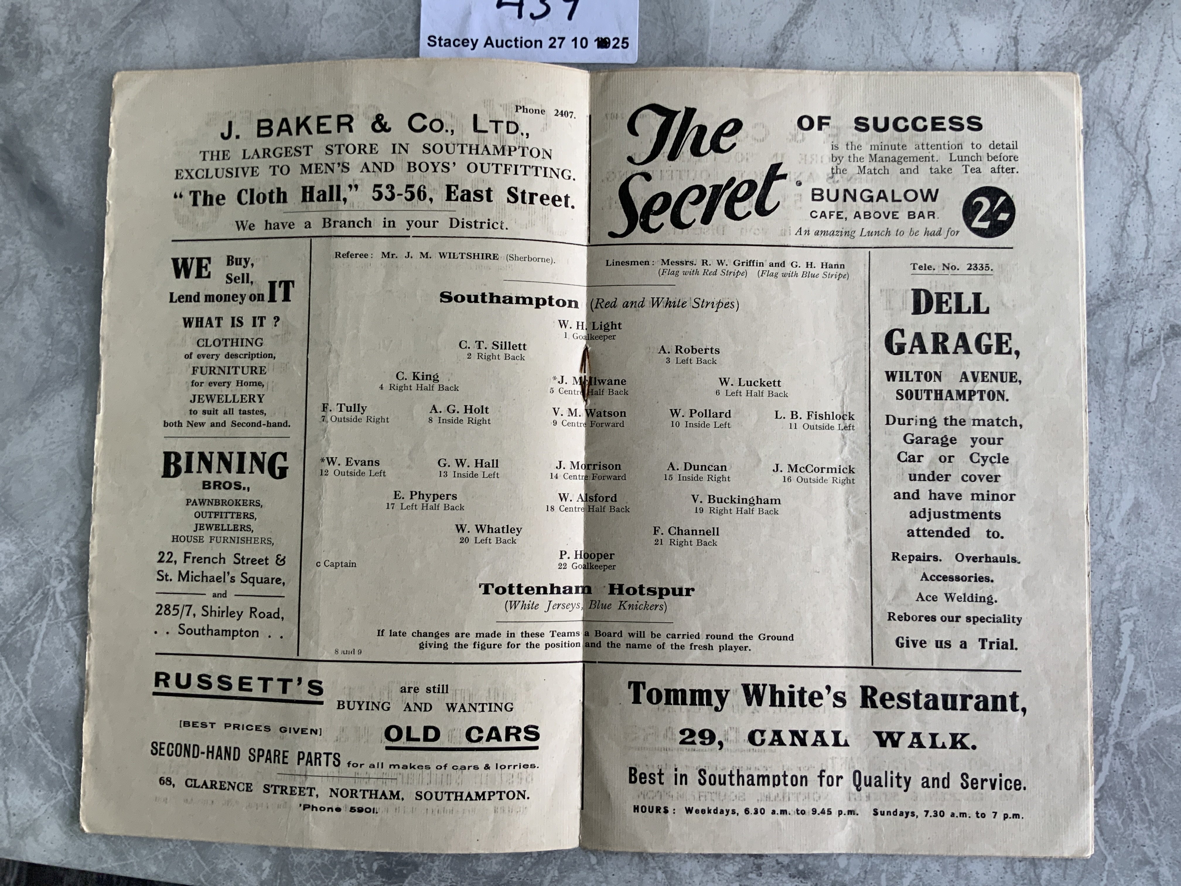 35/36 Southampton v Tottenham Football Programme: 2nd Division match in very good condition with no team changes. Golden Jubilee cover.
