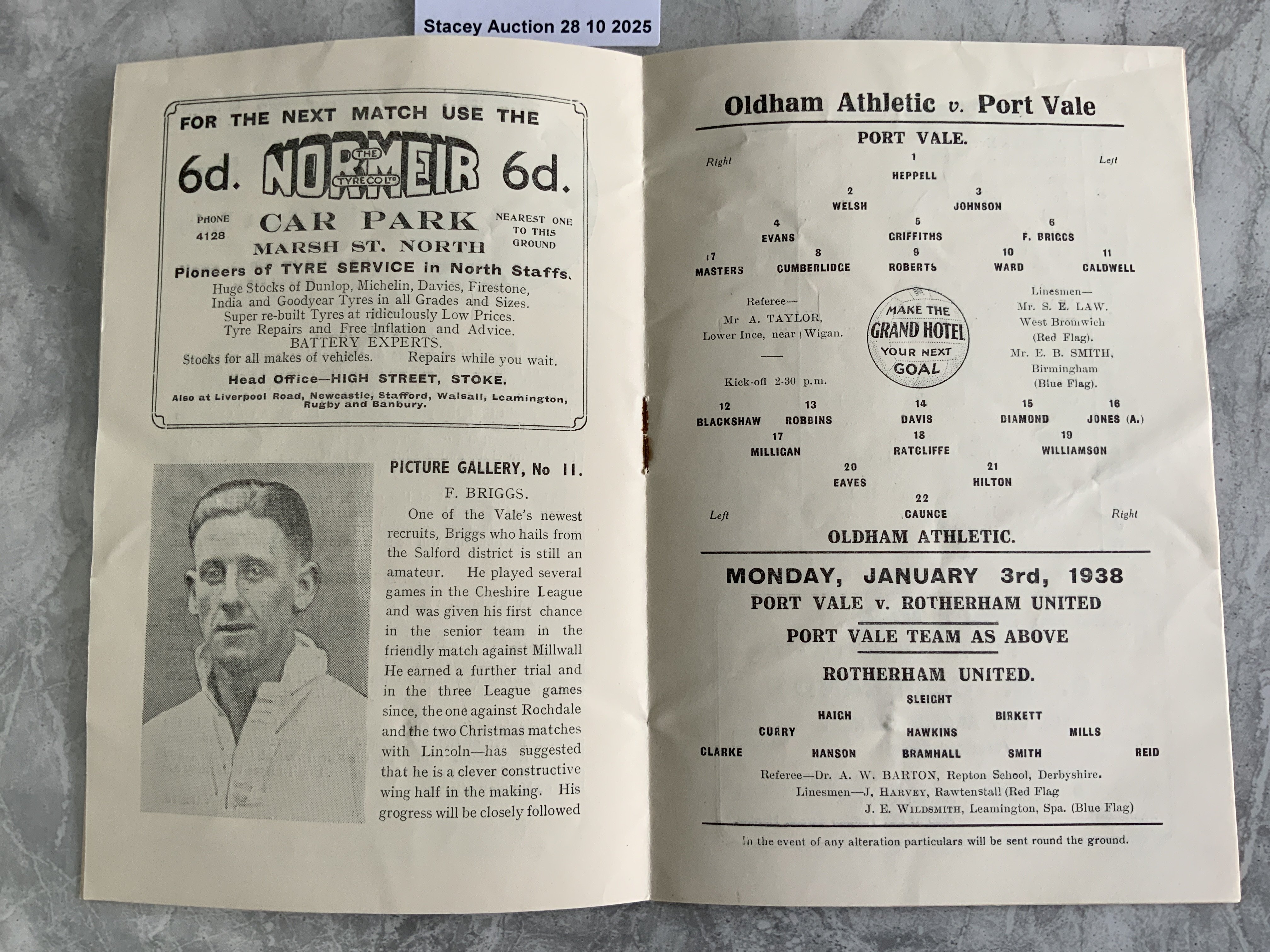 37/38 Port Vale v Oldham Football Programme: 3rd Division North match in excellent condition with no team changes.