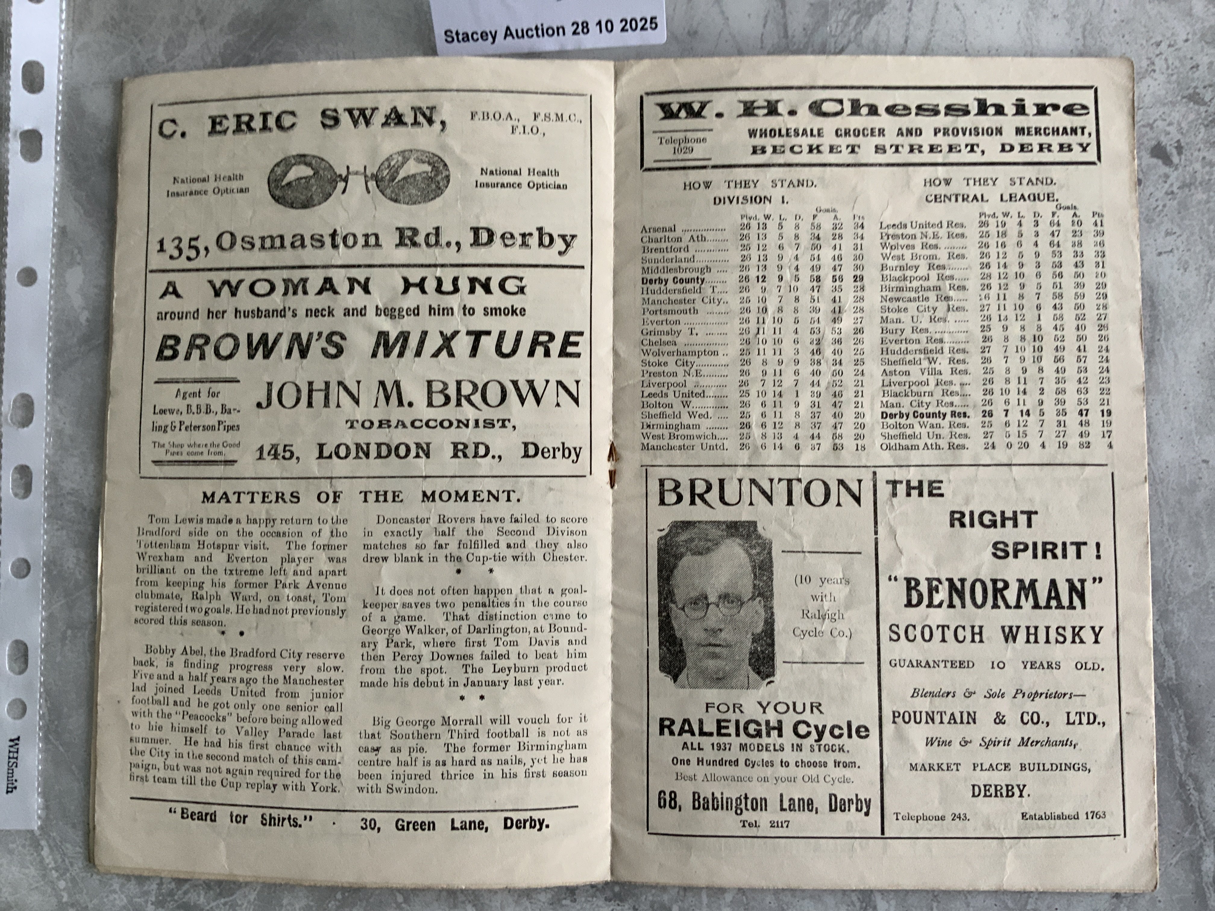 36/37 Derby County v Brentford Football Programme: FA Cup match in good condition with no team changes.