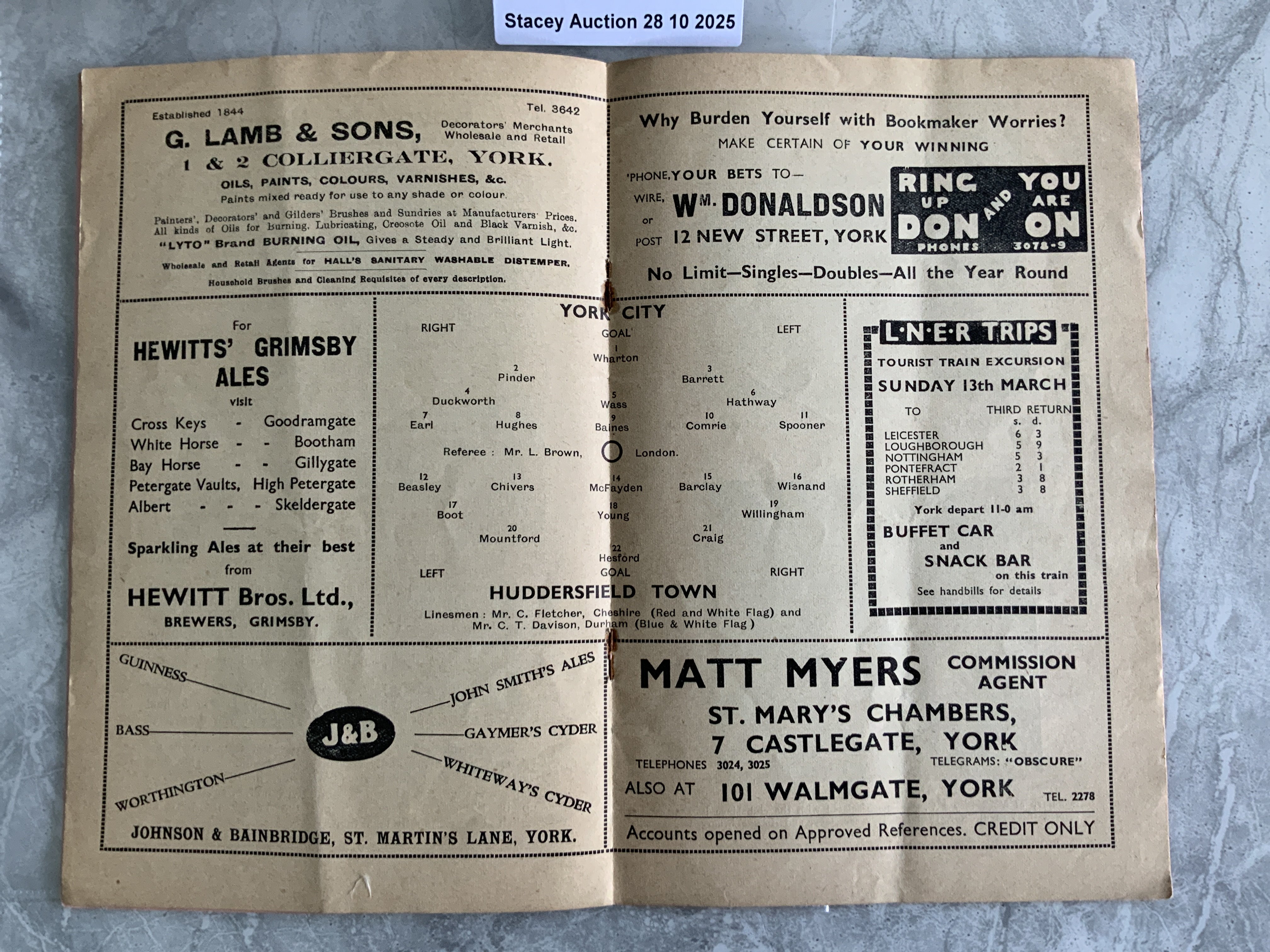 37/38 York City v Huddersfield Town Football Programme: FA Cup match in good condition with no team changes. Fold. Rusty staples holding firm. Huddersfield got to the final.