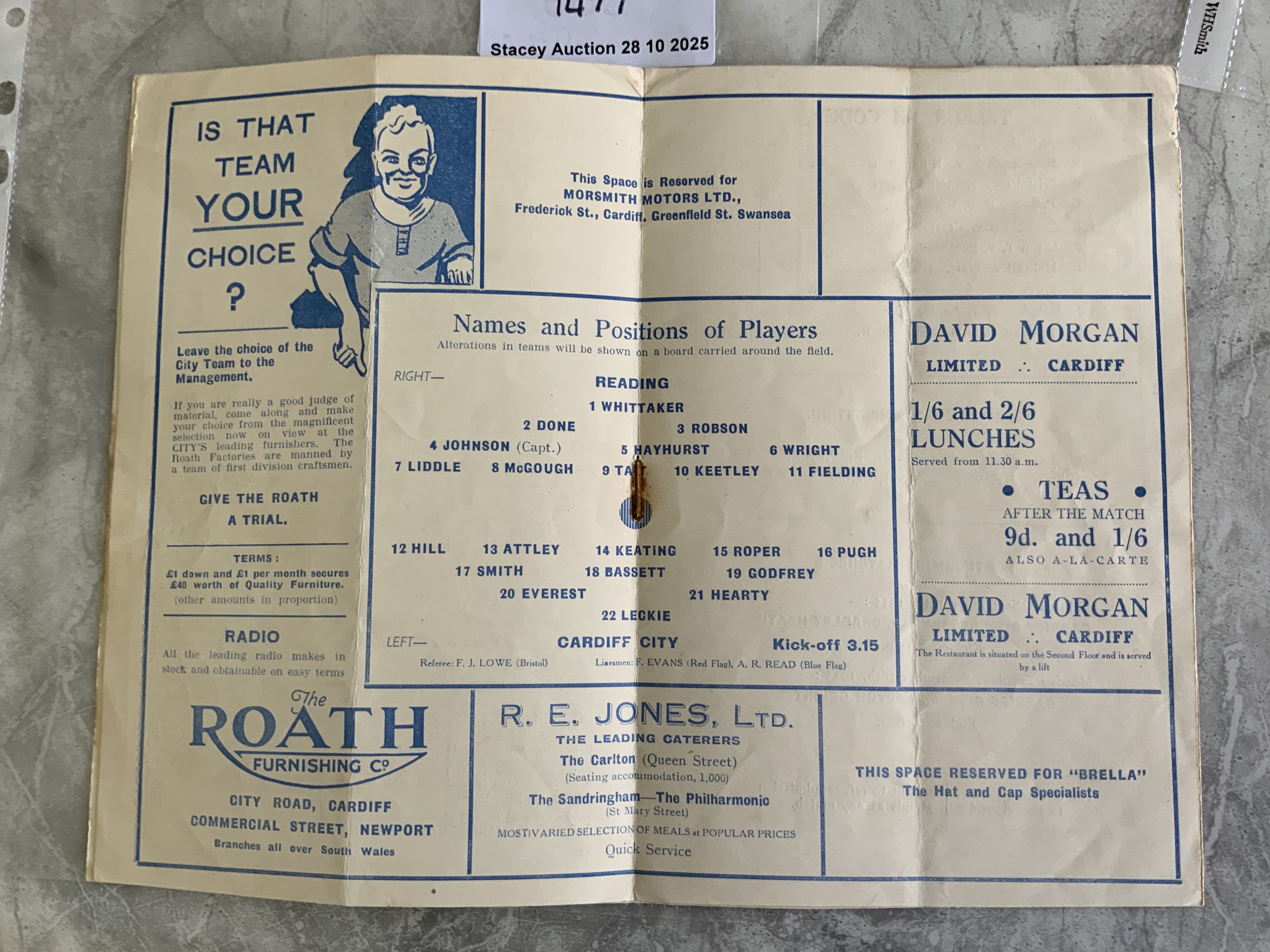 35/36 Cardiff City v Reading Football Programme: 3rd Division South match in good condition with no team changes. Rusty staple holding firm. Fold.