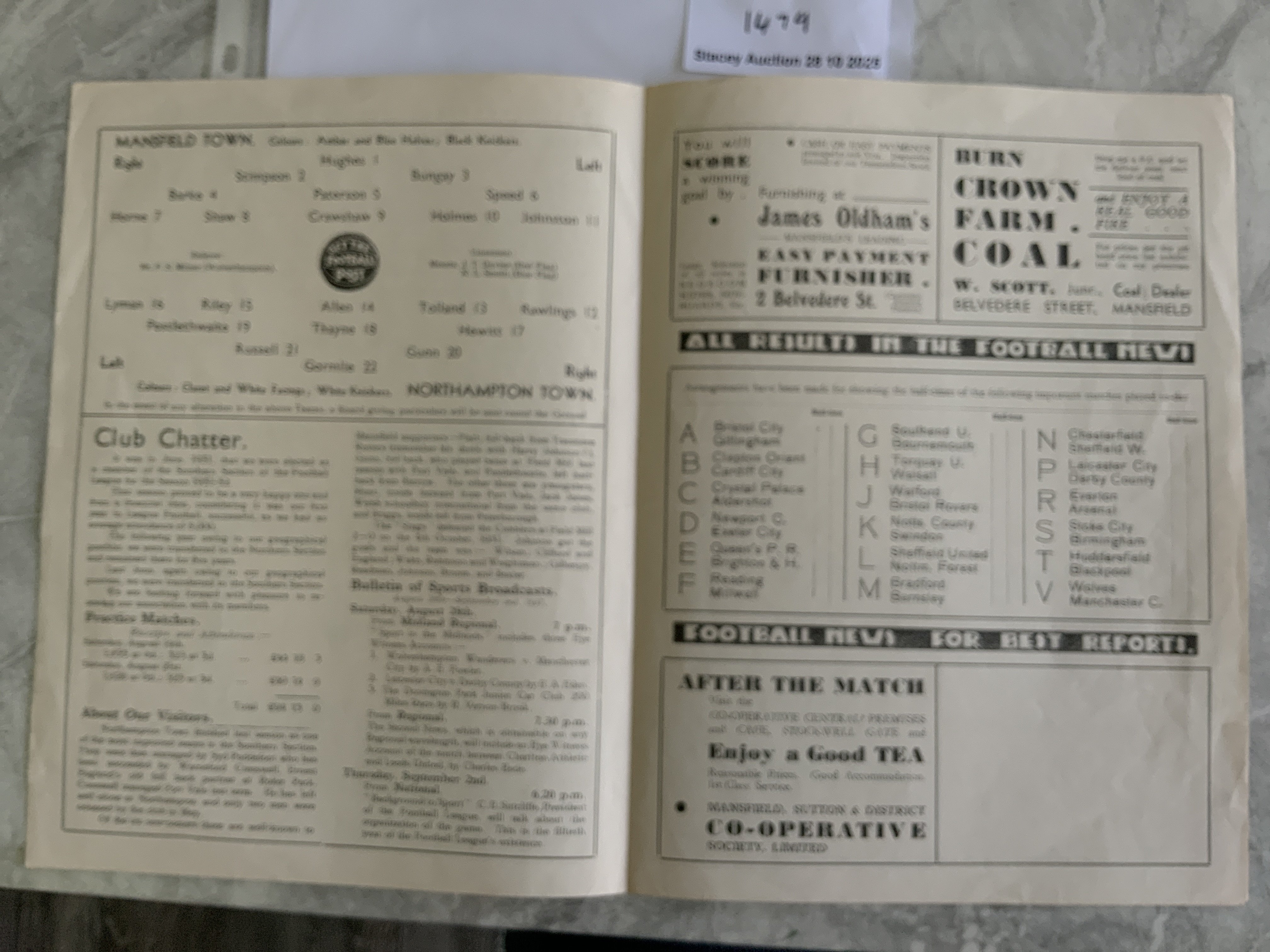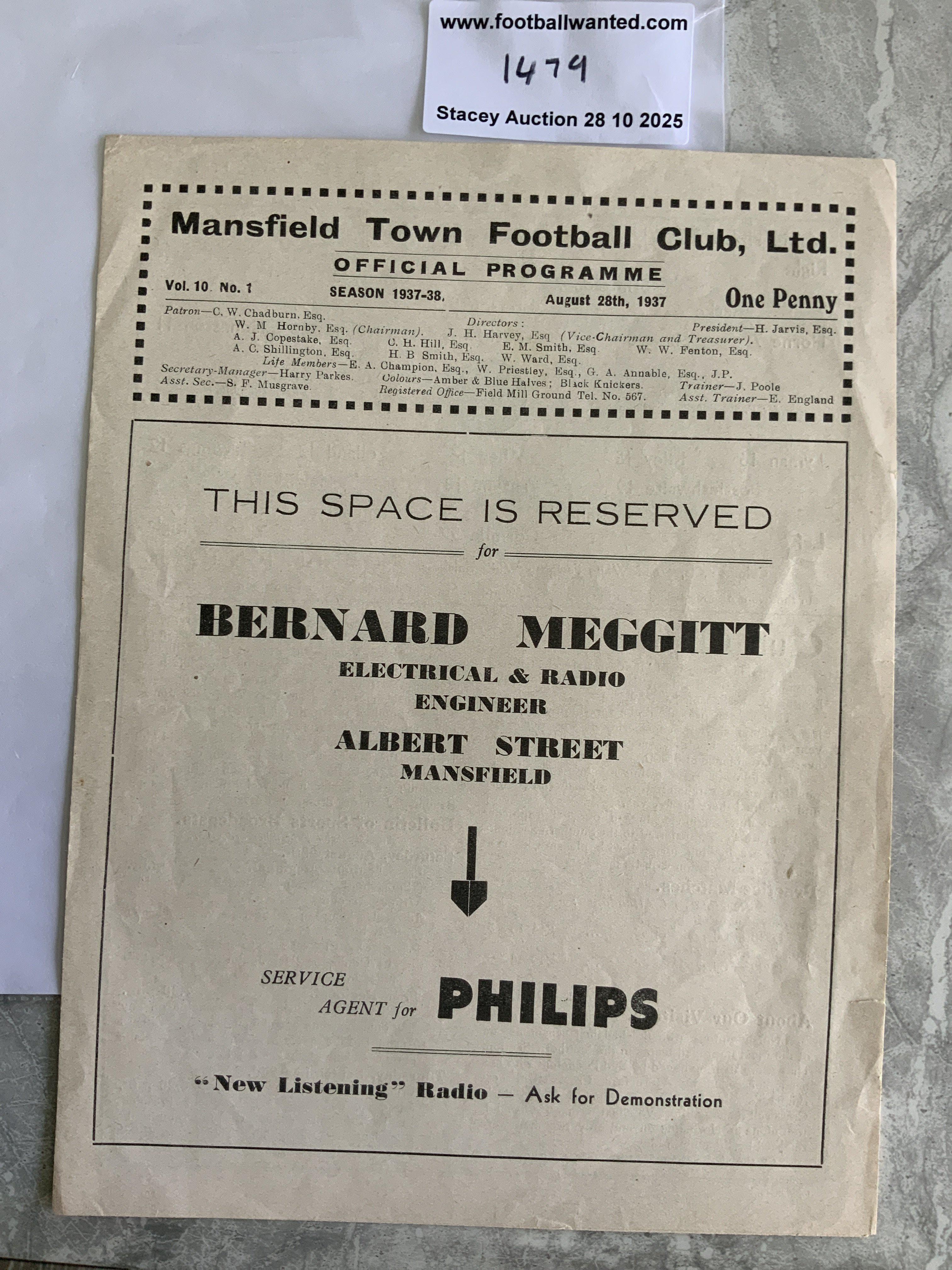 37/38 Mansfield Town v Northampton Football Programme: 3rd Division South match in excellent condition with no team changes.