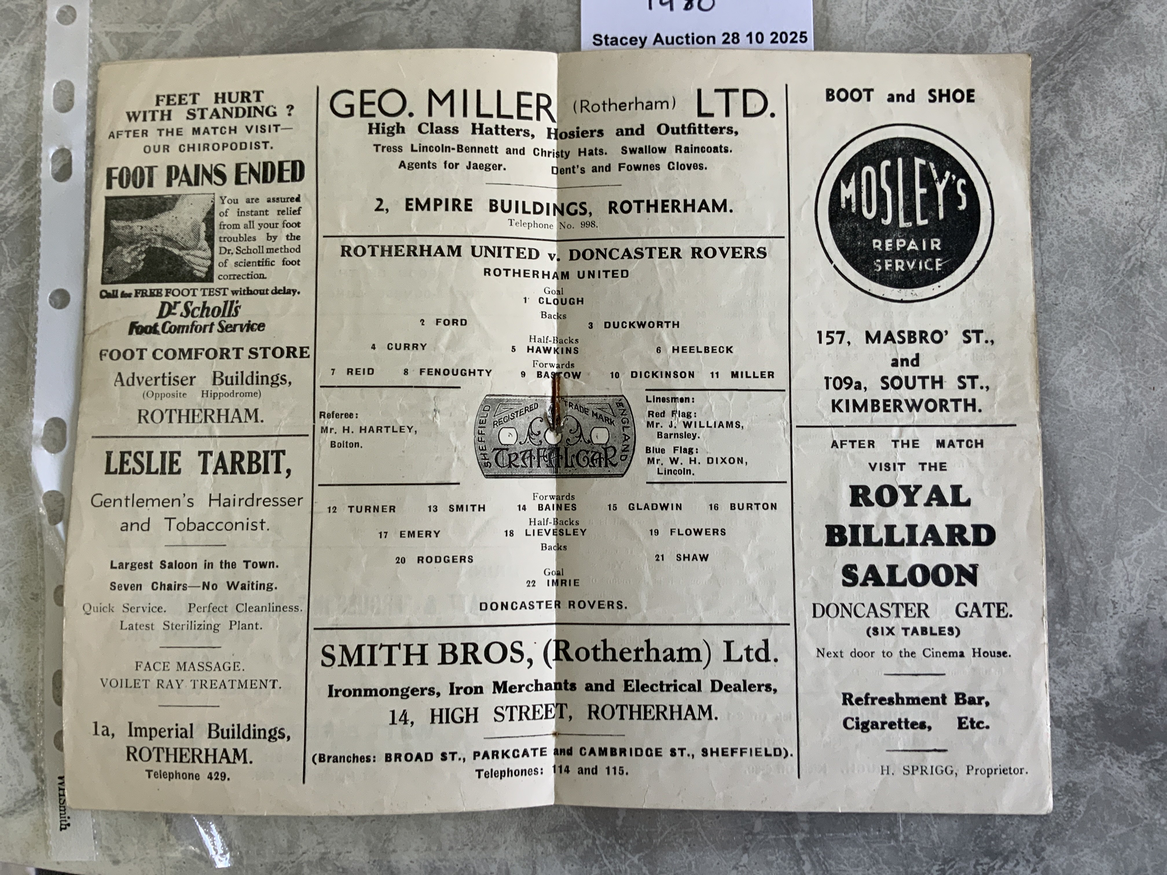 35/36 Rotherham v Doncaster Rovers Football Programme: 3rd Division North match in fair condition with no team changes. Heavy fold and half times filled out to rear.