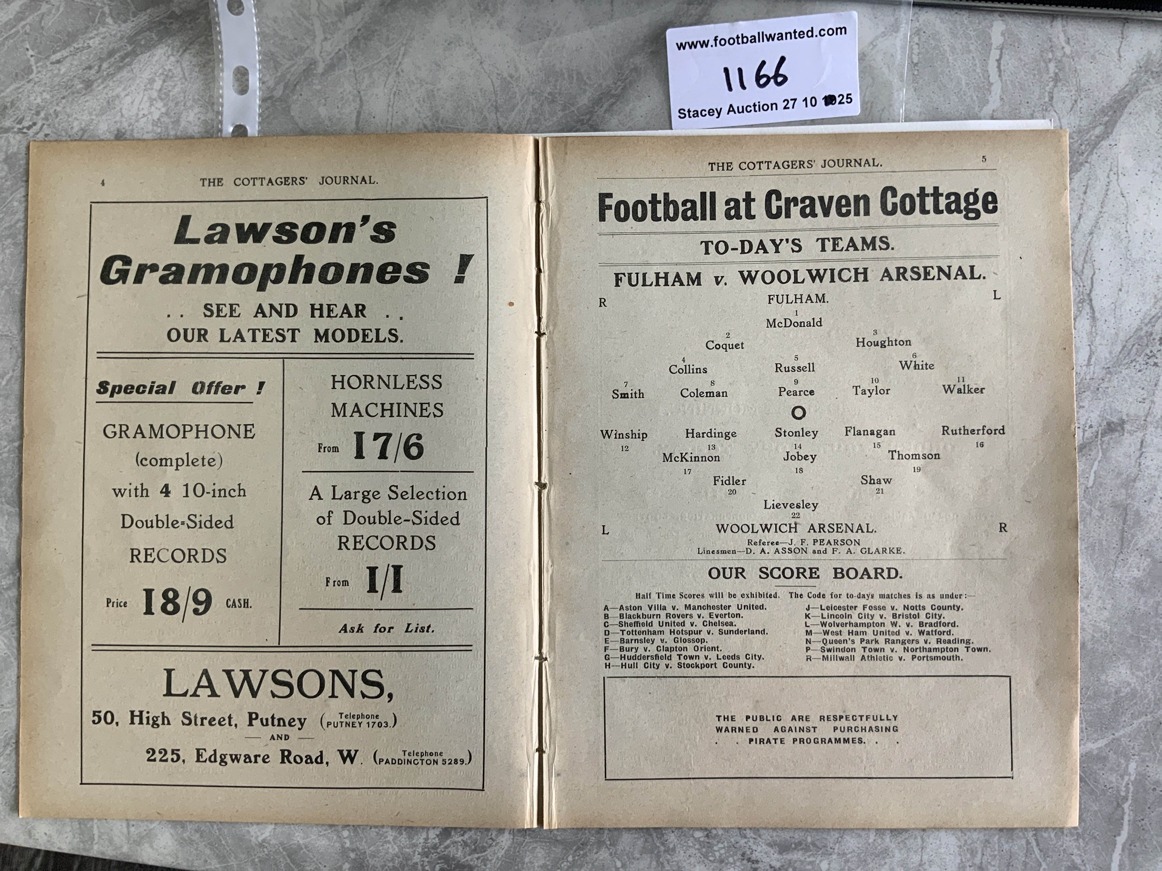 1913 - 1914 Fulham v Woolwich Arsenal Football Programme: First team 2nd Division League match with no team changes. Programme is ex bound lacking covers.