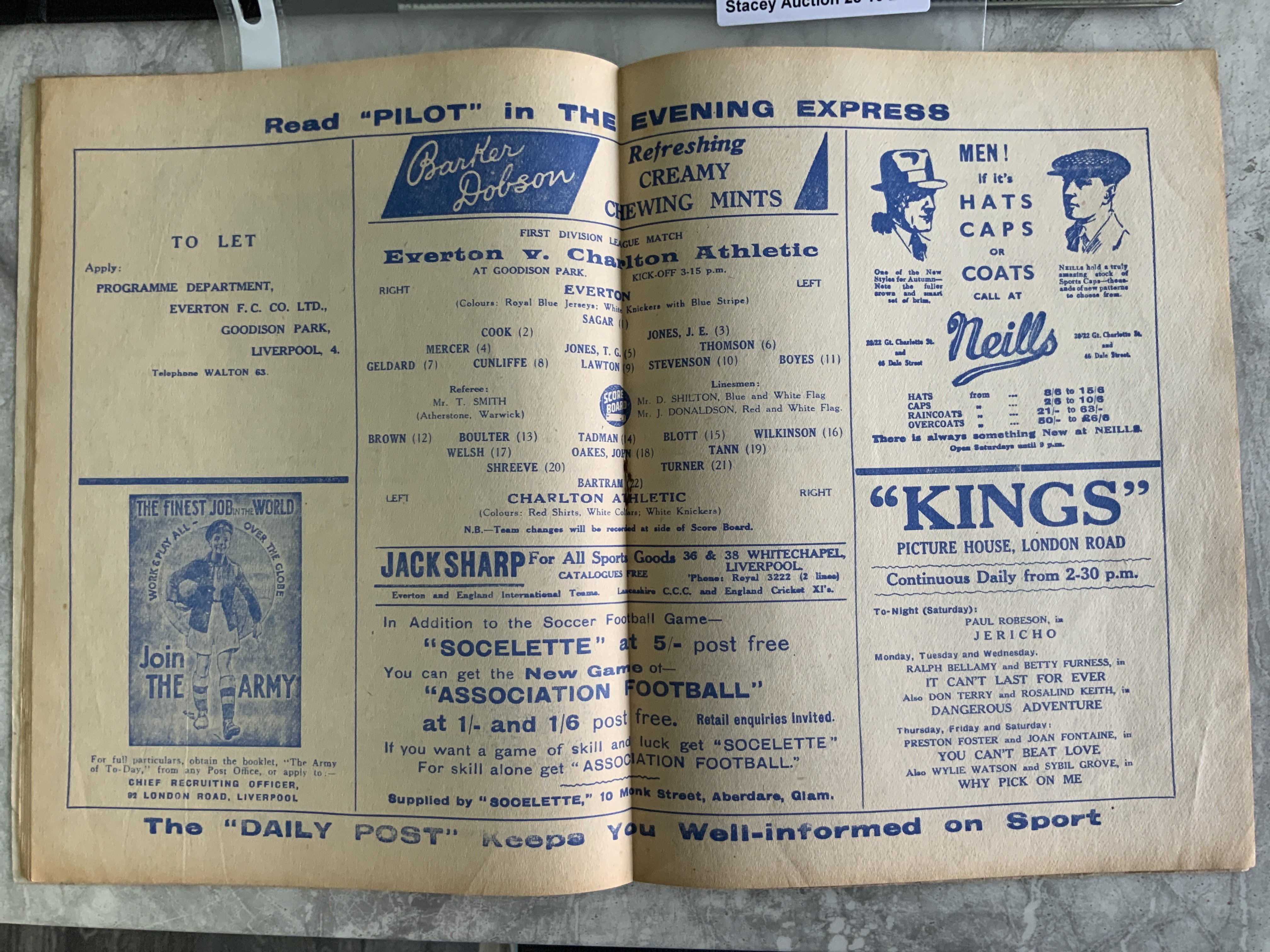 37/38 Everton v Charlton Football Programme: 1st Division match in good condition with no team changes.