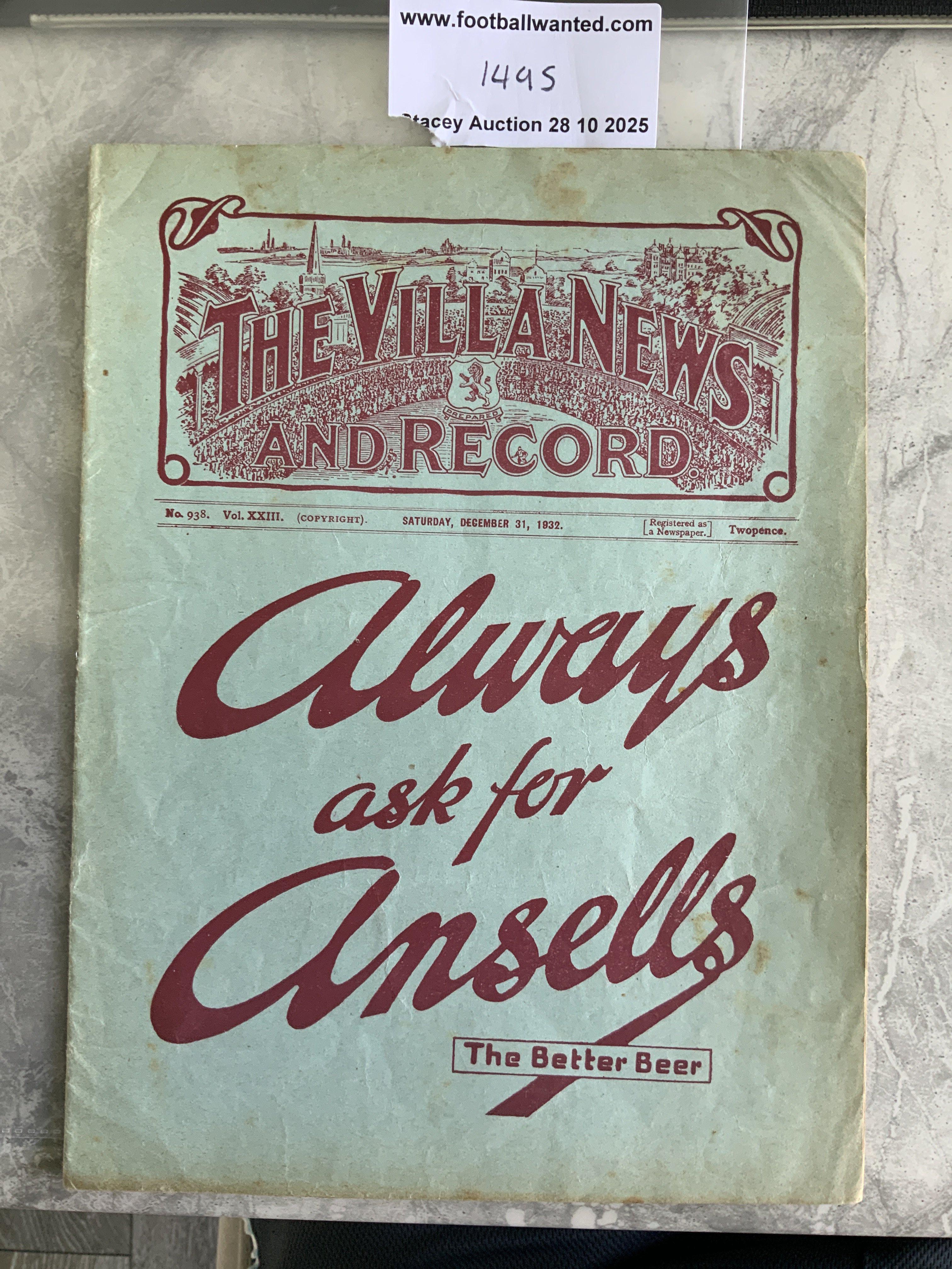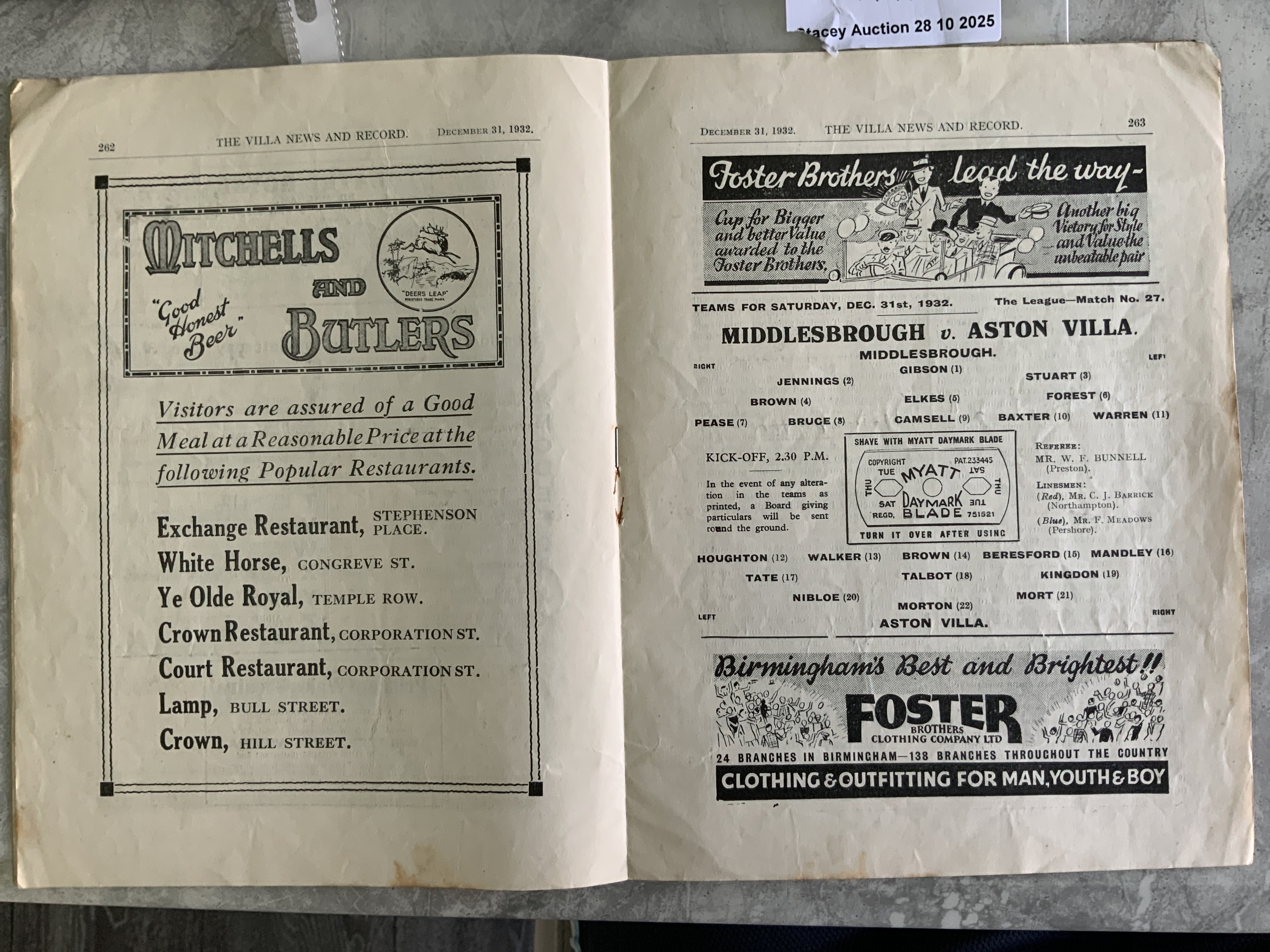32/33 Aston Villa v Middlesbrough Football Programme: 1st Division match in good condition with no team changes.