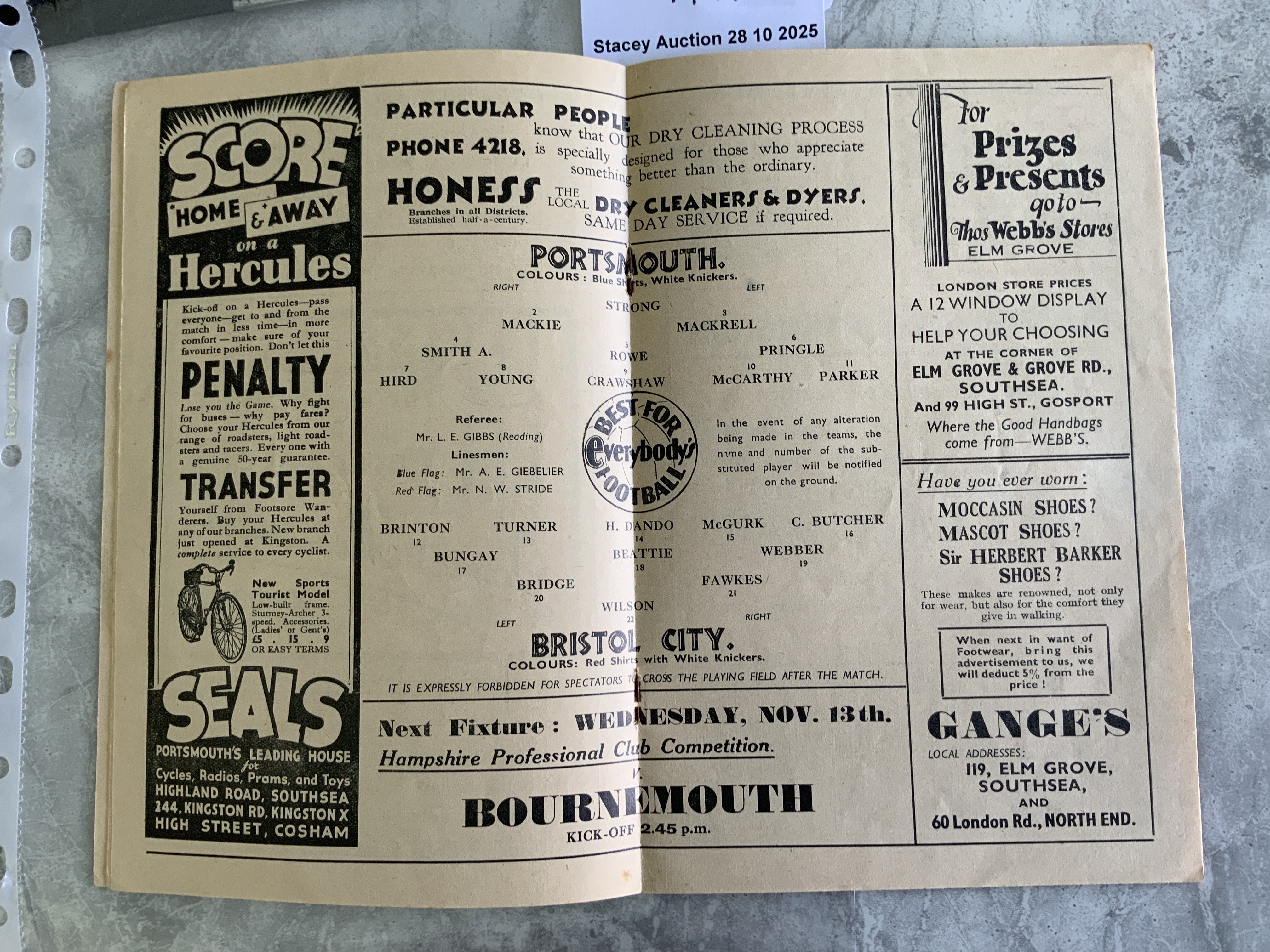 35/36 Portsmouth Reserves v Bristol City Football Programme: Reserve match in good condition with no team changes. Tear on spine.