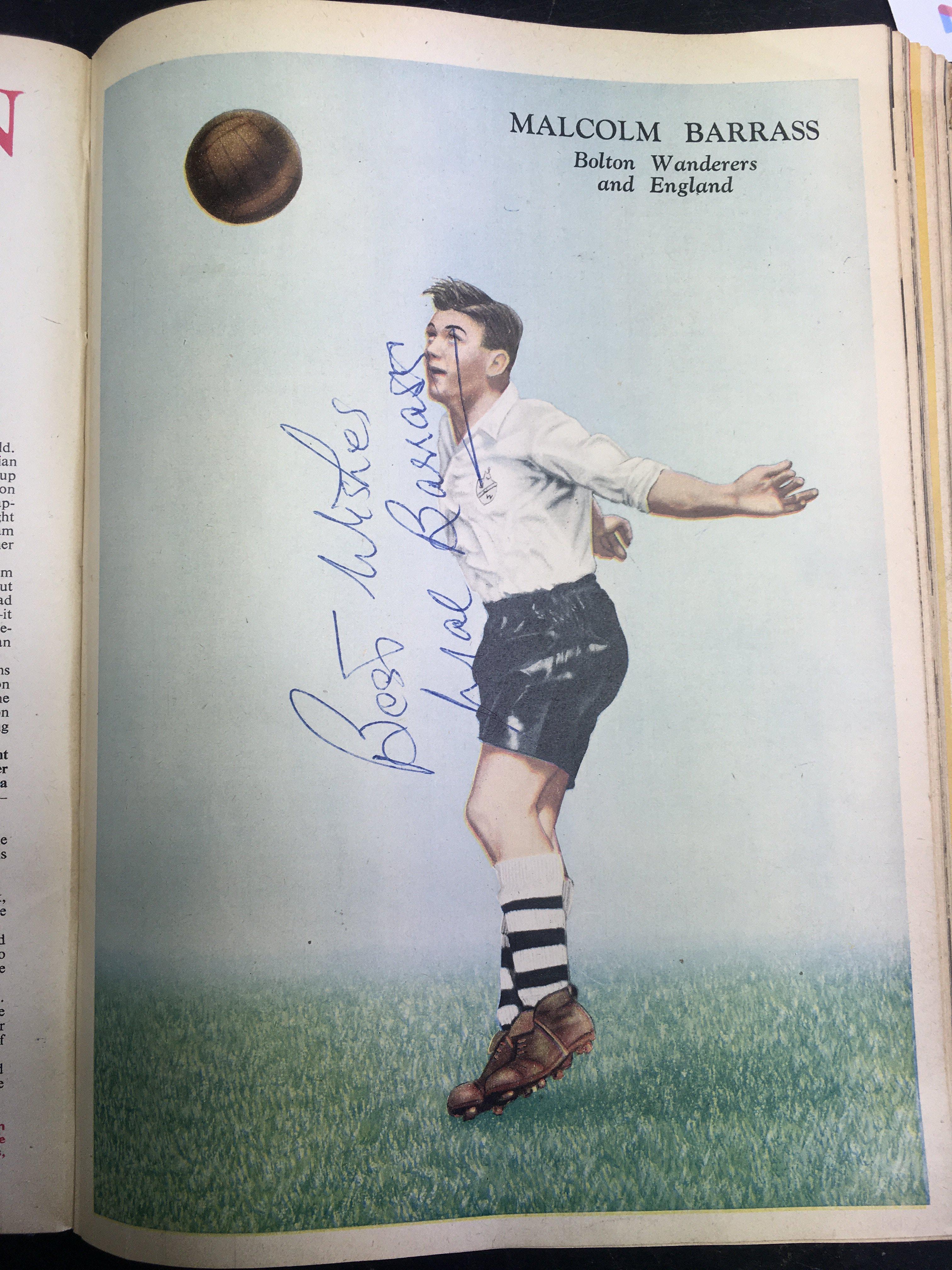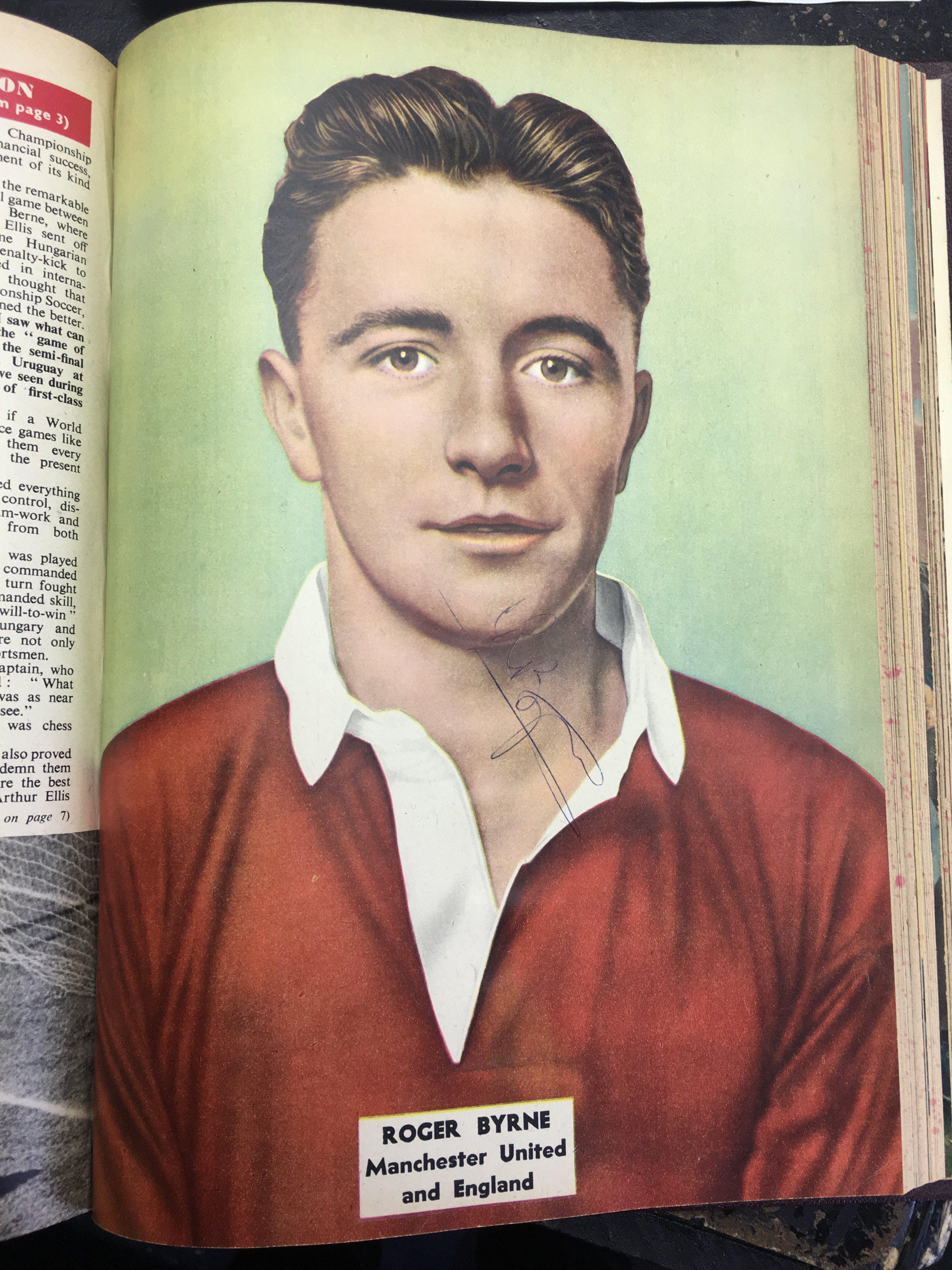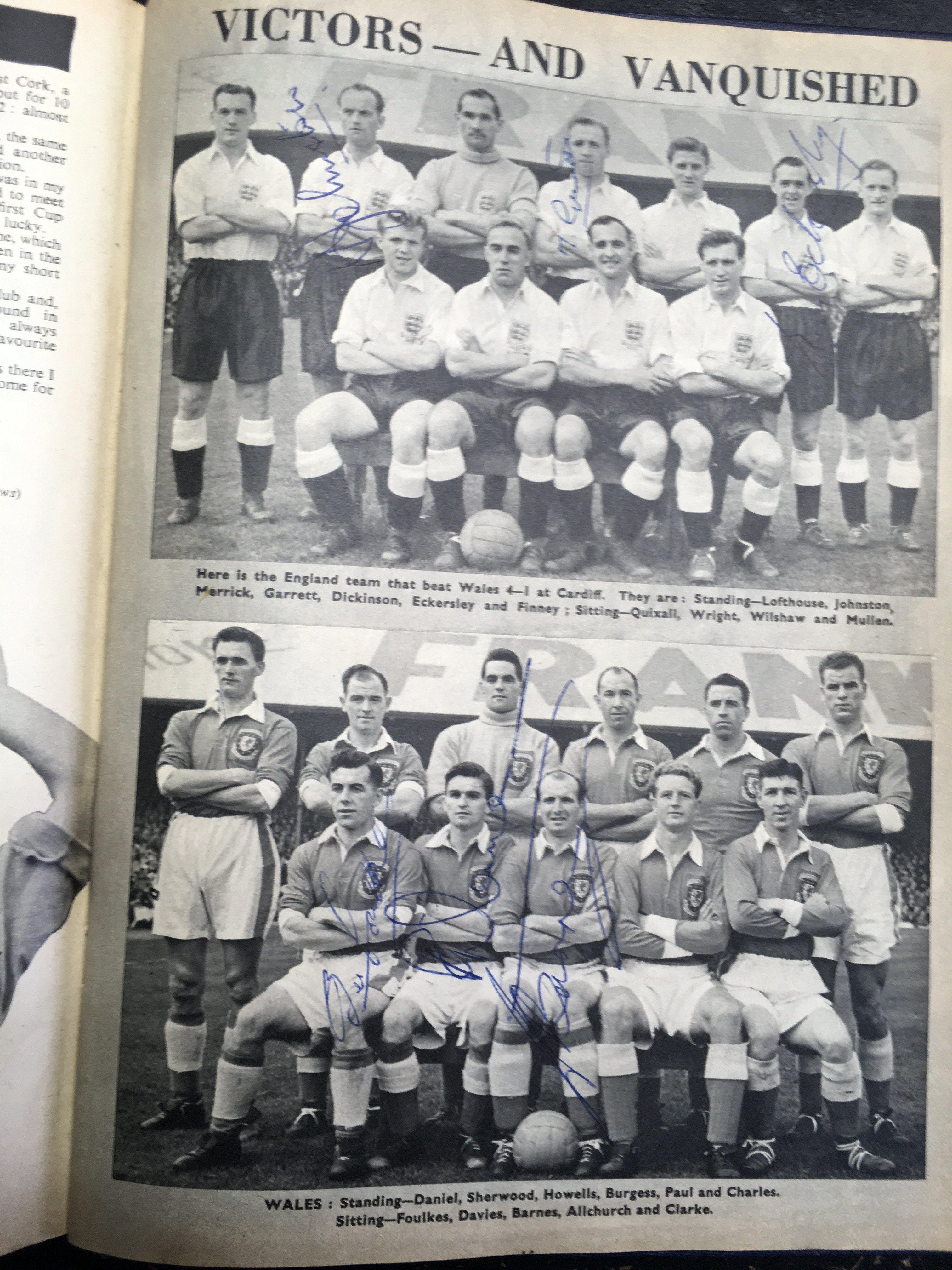 Charles Buchans 1950s Signed Bound Magazines: Two volumes from 1953 and 1954 with over 150 autographs on various size pictures. Includes Lawton Blanchflower Finney Mortensen Bartram and some Busby Babes including Edwards and Taylor. (2 volumes)