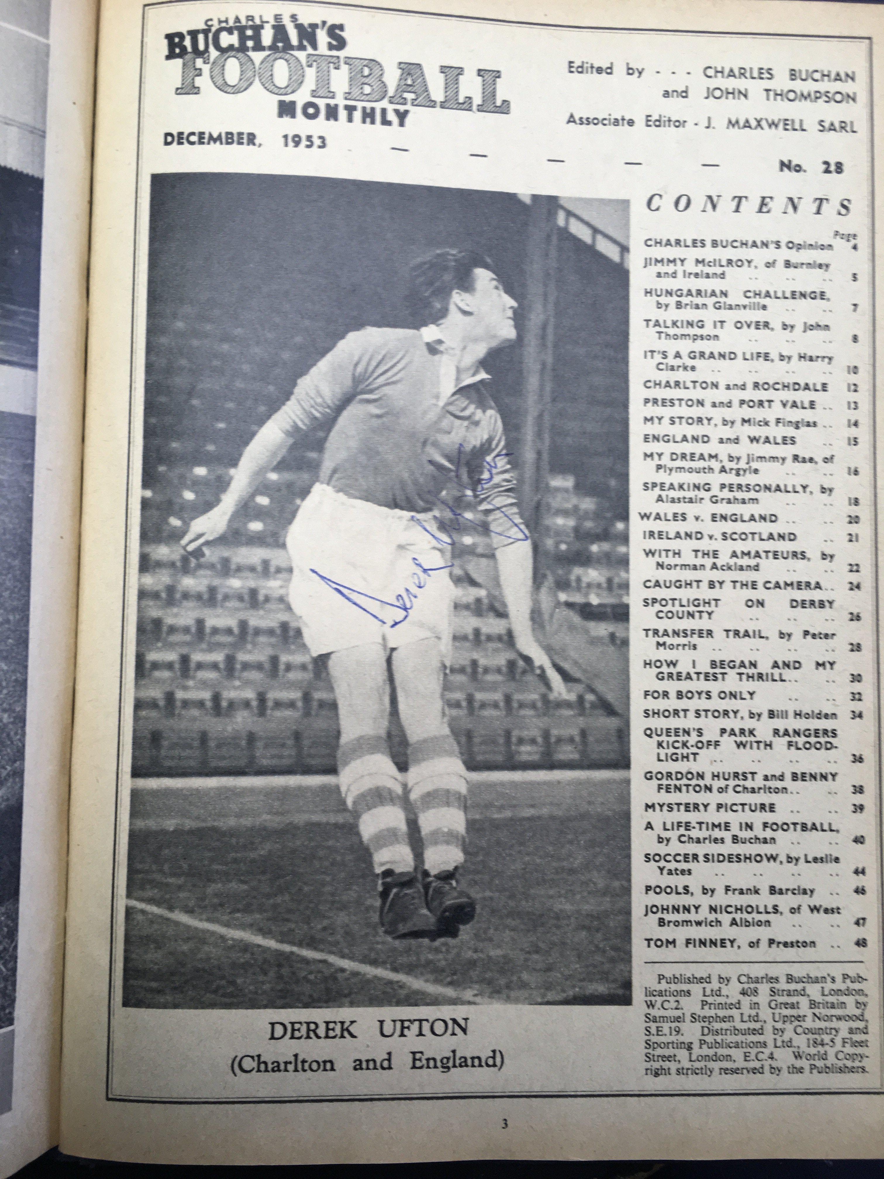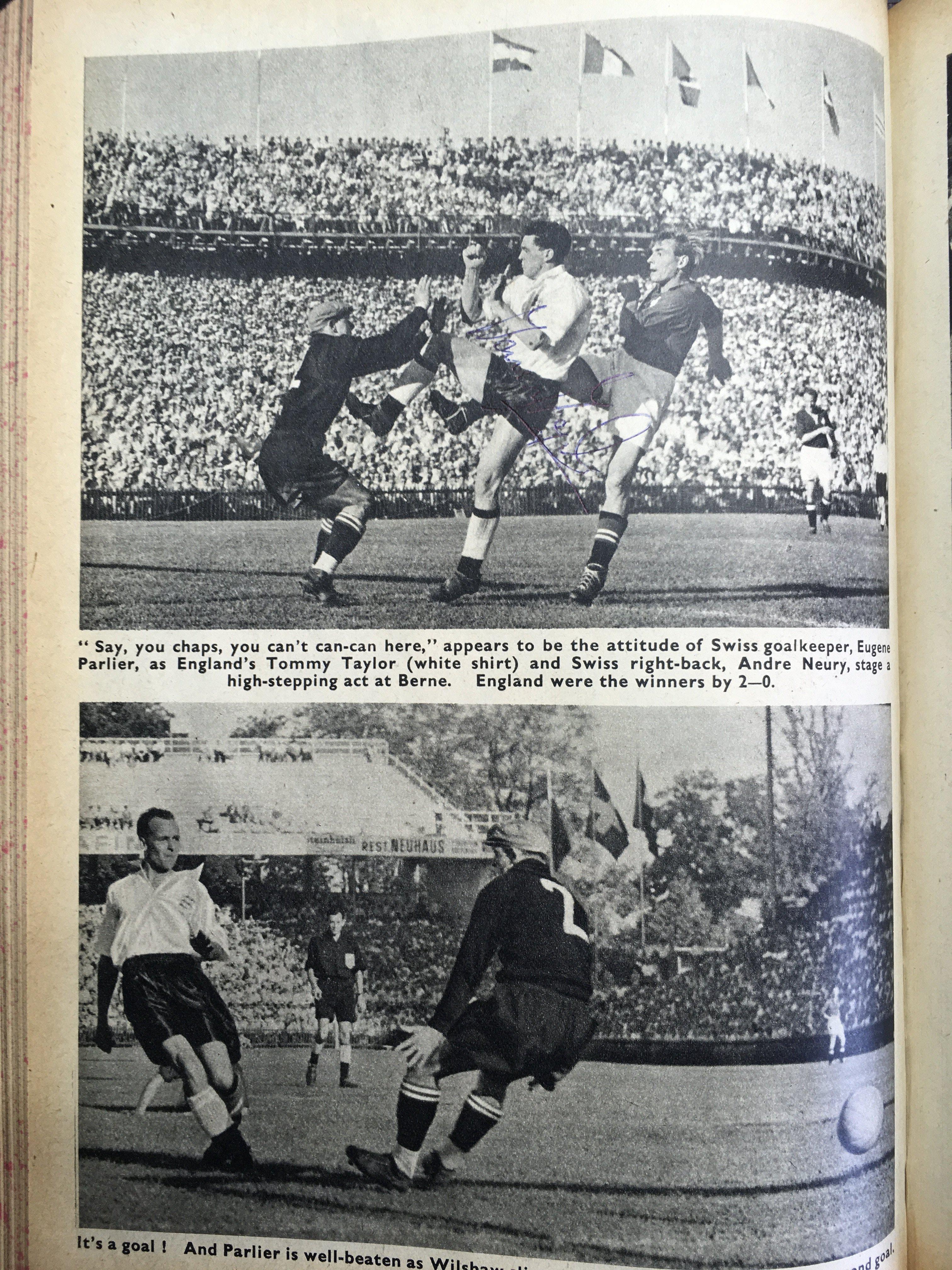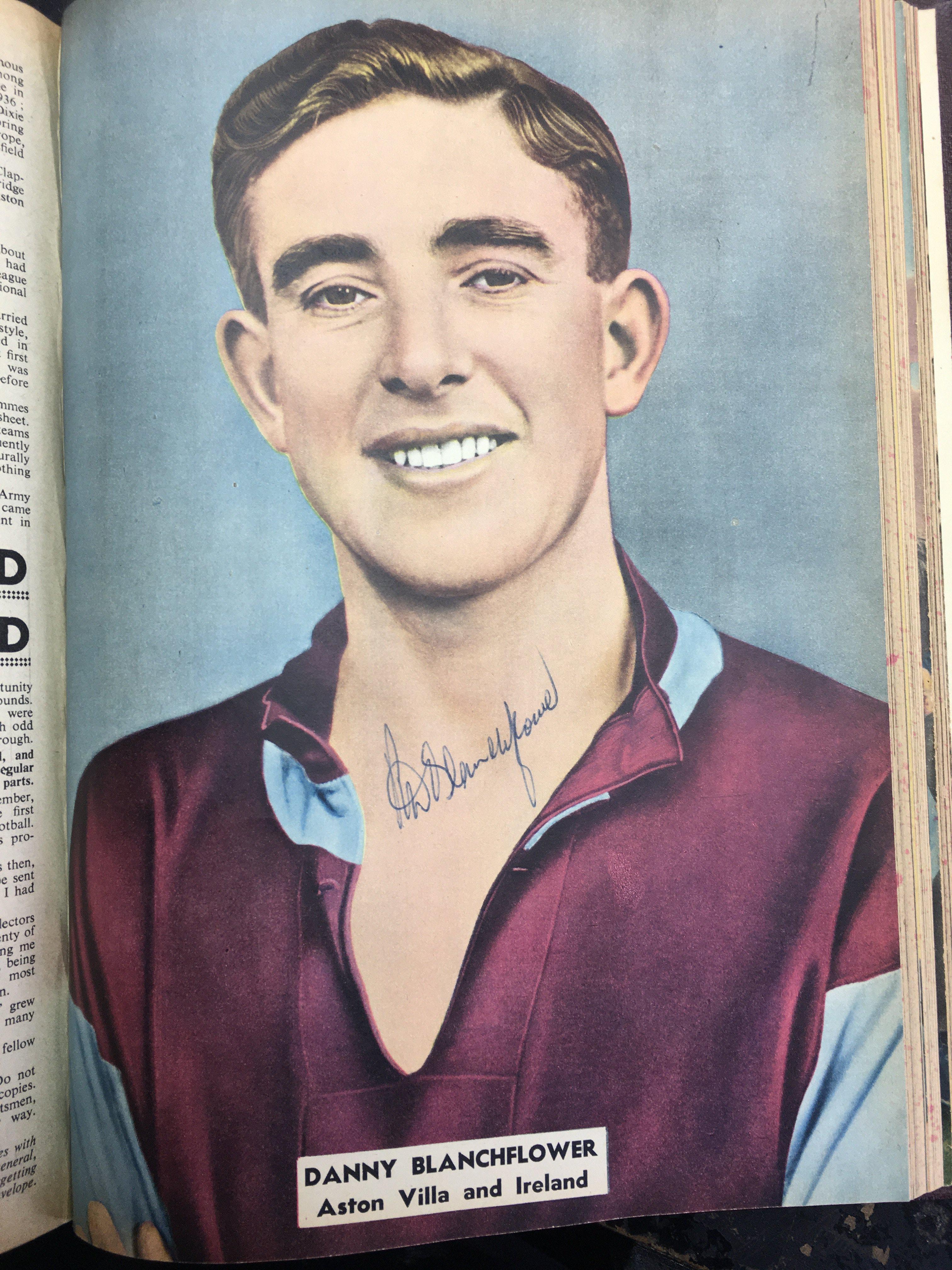 Charles Buchans 1950s Signed Bound Magazines: Two volumes from 1953 and 1954 with over 150 autographs on various size pictures. Includes Lawton Blanchflower Finney Mortensen Bartram and some Busby Babes including Edwards and Taylor. (2 volumes)