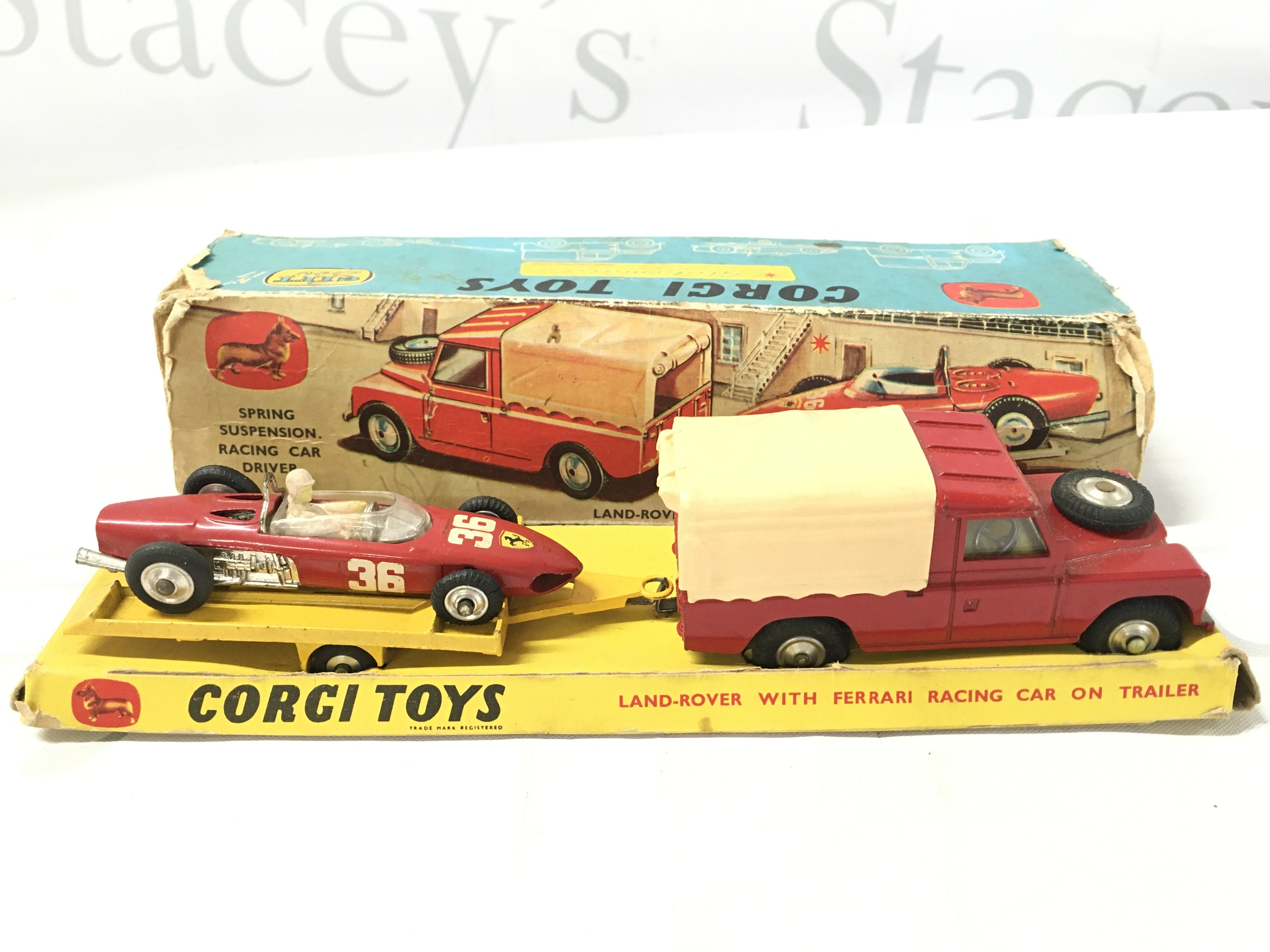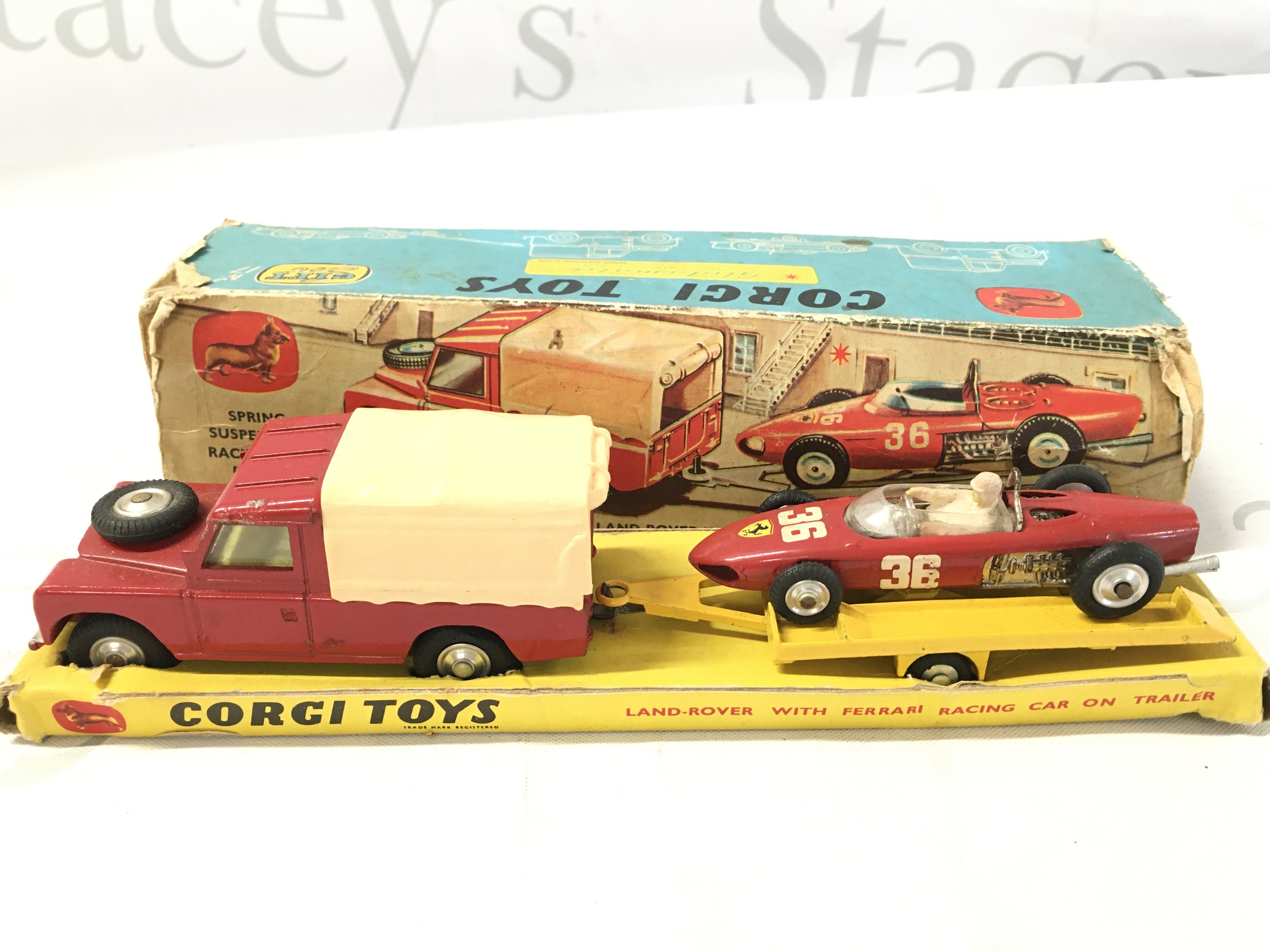 A Boxed Corgi Gift Set #17 Land-Rover With Ferrari Racing Car On Trailer. Box Is Worn. No Reserve.
