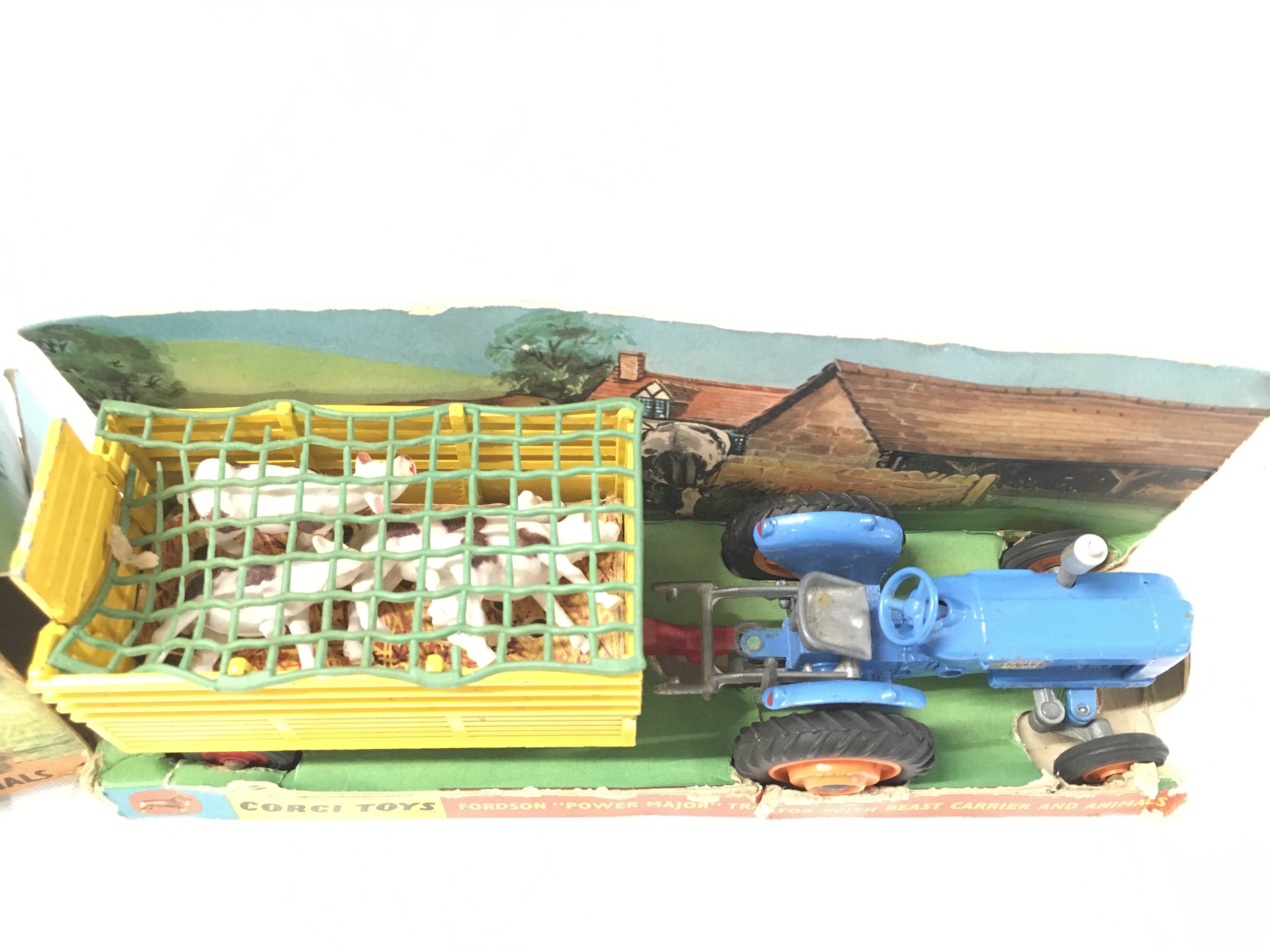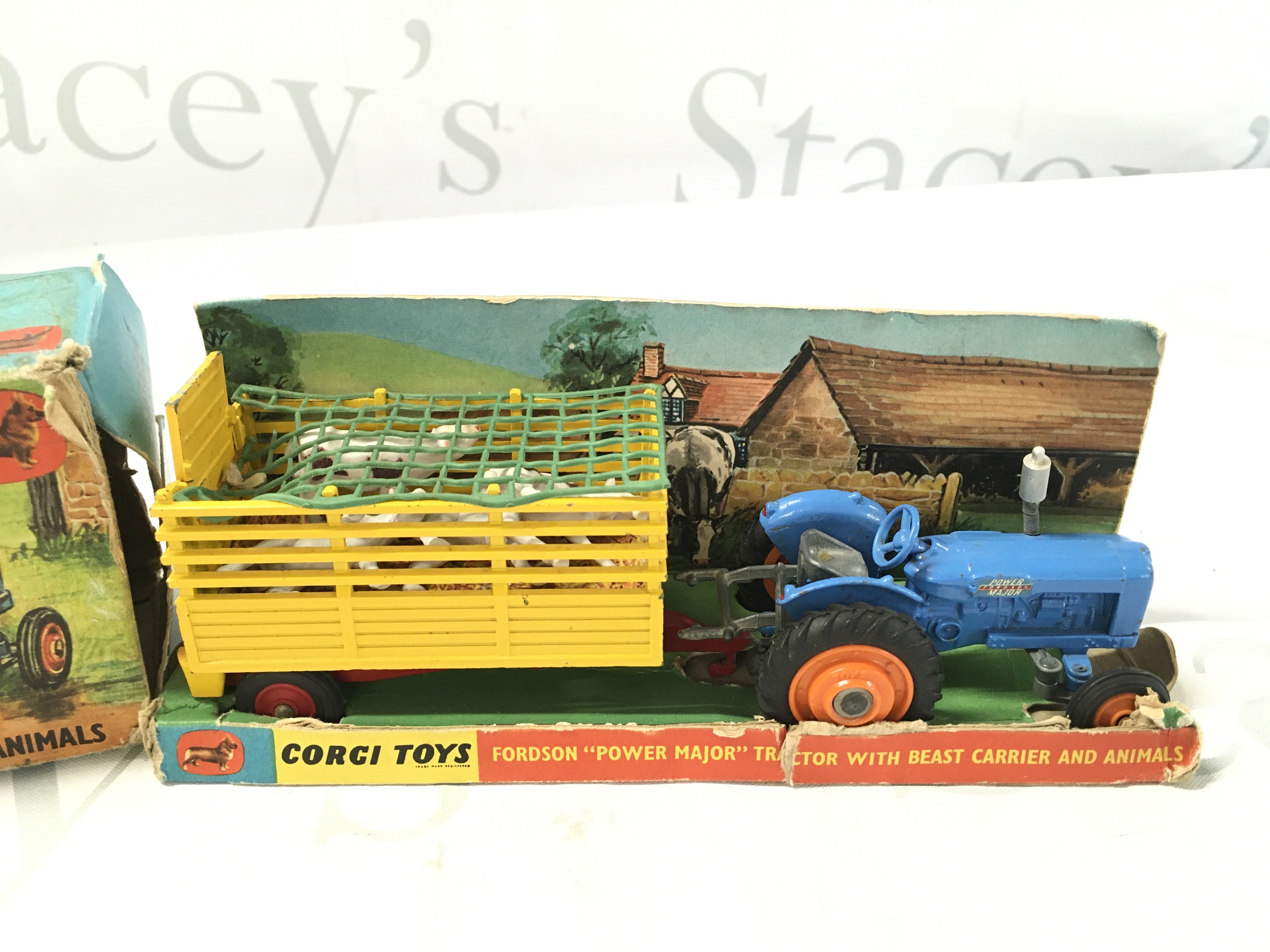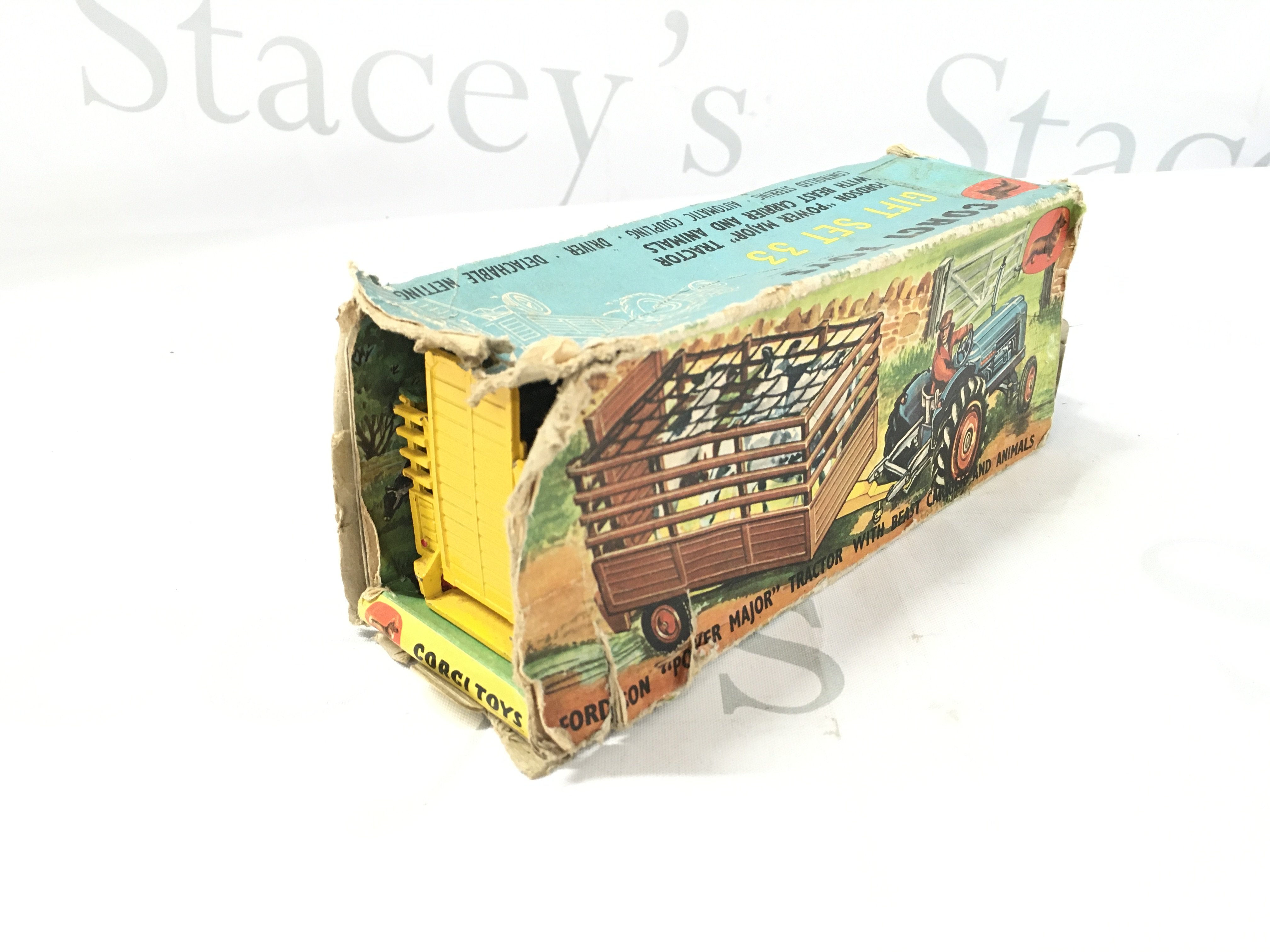 A Boxed Corgi Gift Set #33 A Fordson Rower Major Tractor With Beast Carrier And Animals. Box Is Worn. No Reserve.