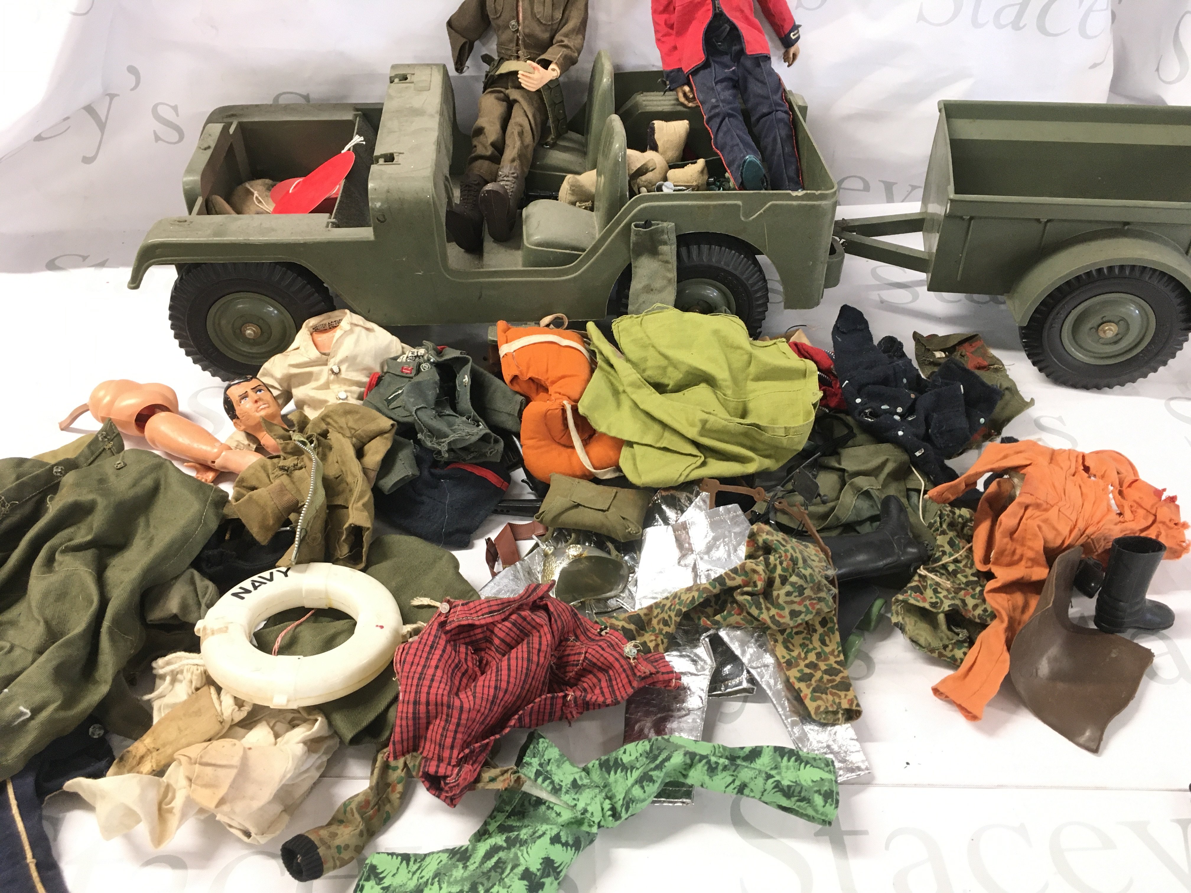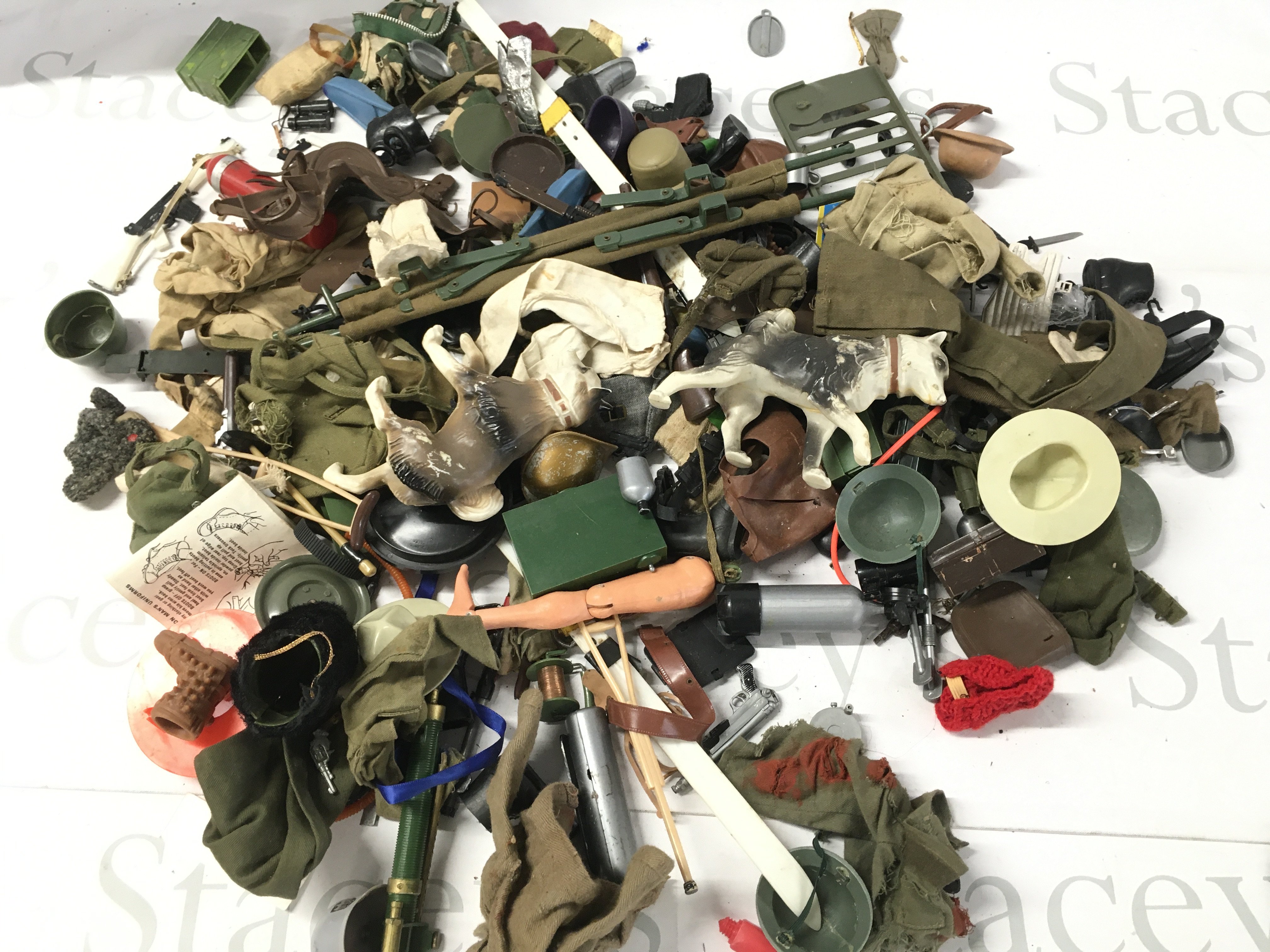 A Collection of Playworn Action Men And Accessories. Including American Figure.