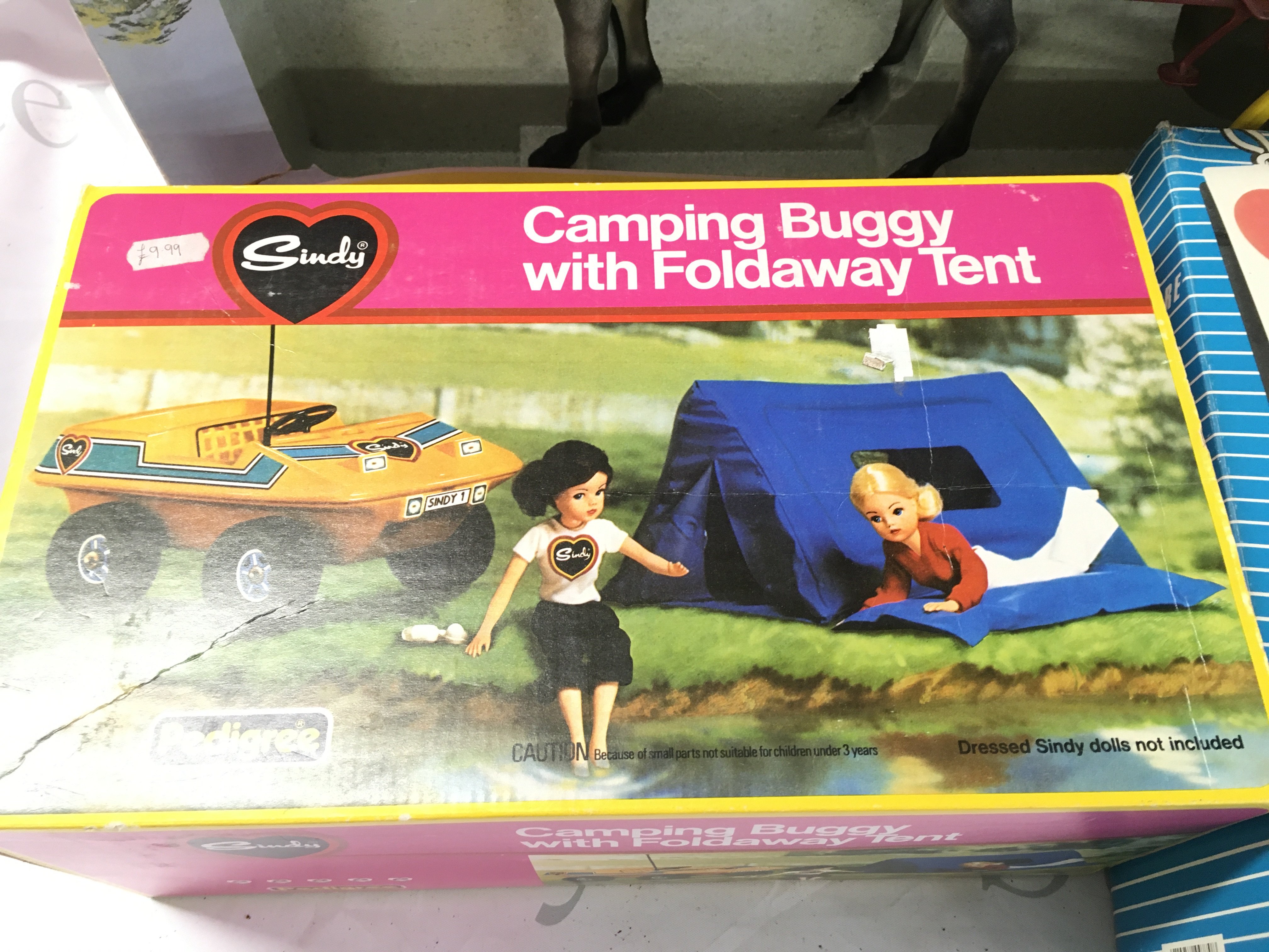 A Large Collection of Boxed And Loose Sindy Furniture. Vehicles and Accessories including A Sindy Super Home. This Lot cannot Be Posted.(7).