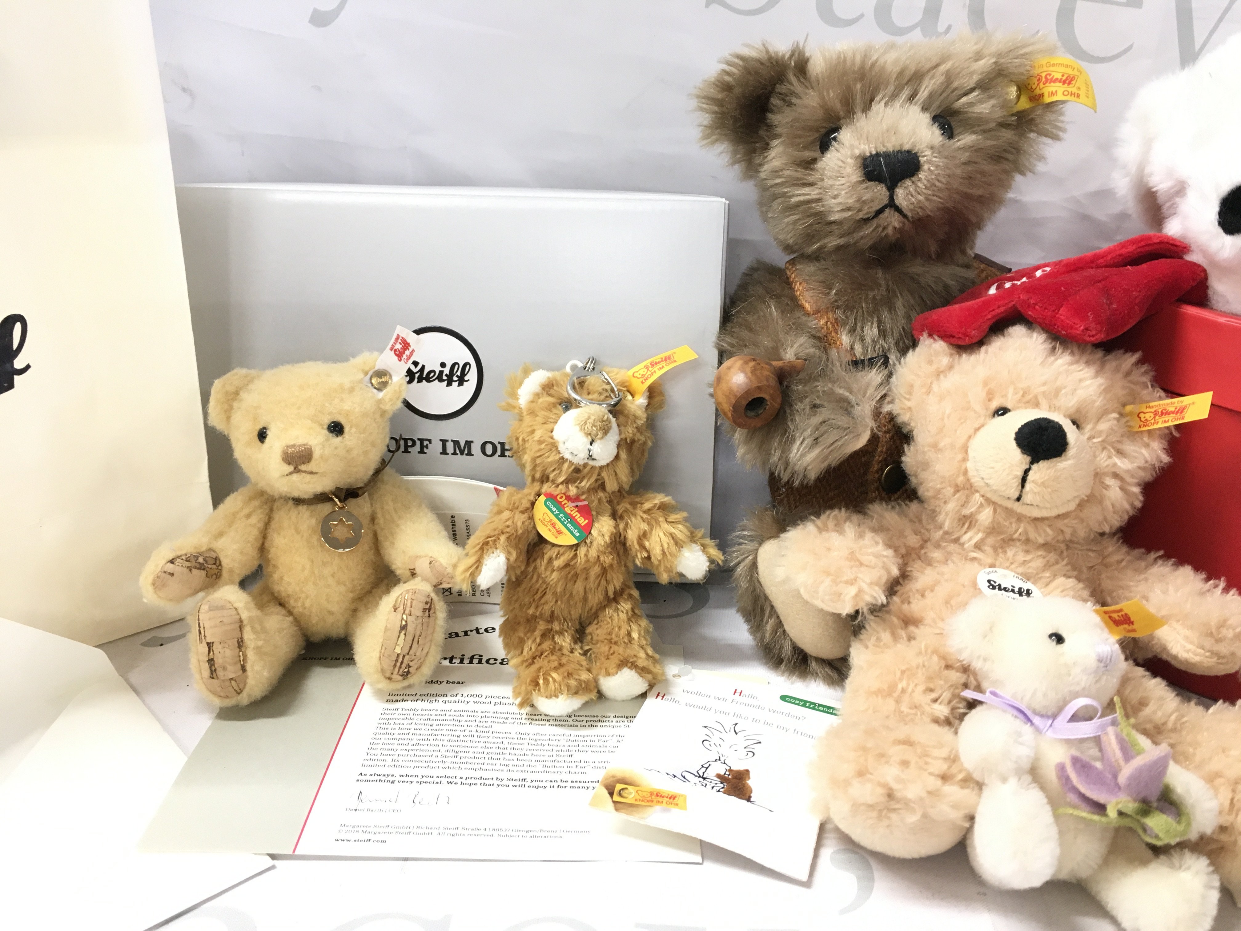 A Collection of Steiff Bears Including Winter Bear. Stina Teddy Bear. Coca Cola. Etc. No Reserve.