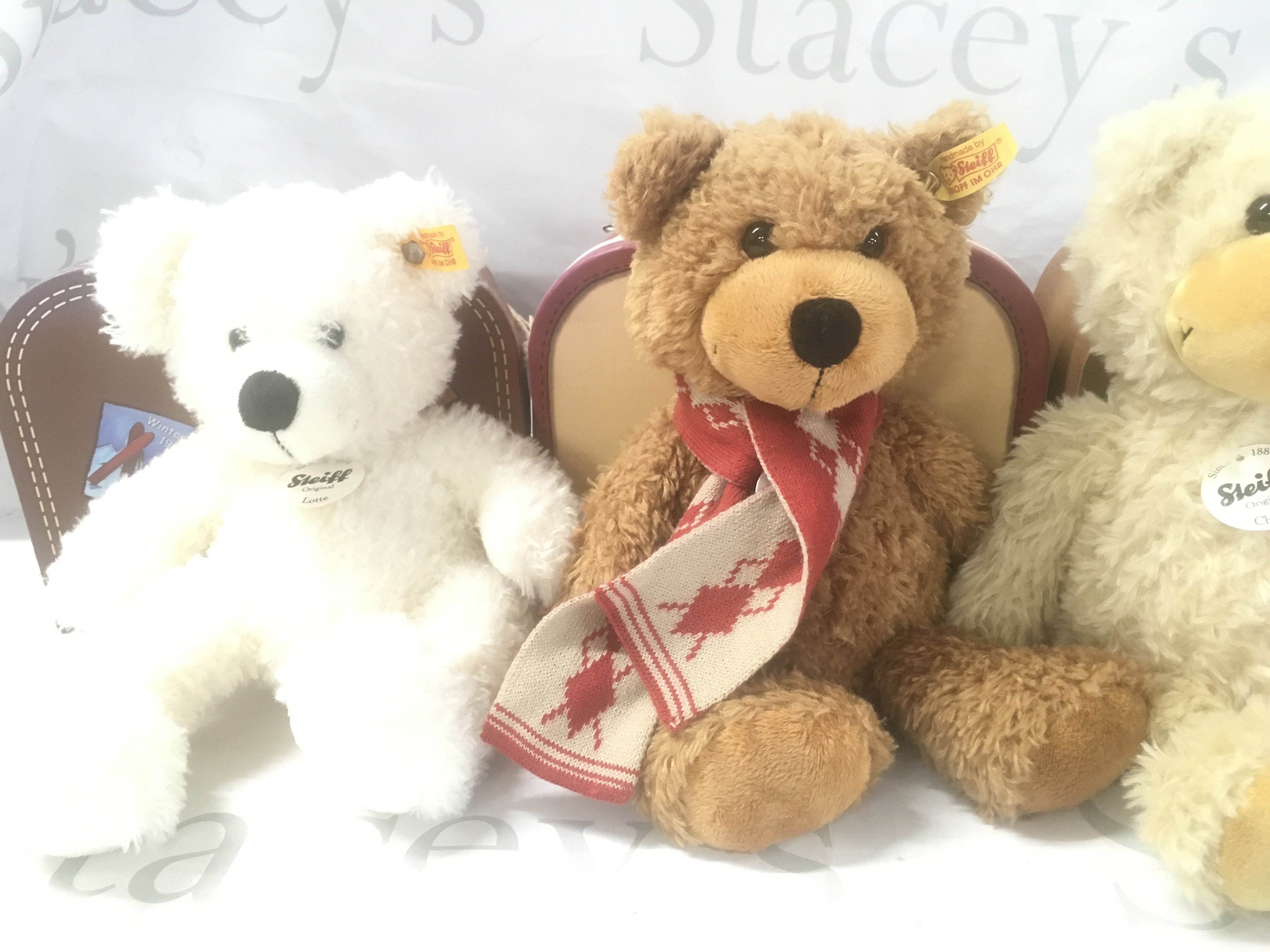 4 X Boxed Steiff Bears With Suitcases. Lotte. 2X Charley’s And Fynn. No Reserve.