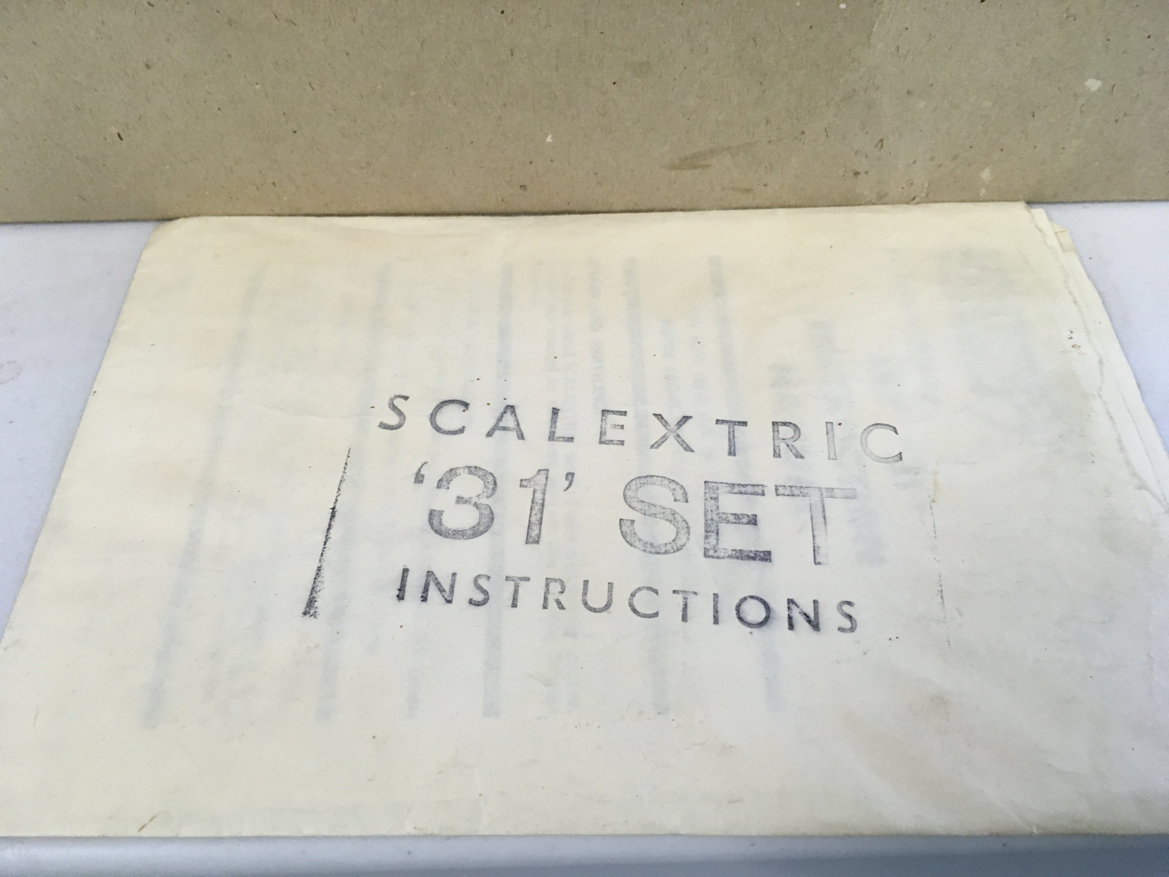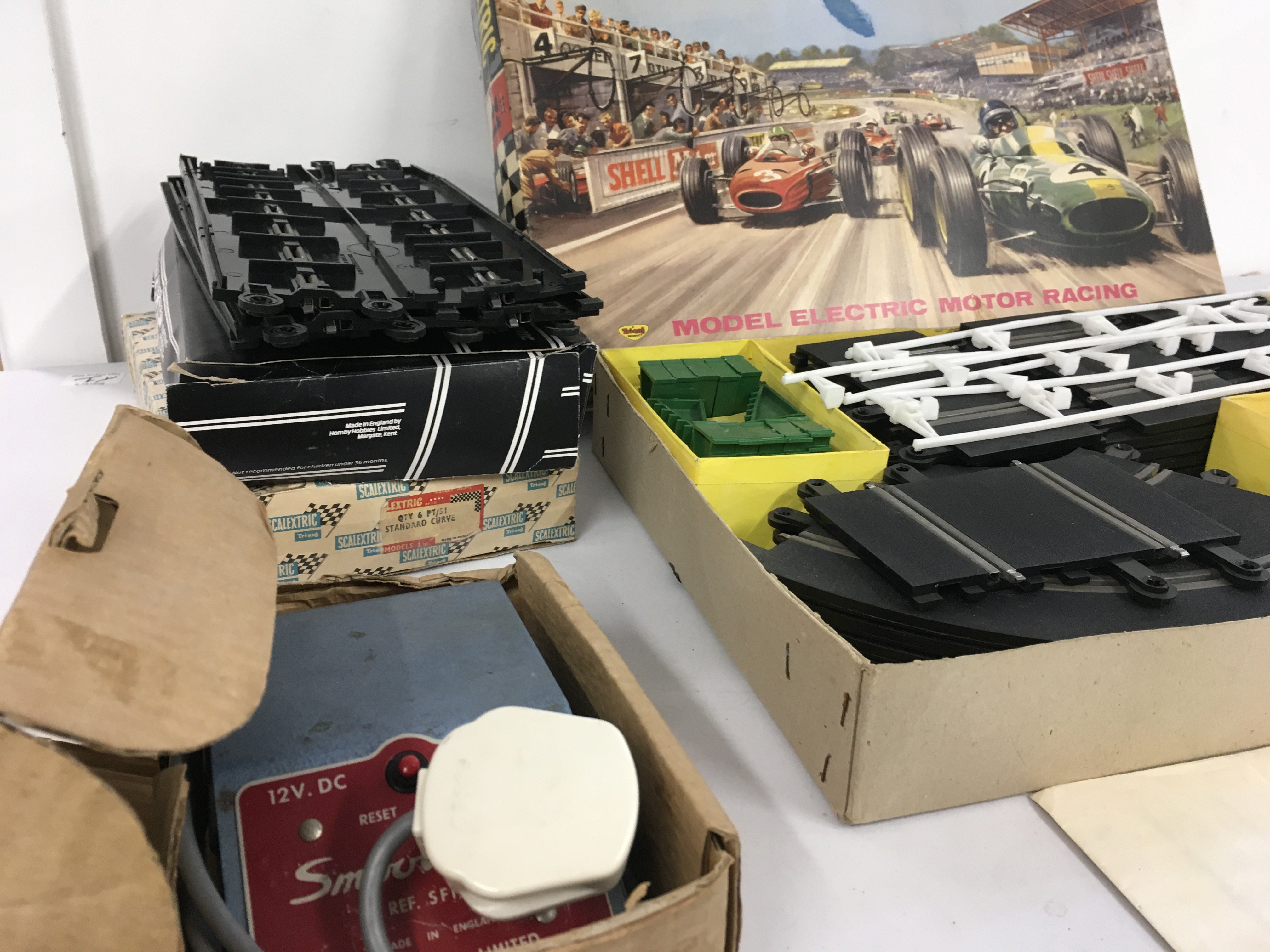A boxed Scalextric car racing set No.31. Includes extra track and transformer.