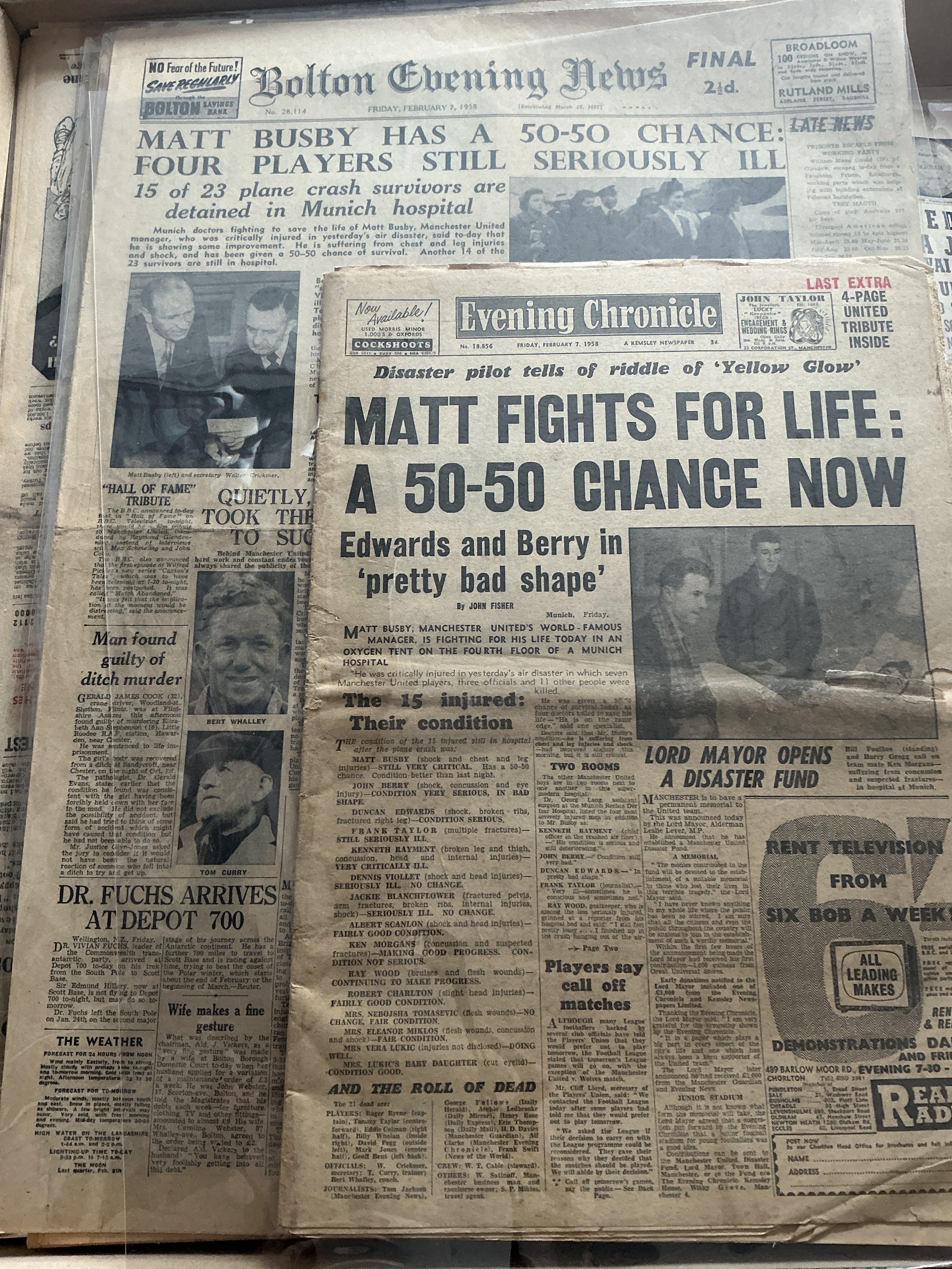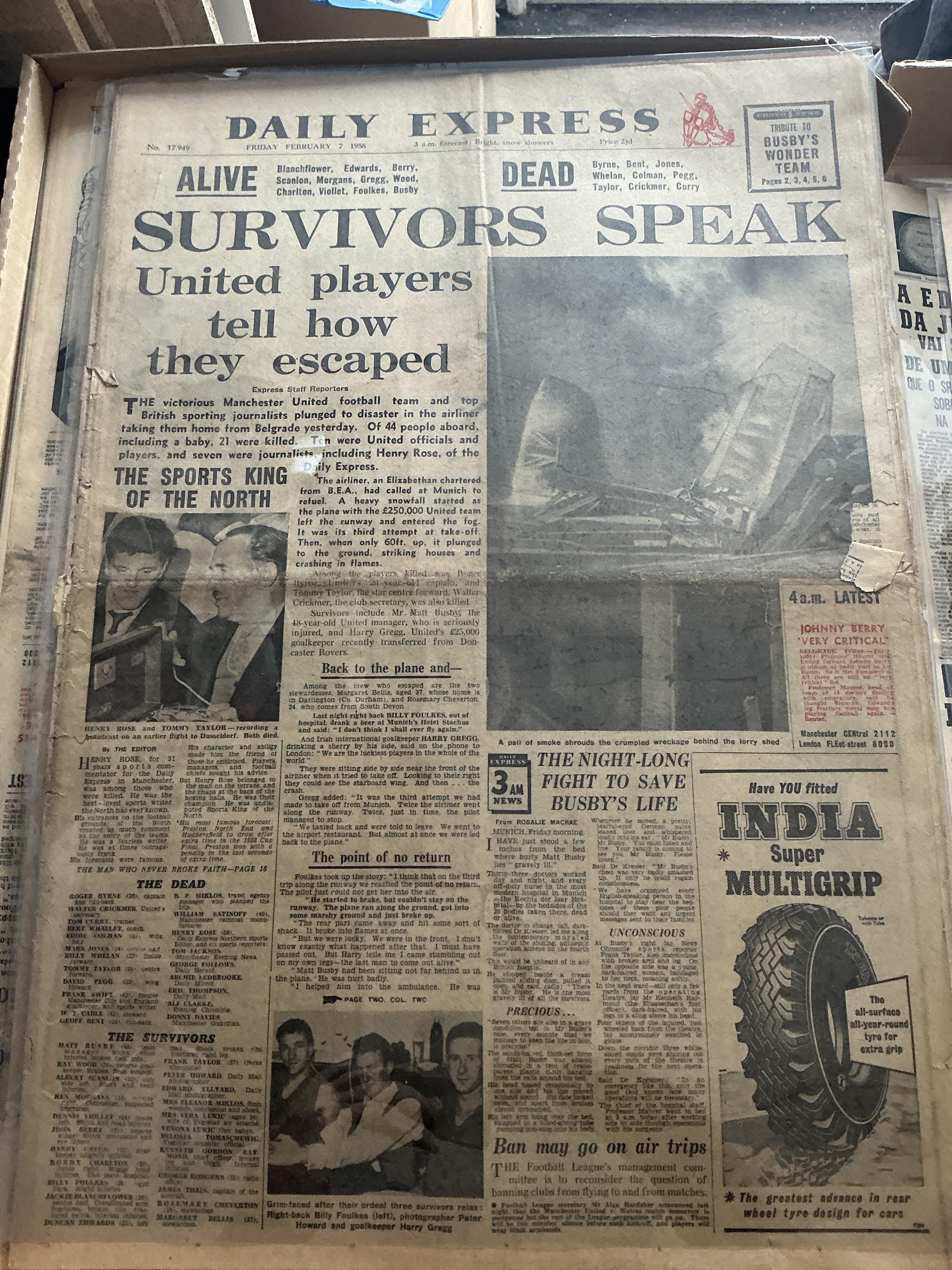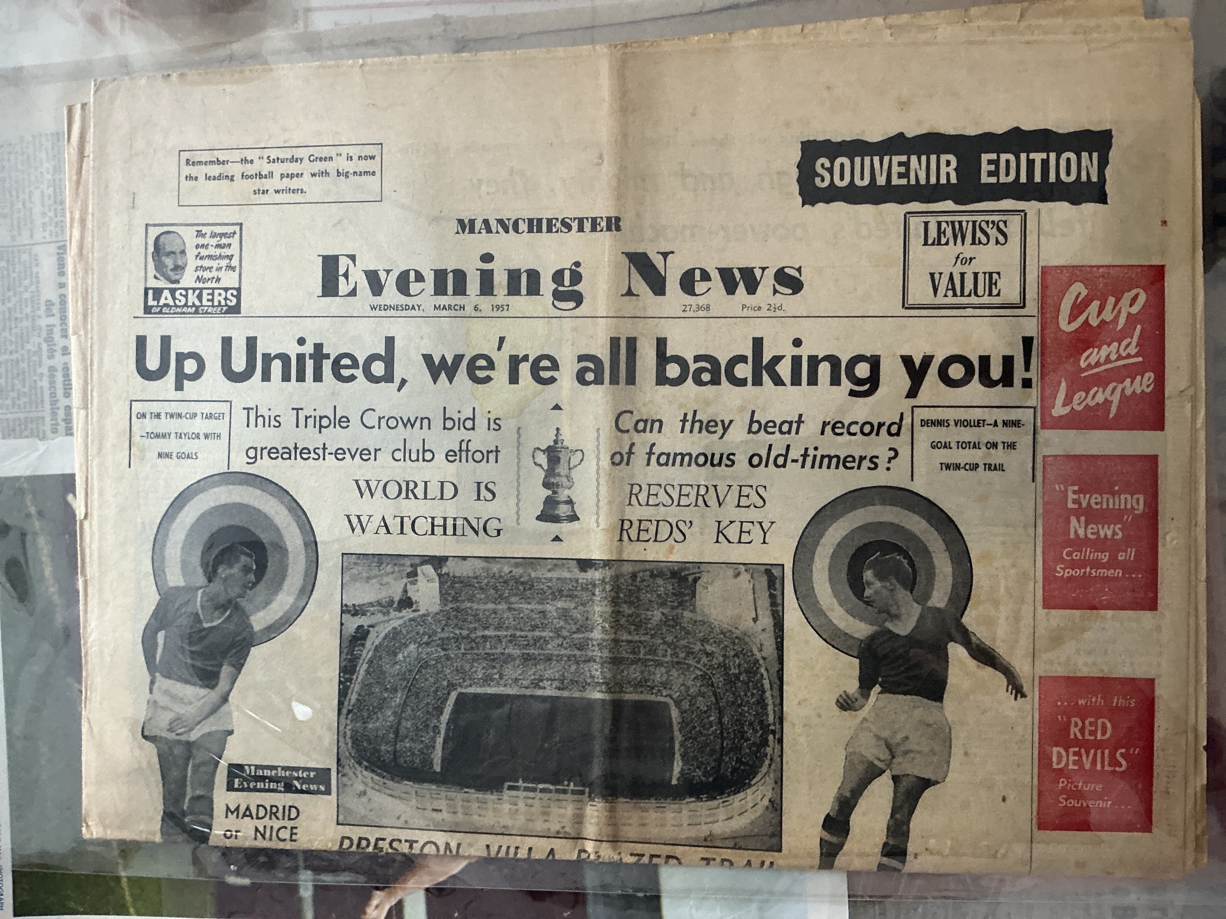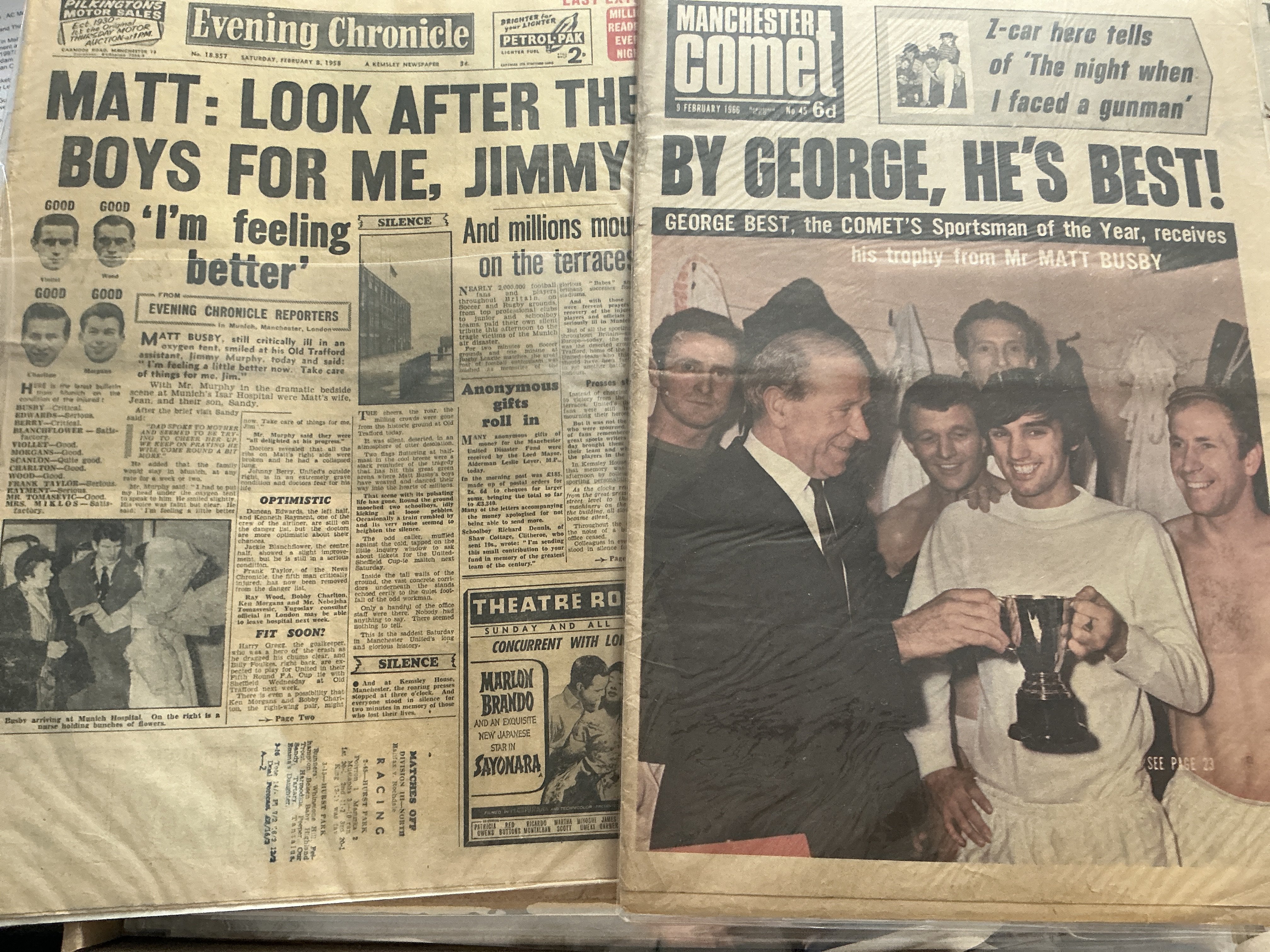 Manchester United 1958 Munich Disaster Football Newspapers: Superb lot of mainly full newspapers to also include 1968 European papers from Portugal and Spain and one 1957 FA Cup Final. (40)