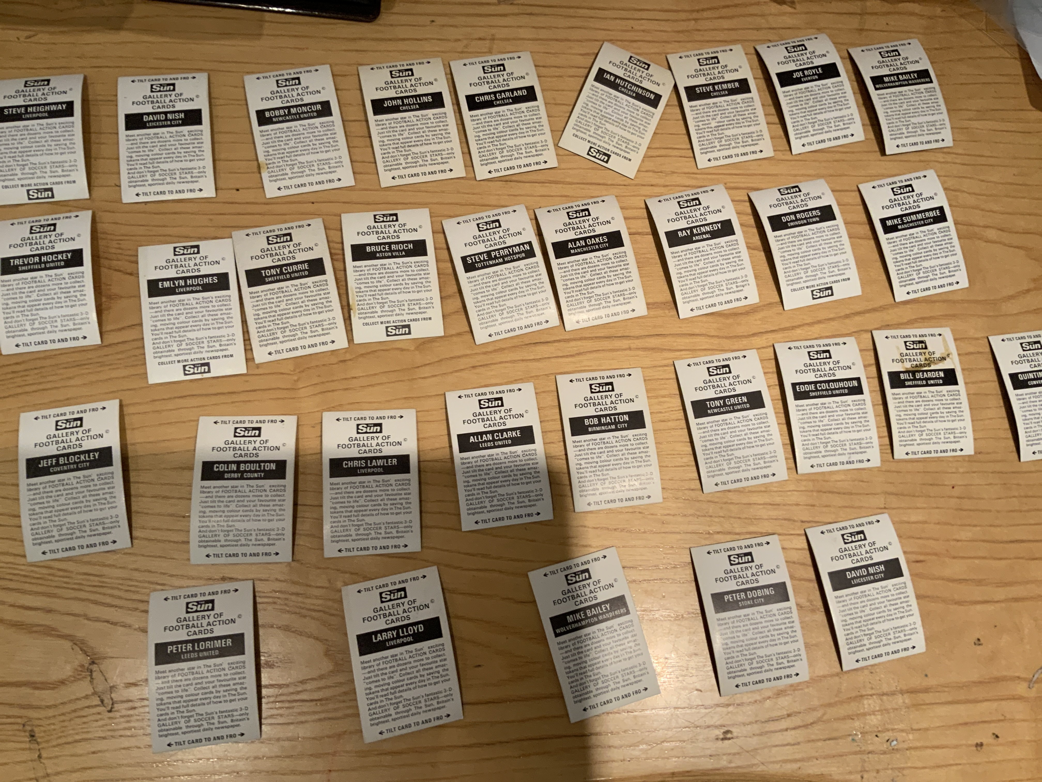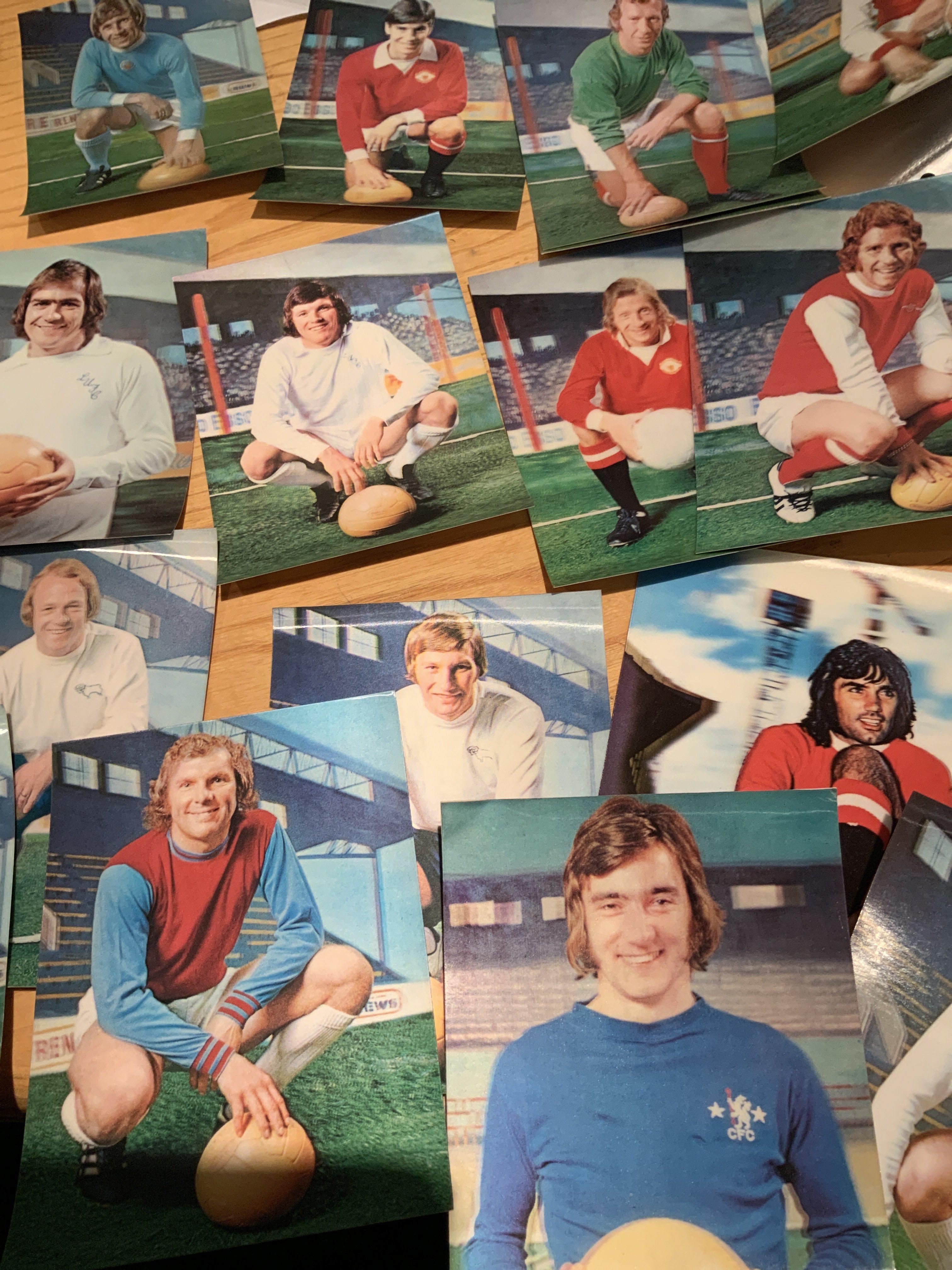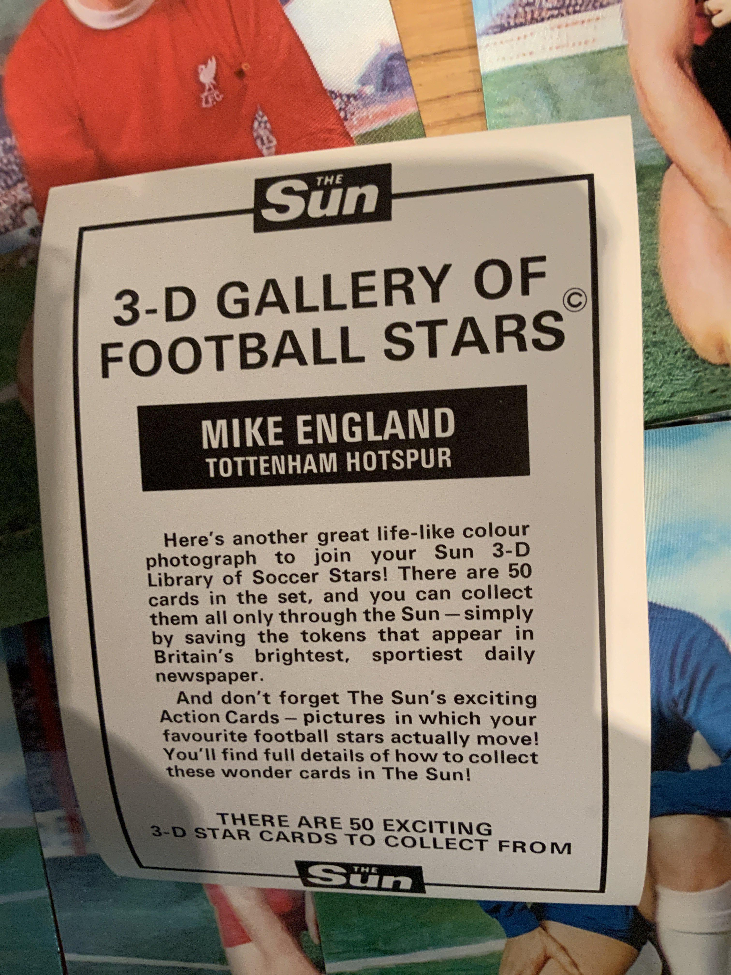 1972 Sun 3D Football Card Set: Complete set of 50 postcard size Gallery Of Football Stars to include Bobby Moore George Best and Bobby Charlton. C/W from the same series 38 spares with no duplication. From the smaller Gallery Of Football Action Cards there are 74 with duplication but not thought to be a complete set. C/W a Wills card album with an incomplete set.