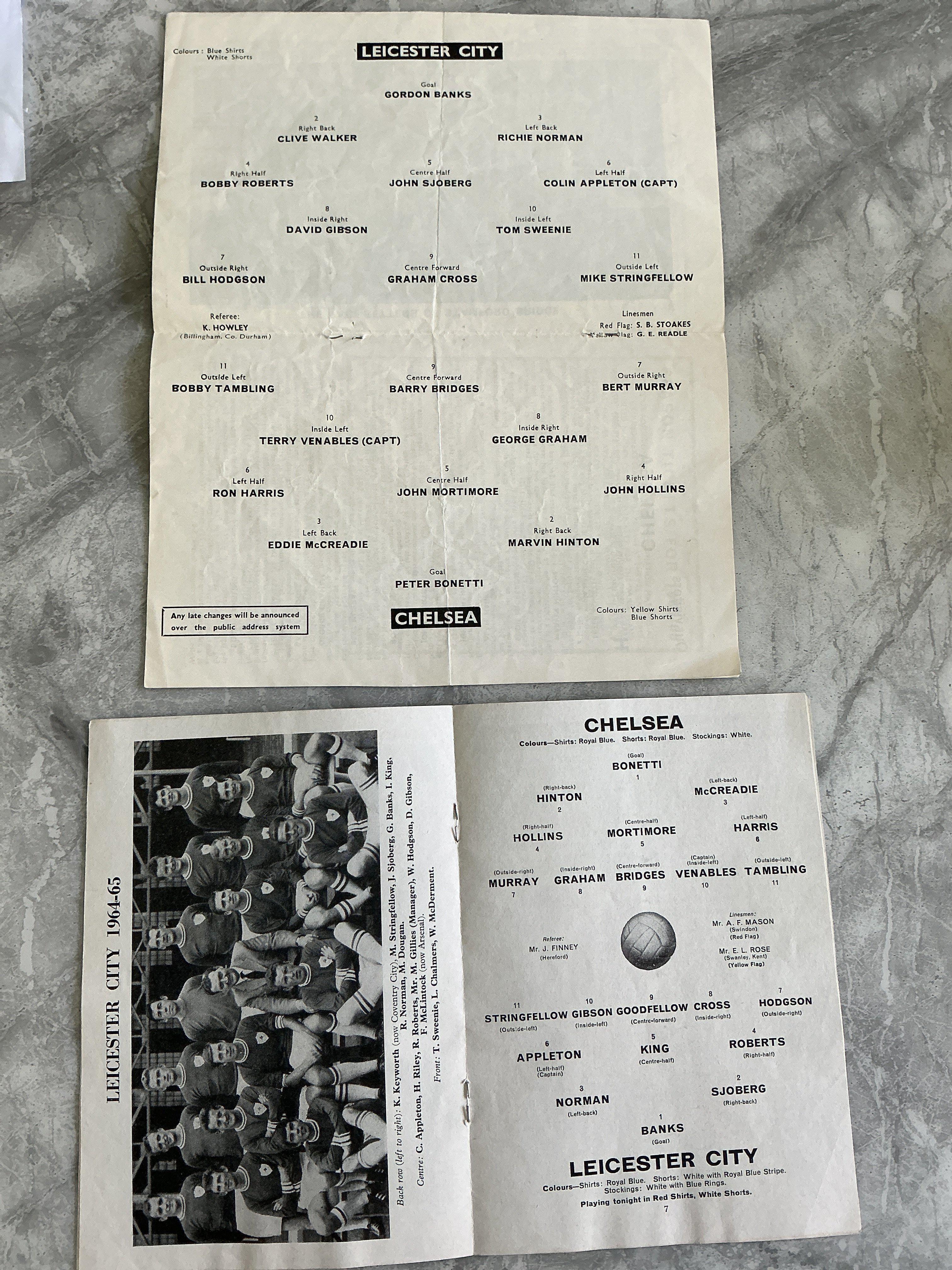 1965 League Cup Final Football Programmes: Both legs of the Chelsea v Leicester City finals. Very good with no writing. Leicester home has slight fold. (2)