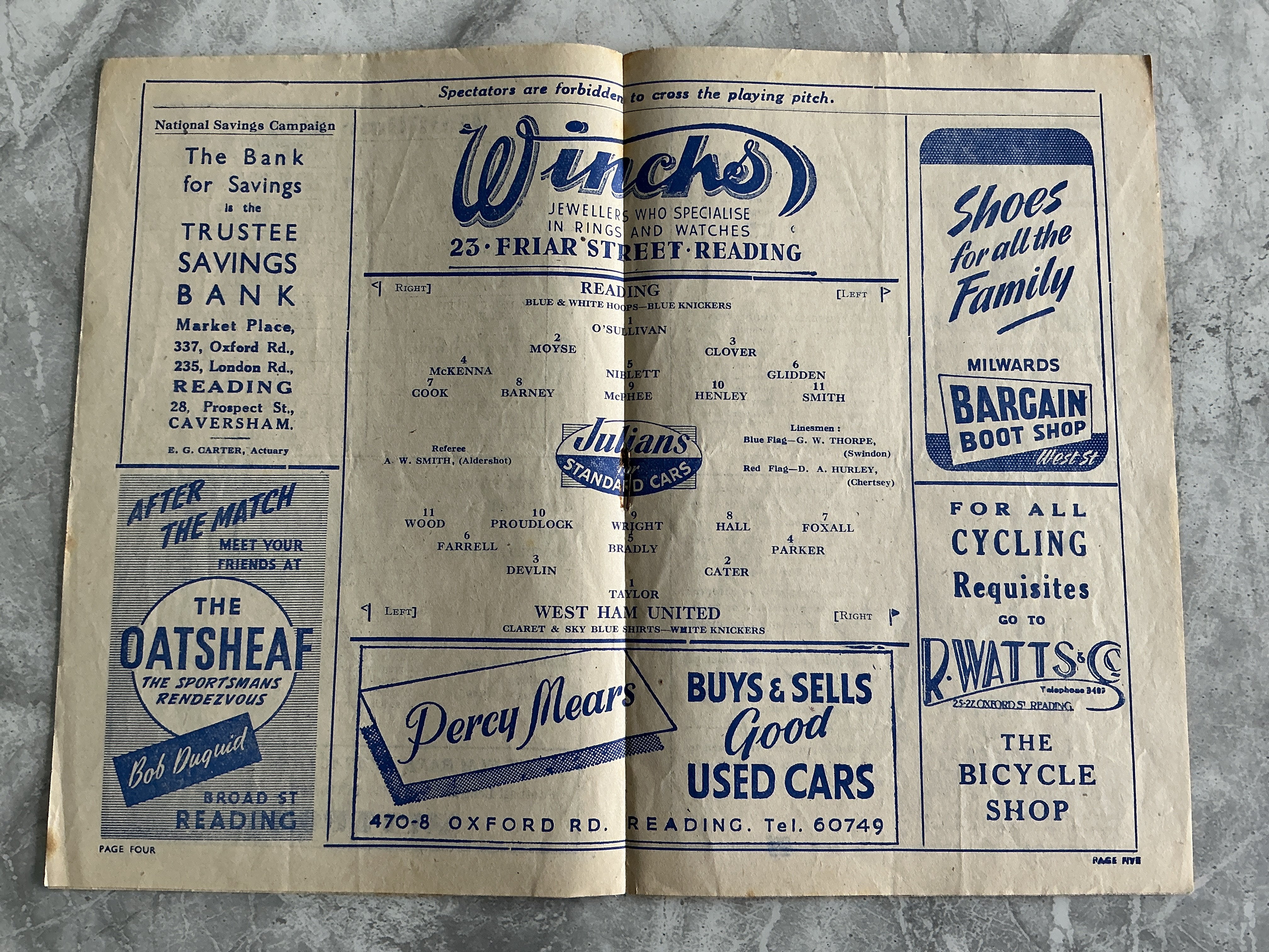 47/48 Reading v West Ham Reserves Football Programme: 8 pager dated 13 3 1948. Good with no team changes.