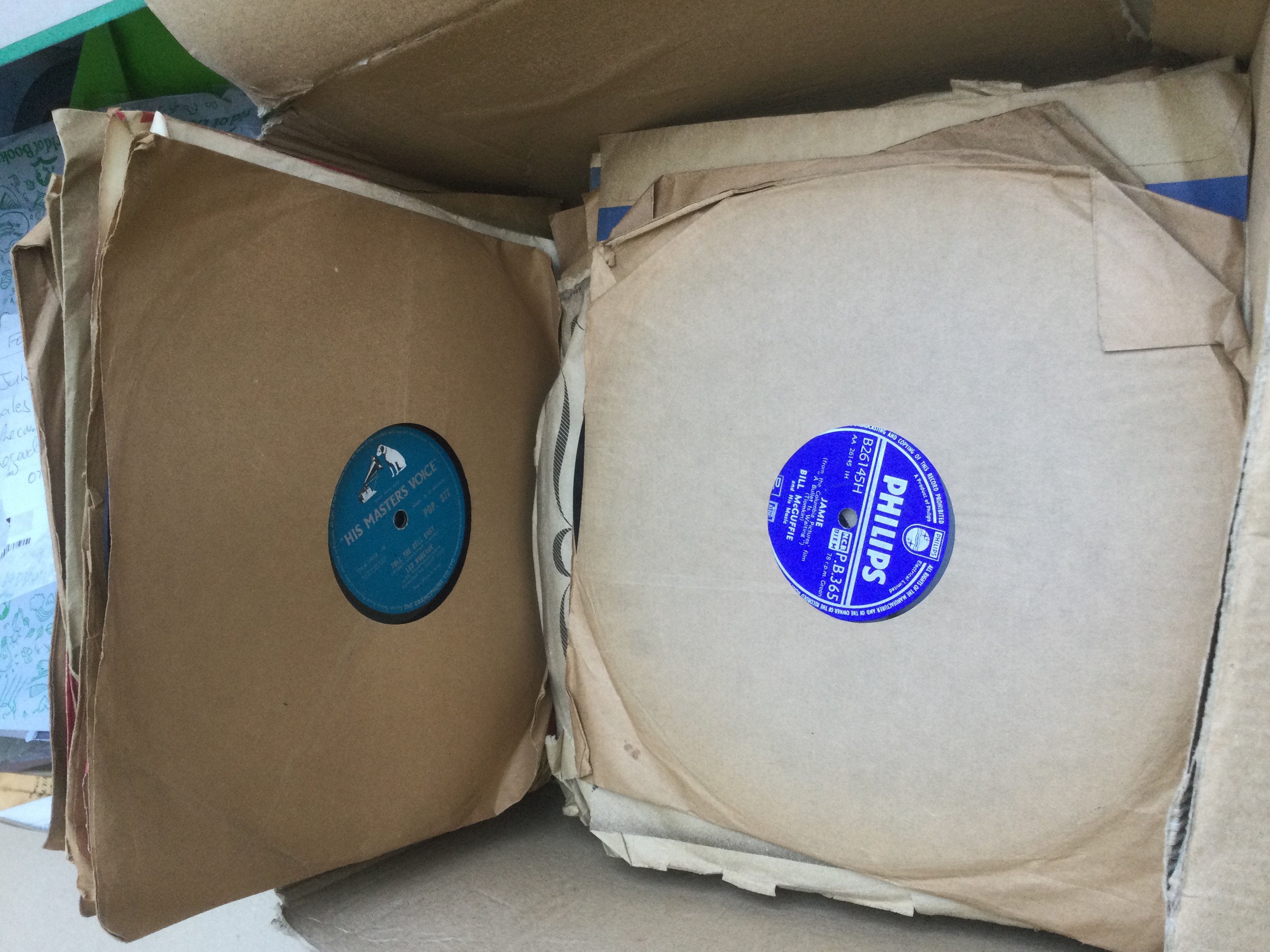 A box of 78s including Elvis Presley, Marty Wilde and others.