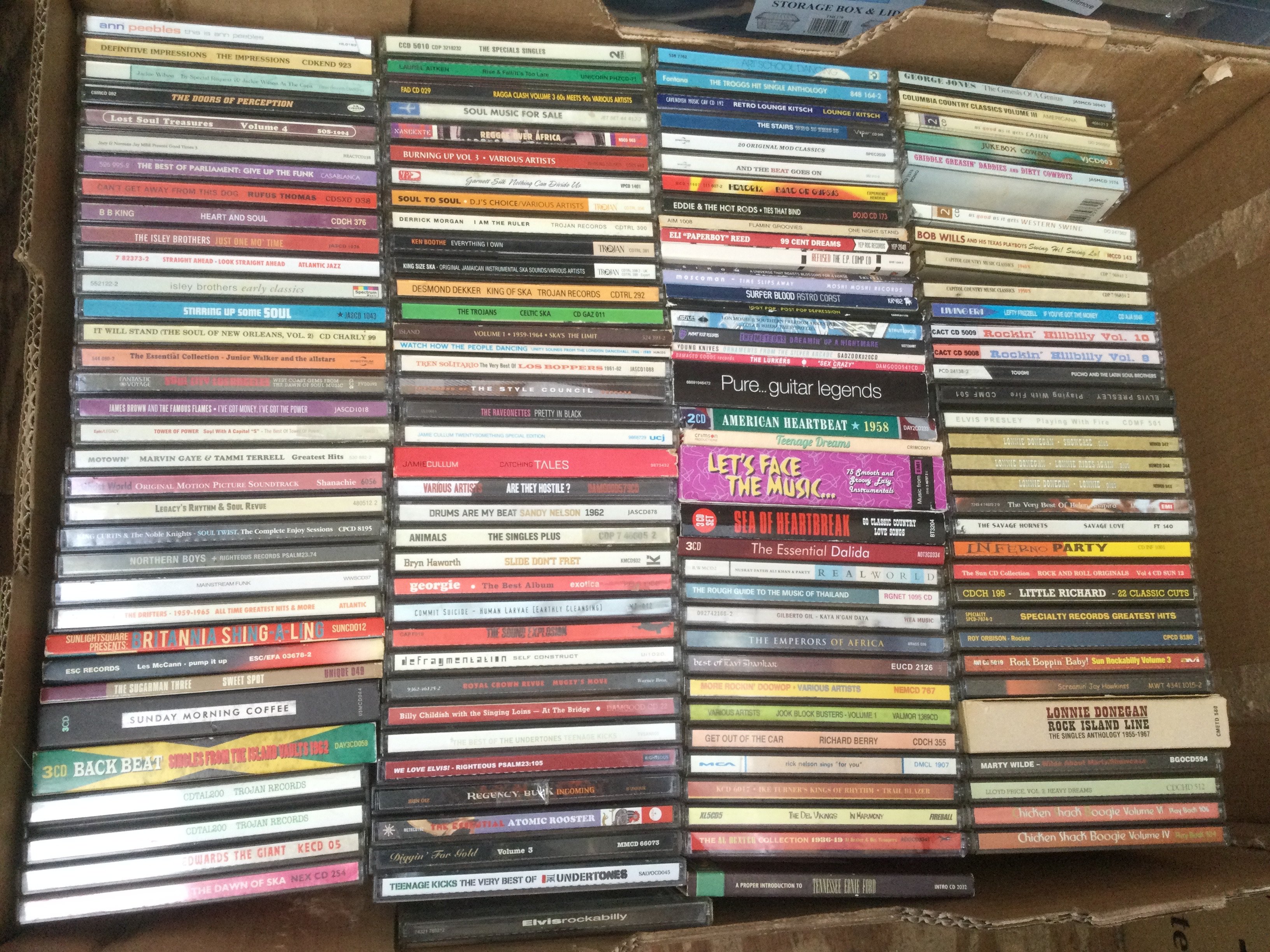 Three boxes of approx 130 plus CDs by various reggae, soul and rock artists.